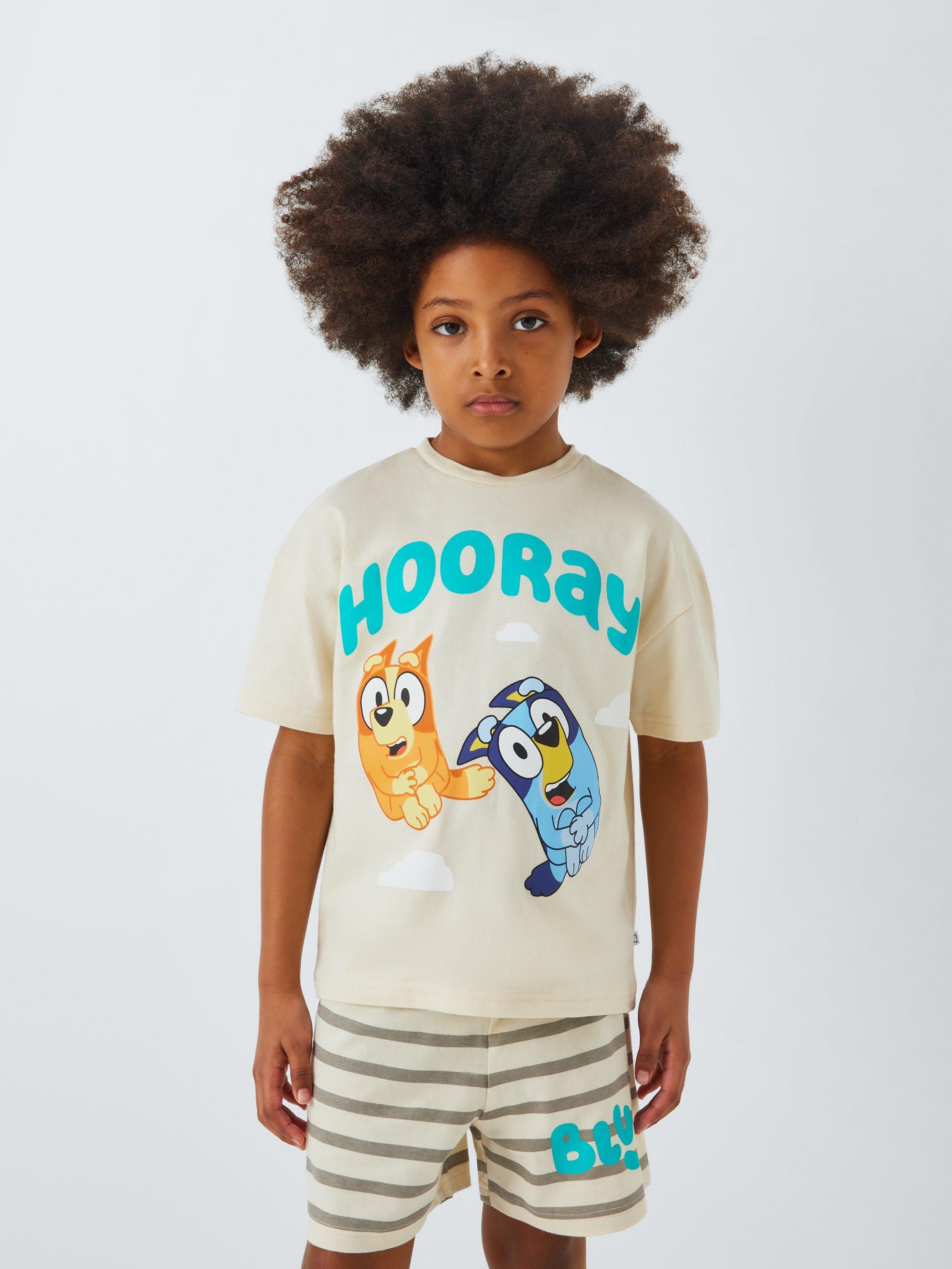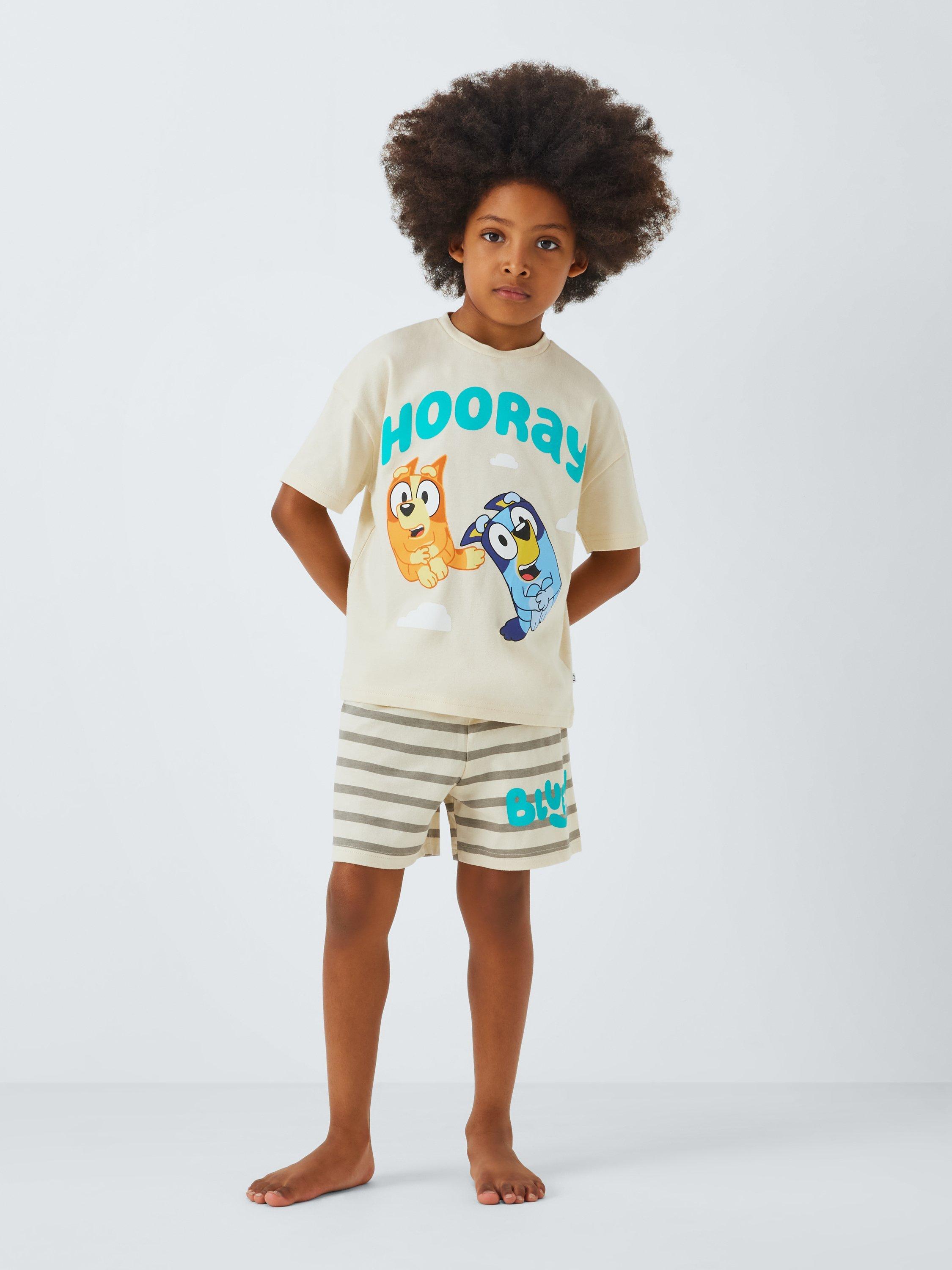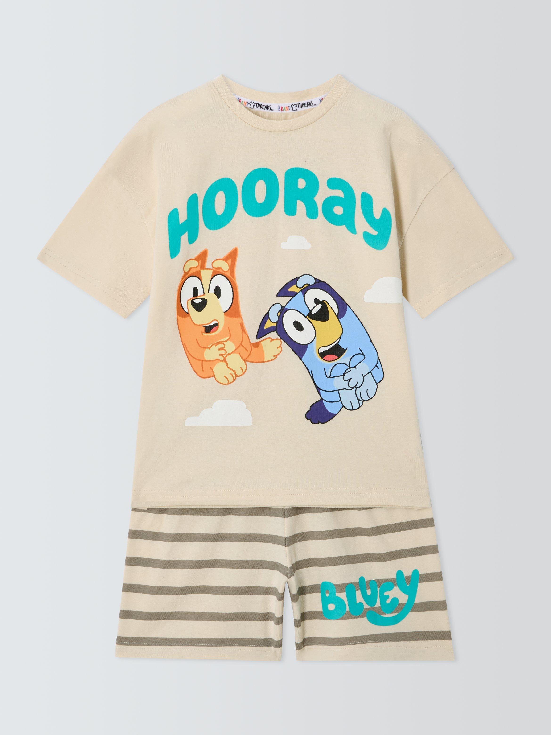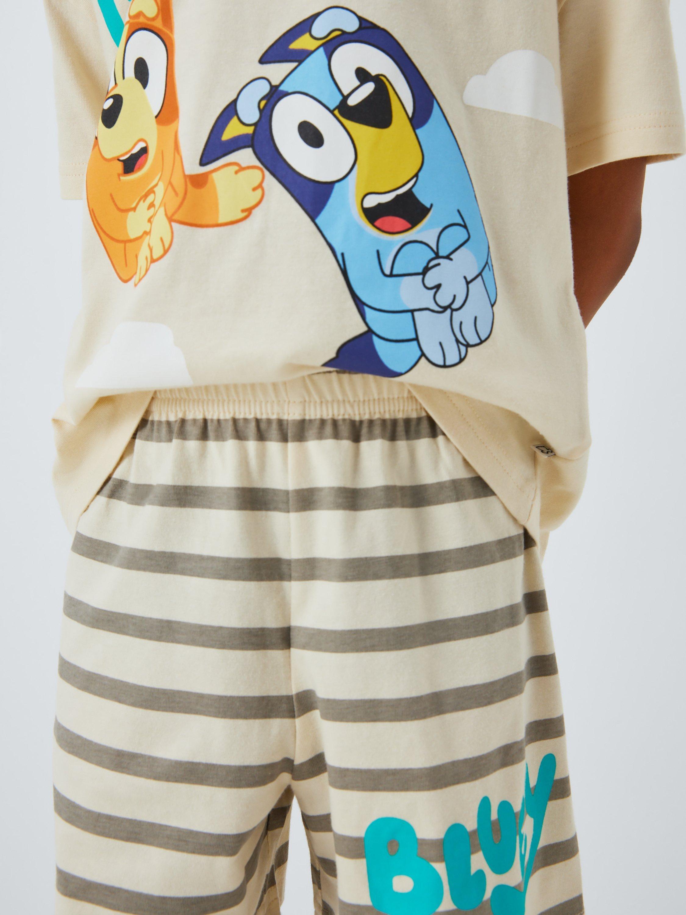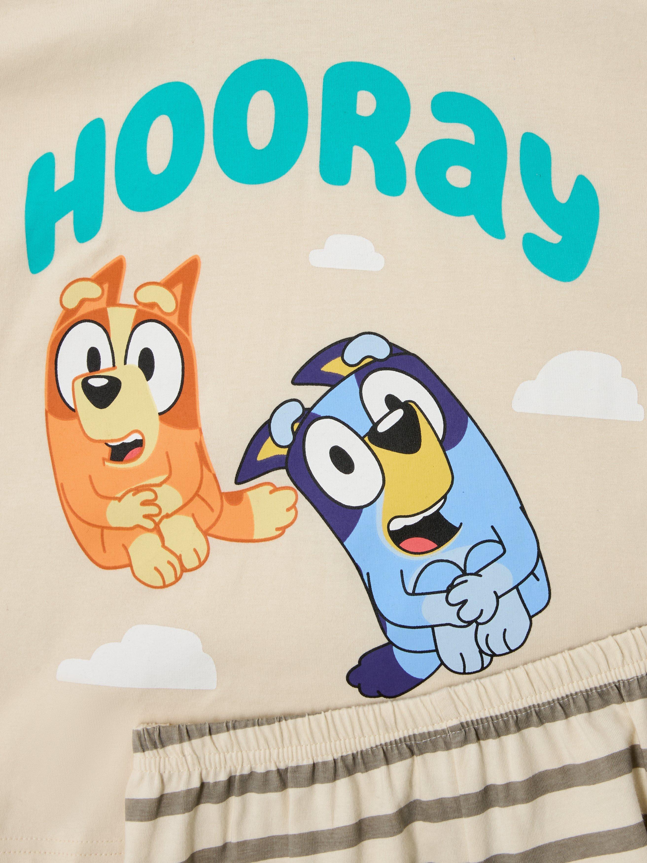 Super cute Bluey shortie pyjamas with printed cotton tee and stripe shorts, stylish and comfy for bedtime.