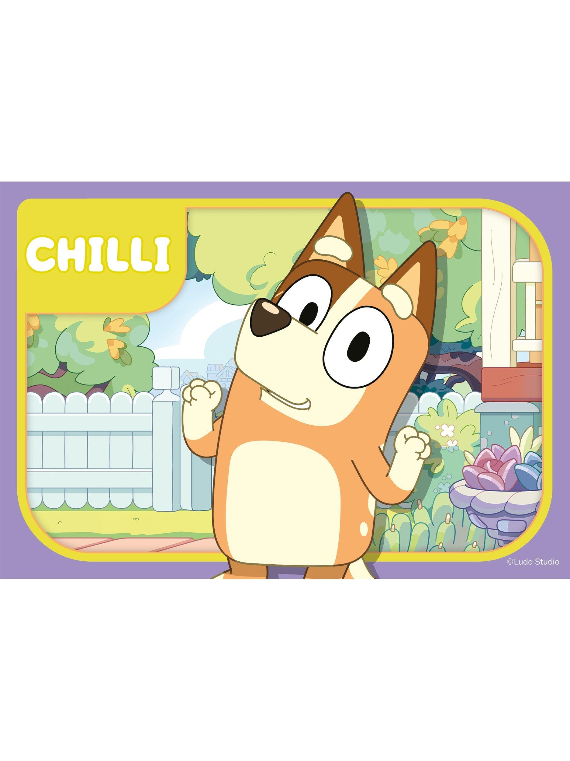 Join Bluey, Bandit, Bingo and Chilli as you piece together these four, bright and colourful jigsaw puzzles.