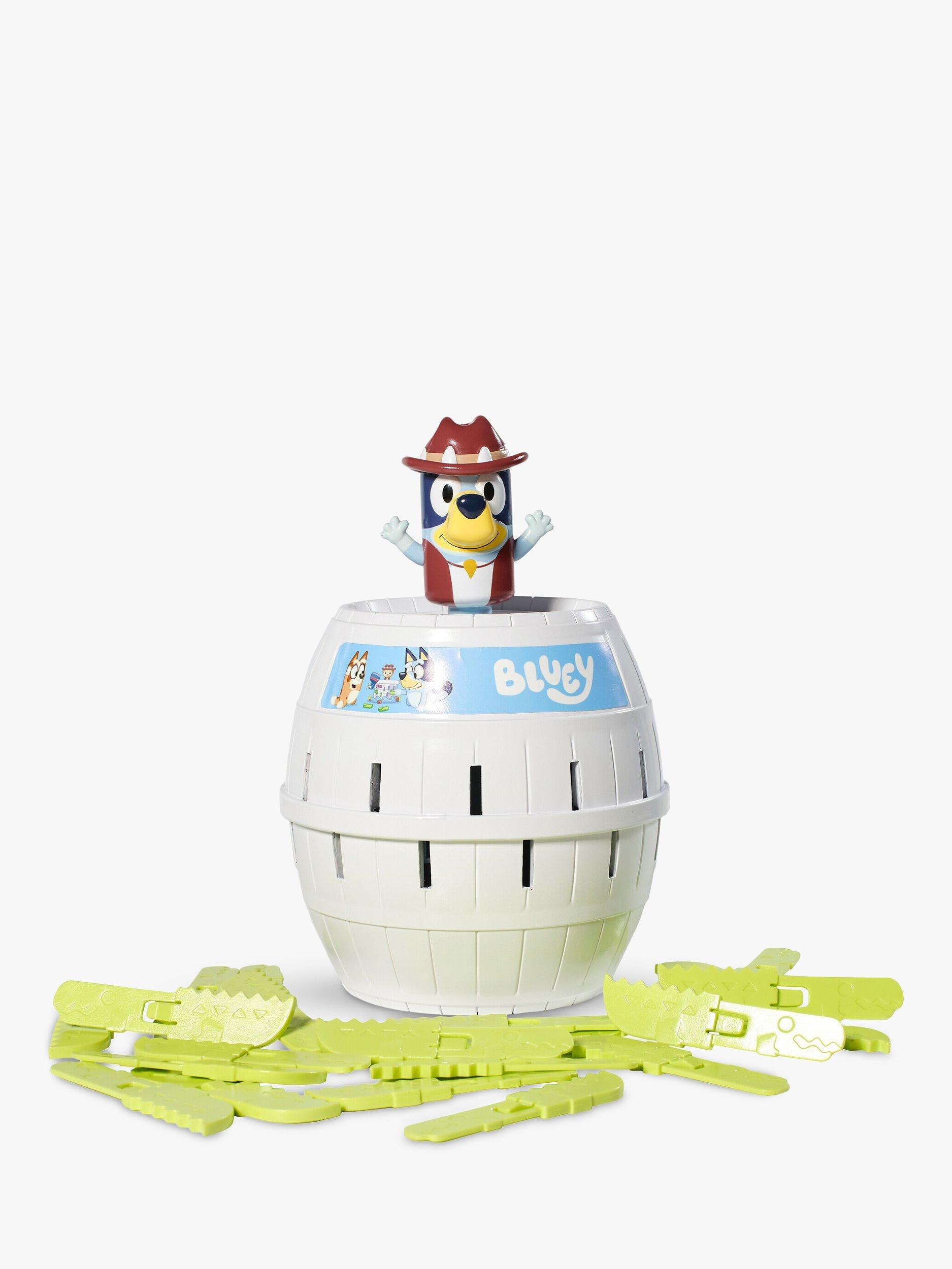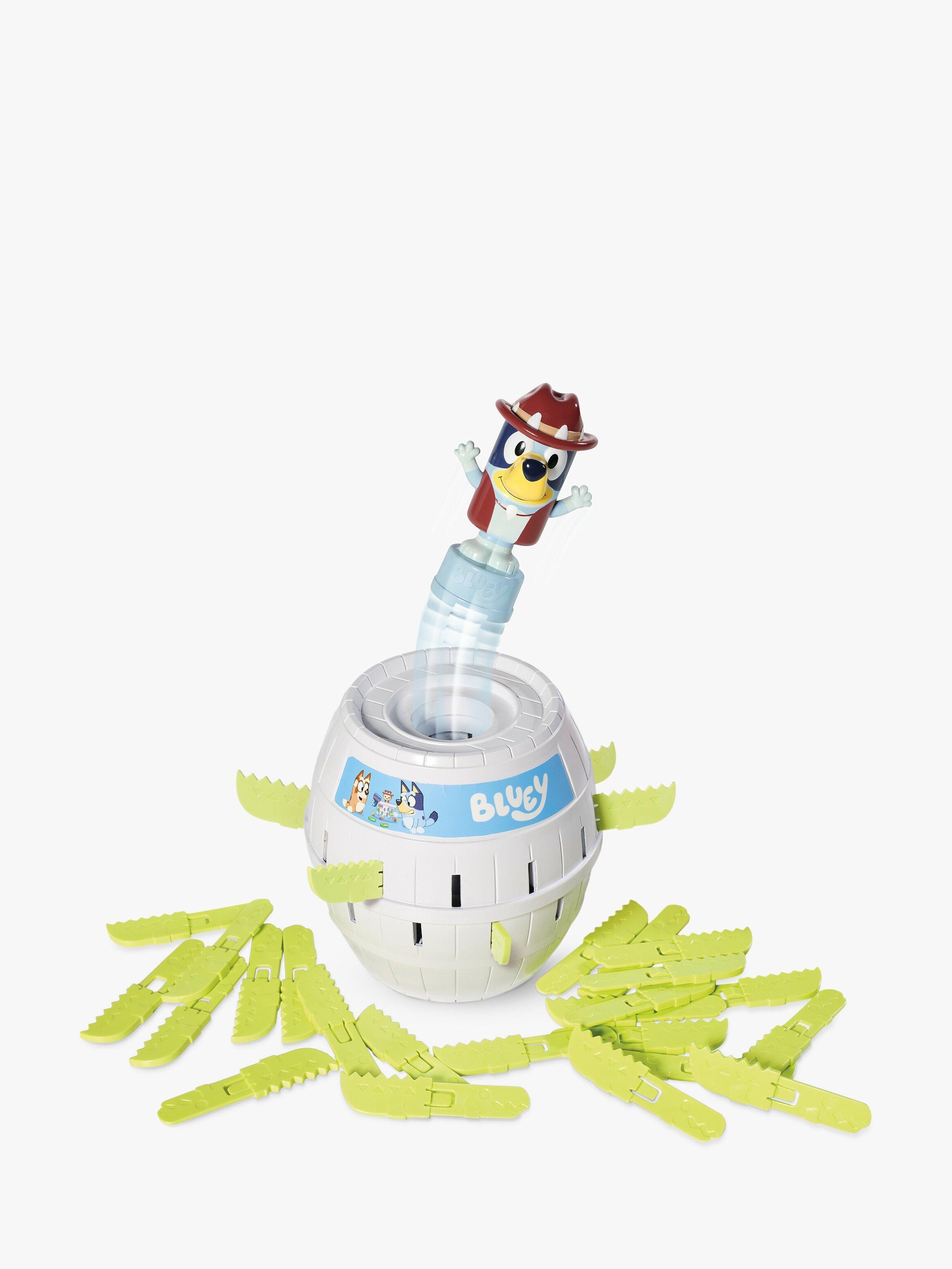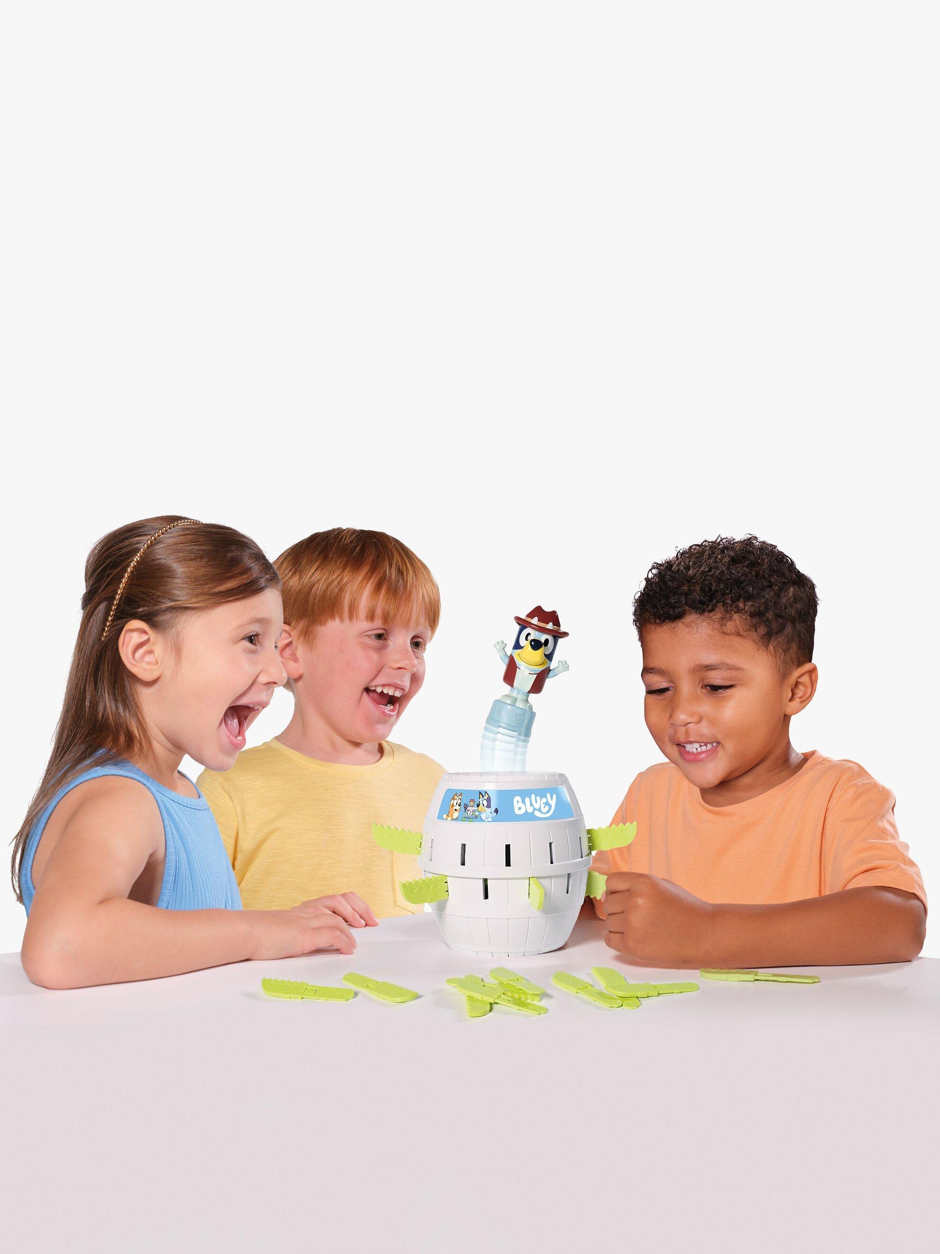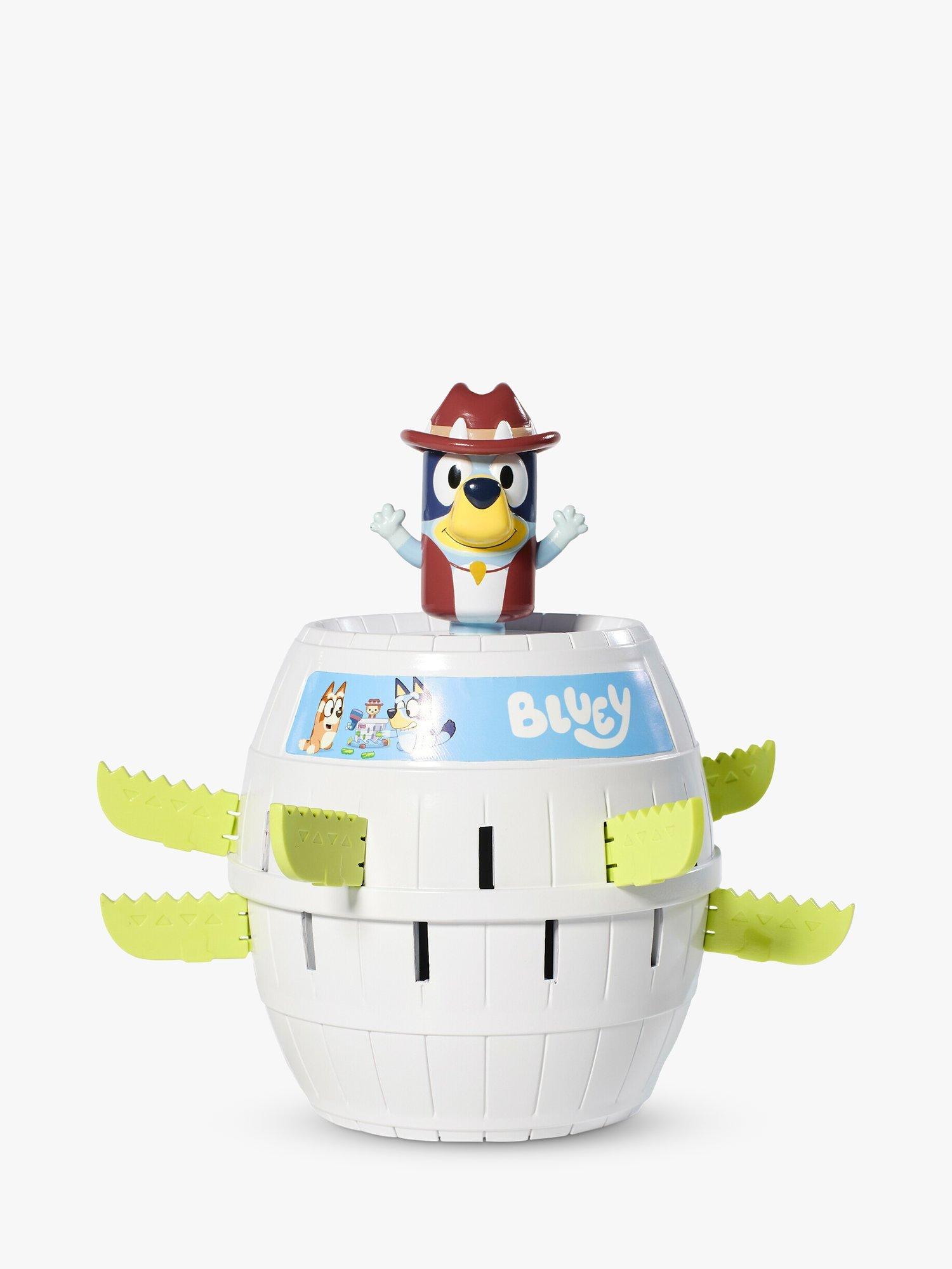 Who'll make Bluey pop from the top of the barrel? In this new version of the classic children's game, you have just one aim - Don't make Bluey jump! Up to six of you slide crocodile swords into the barrel, and Oh, Biscuits! There he goes! There's no stopping Bluey popping up but whoever sends him flying LOSES! Will YOU be first to make him jump?