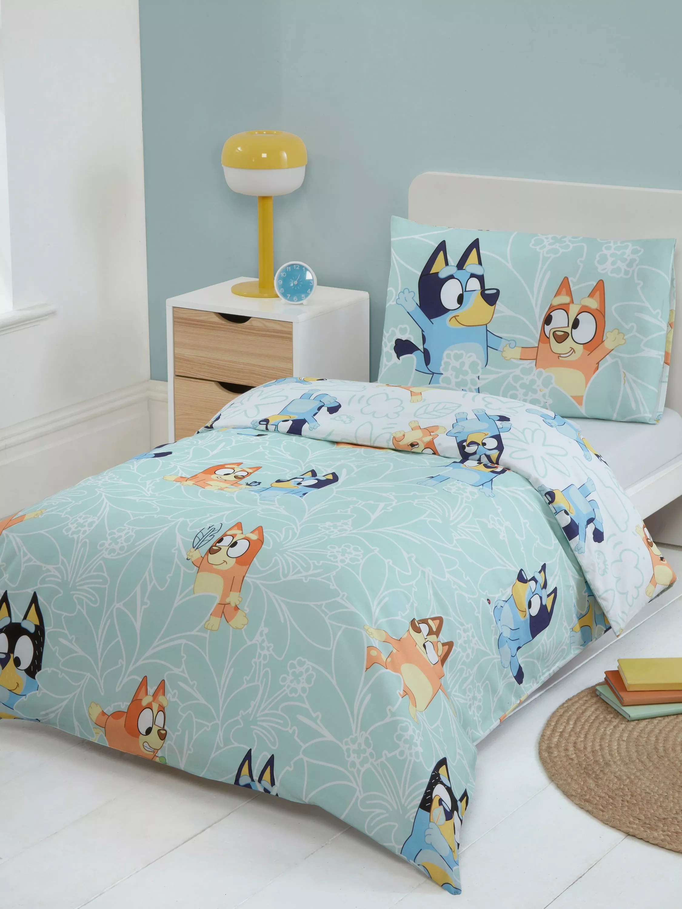 An officially licensed Bluey toddler duvet set. Fully reversible so you can swap the style with each wash, it includes one toddler-size duvet cover and one toddler-size pillowcase to fit toddler, junior and cotbeds.