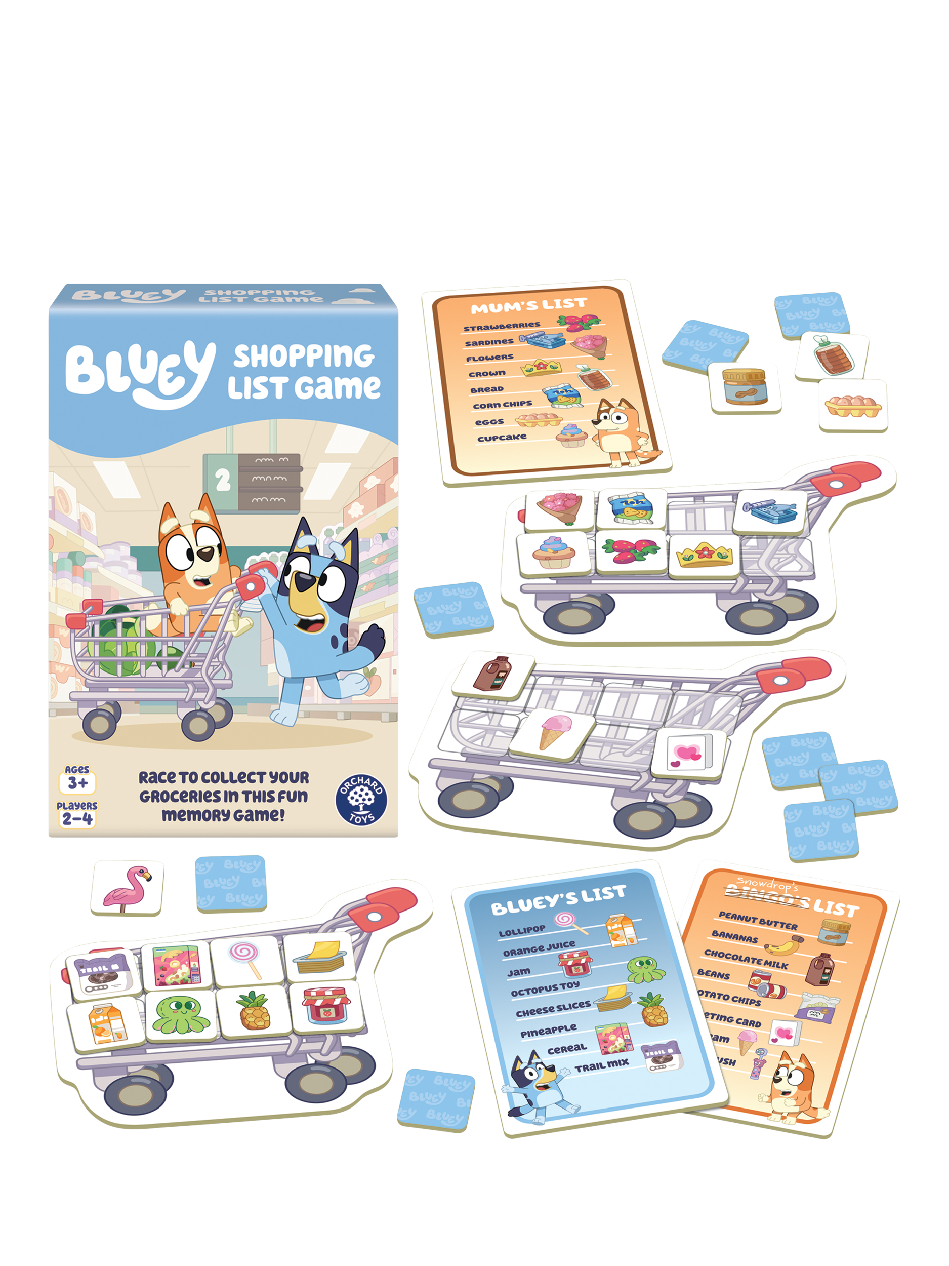 This fast-paced, family-friendly game helps develop matching and memory skills while encouraging turn-taking. With vibrant artwork featuring Bluey characters and sturdy pieces, this game is a must-have and a fantastic gift for fans of the show. Let the race to the checkout begin!
