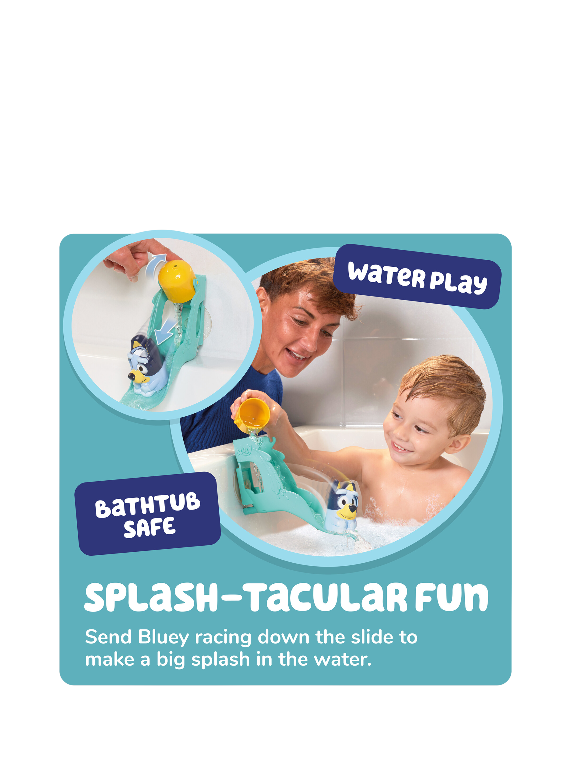 Take bathtime fun to the next level with Bluey's Waterslide! Toddlers will love watching Bluey race down the slide and make a big splash into the bath. Simply detach the yellow bucket, fill it up, reattach it, and she's ready for her next thrilling ride.
