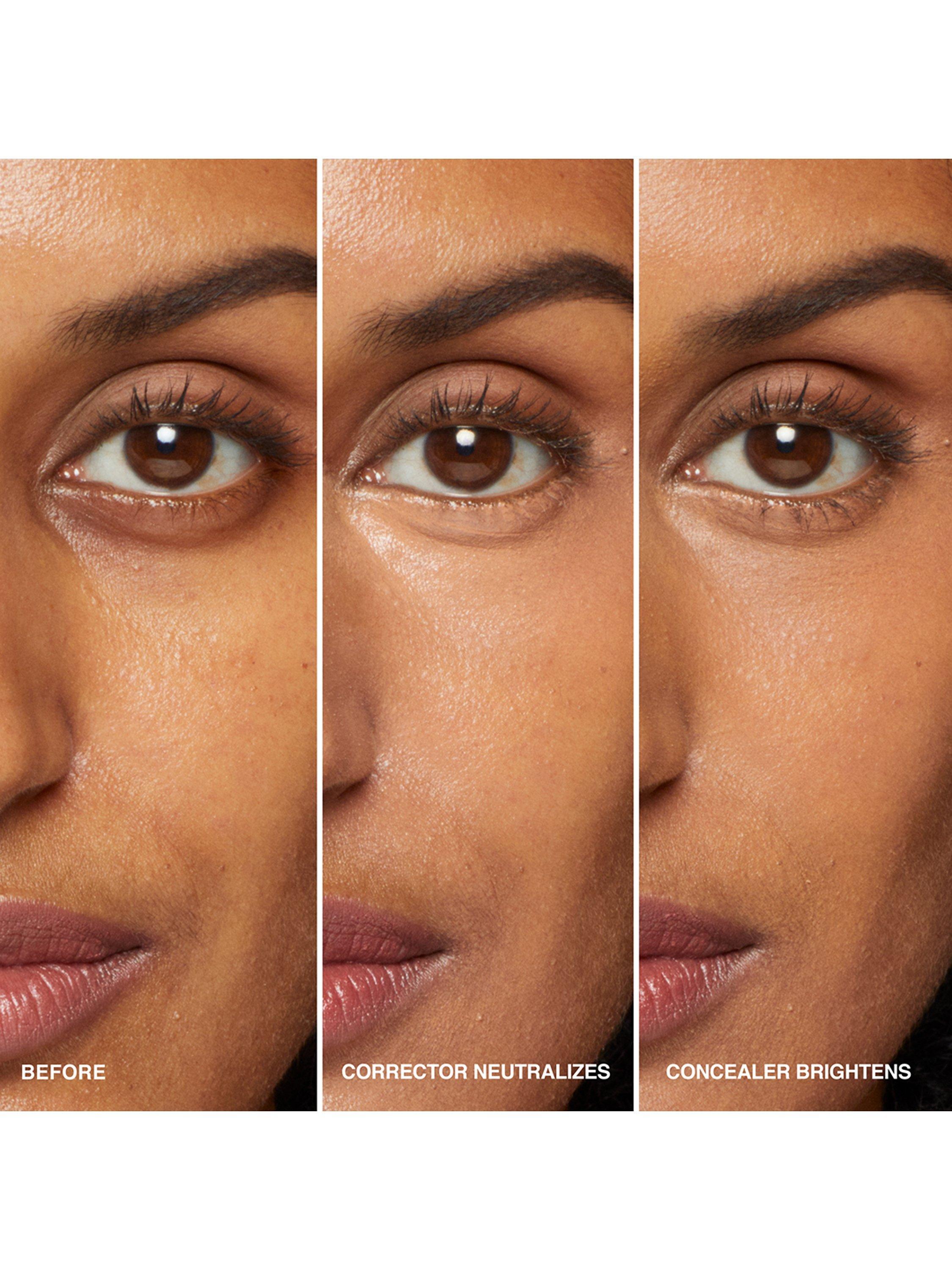 A wakeup call for tired eyes. Corrector is pink- or peach-based to neutralise under-eye darkness and is designed to be used before Creamy Concealer. New and improved formula is long-wearing and brightens dark circles with quick, just-right coverage that’s easy to blend and won’t crease. And since great makeup starts with healthy skin, Corrector is infused with skin conditioners to protect the delicate under-eye area.