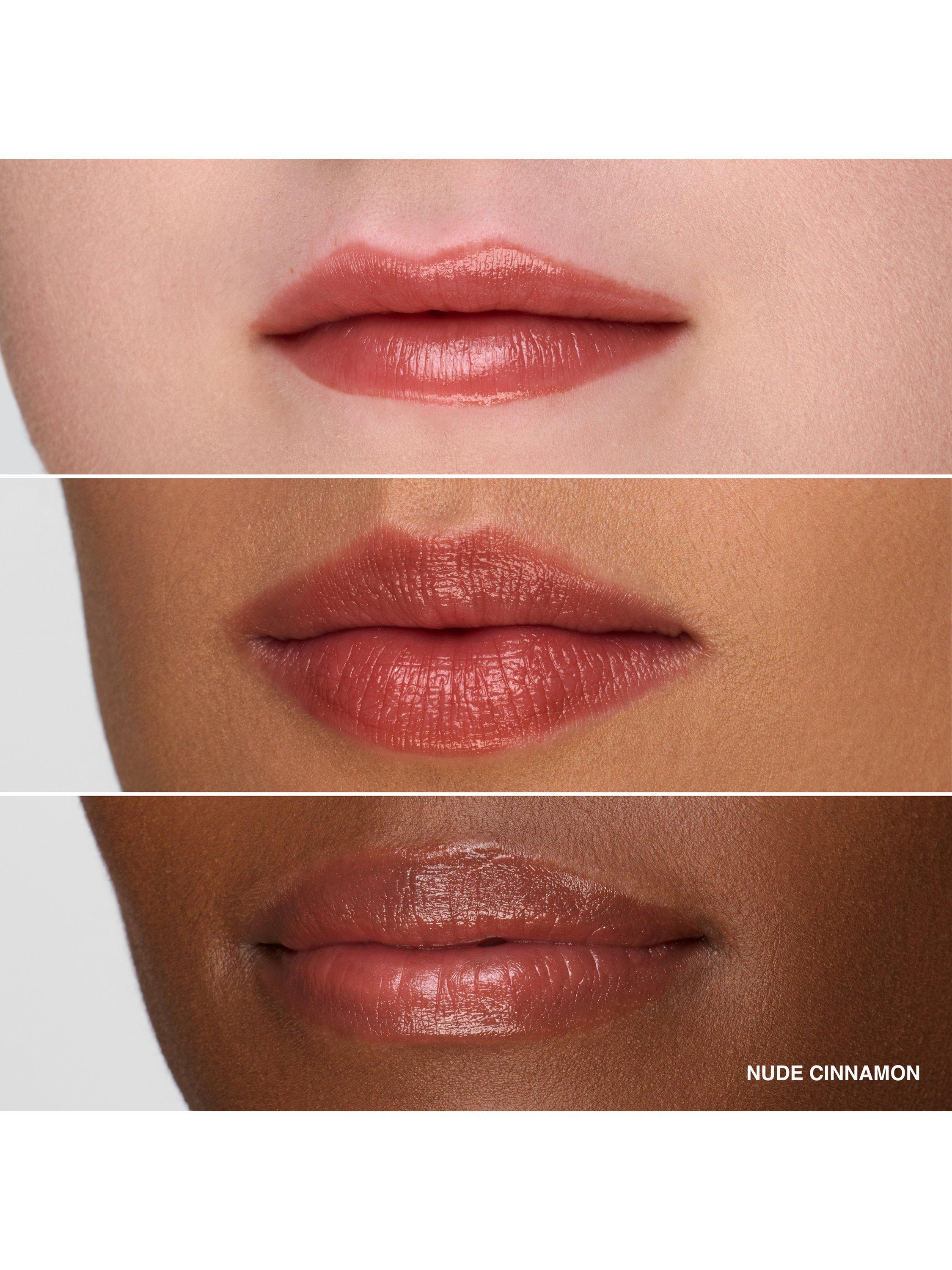 - Balmy texture melts into lips for an instant dewy, water-like finish