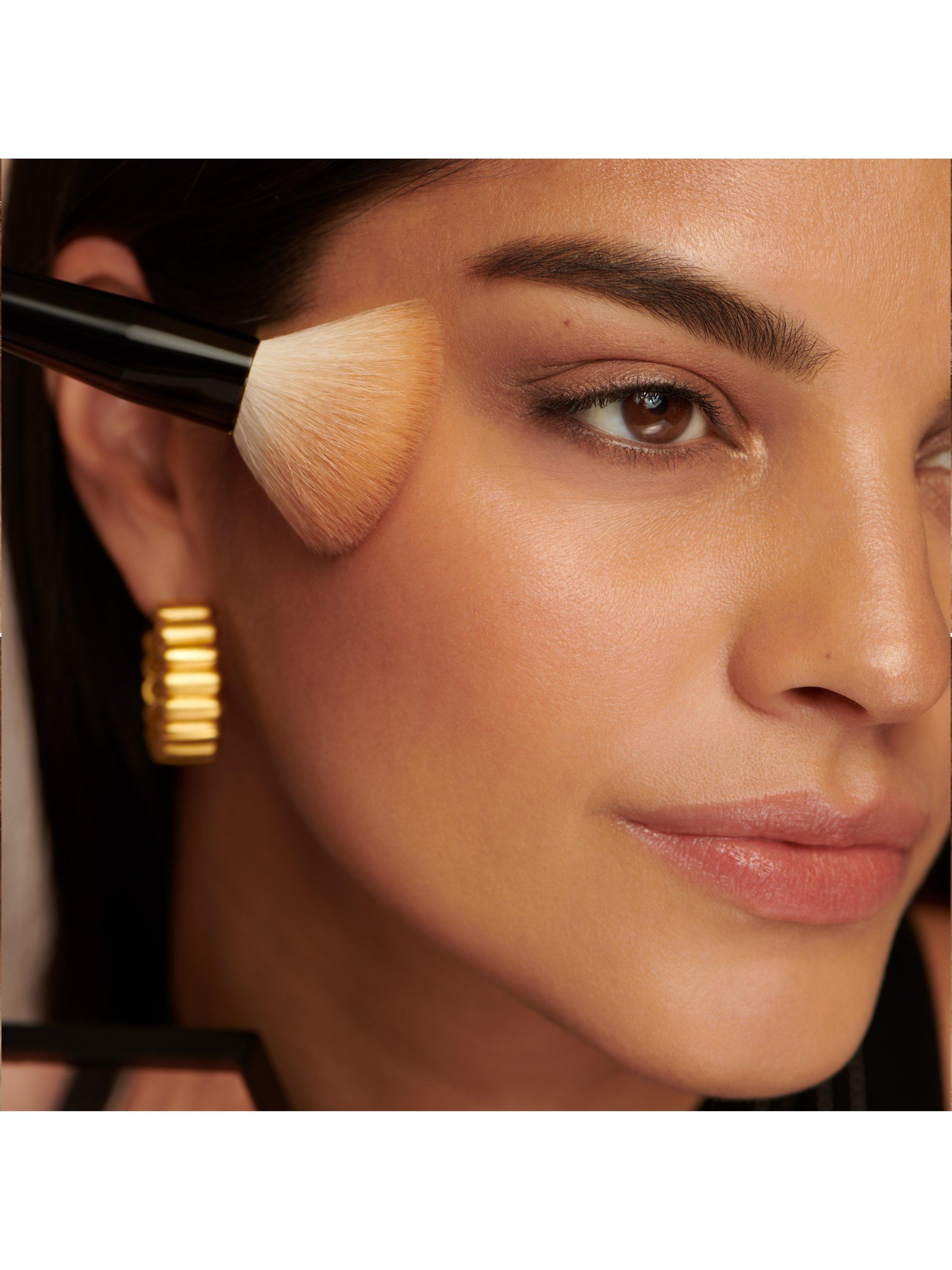 This multipurpose brush gives face and cheek powders a soft, airbrushed look. It blends face powders, bronzers, and blushes seamlessly onto skin for a natural-looking finish.