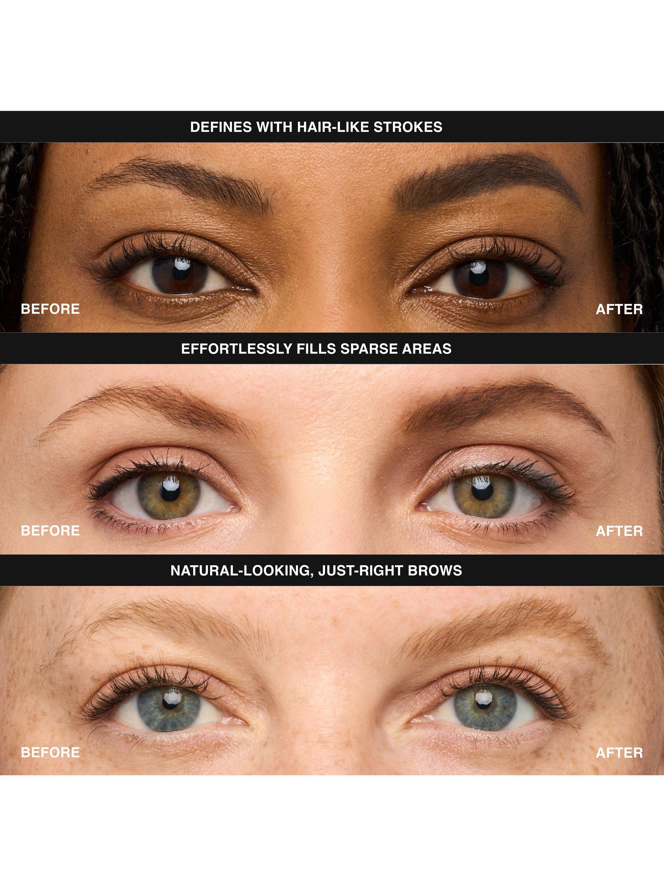 - Angled, super-fine, can’t-go-wrong tip fills in your natural brow with hair-mimicking strokes