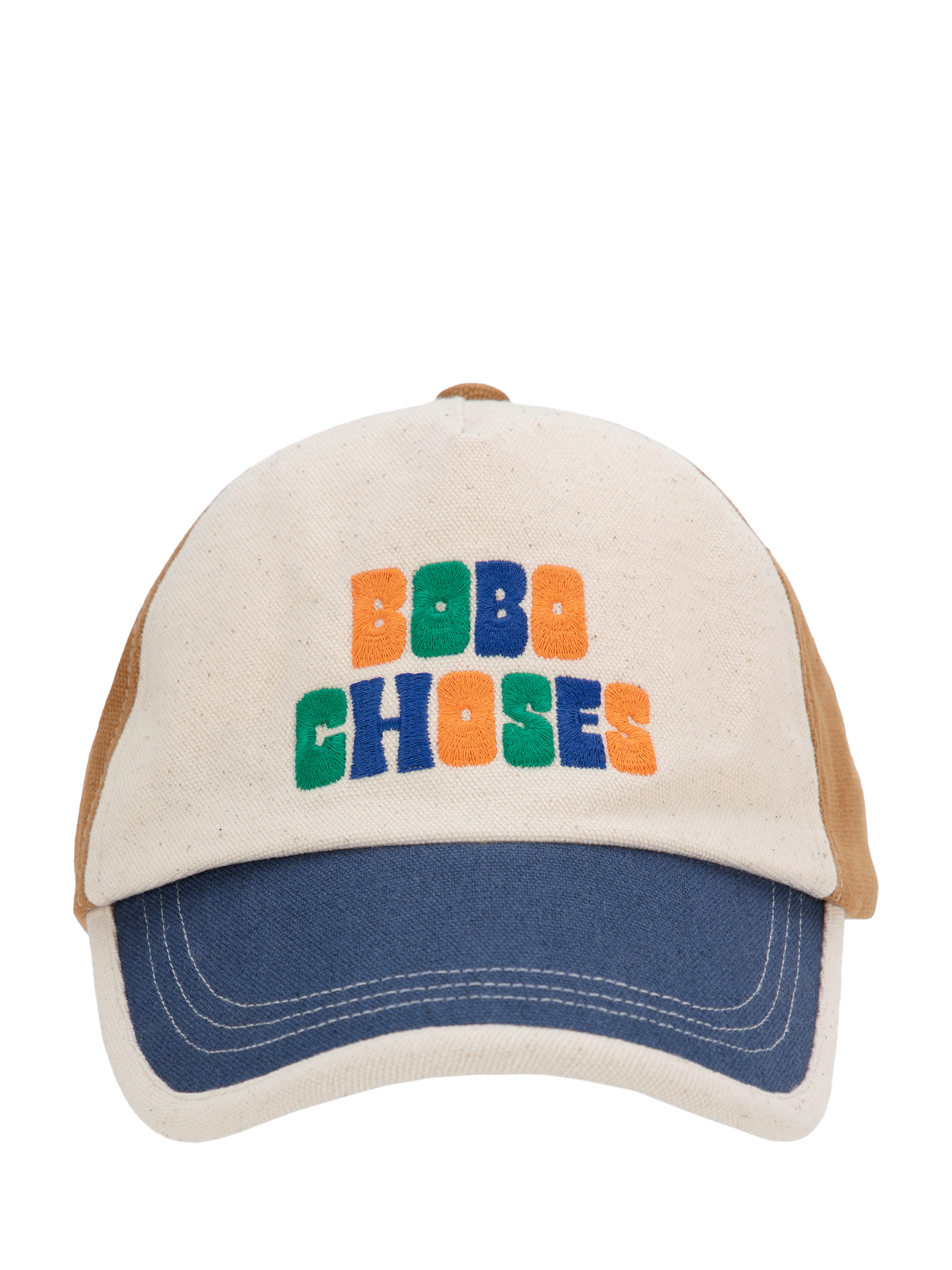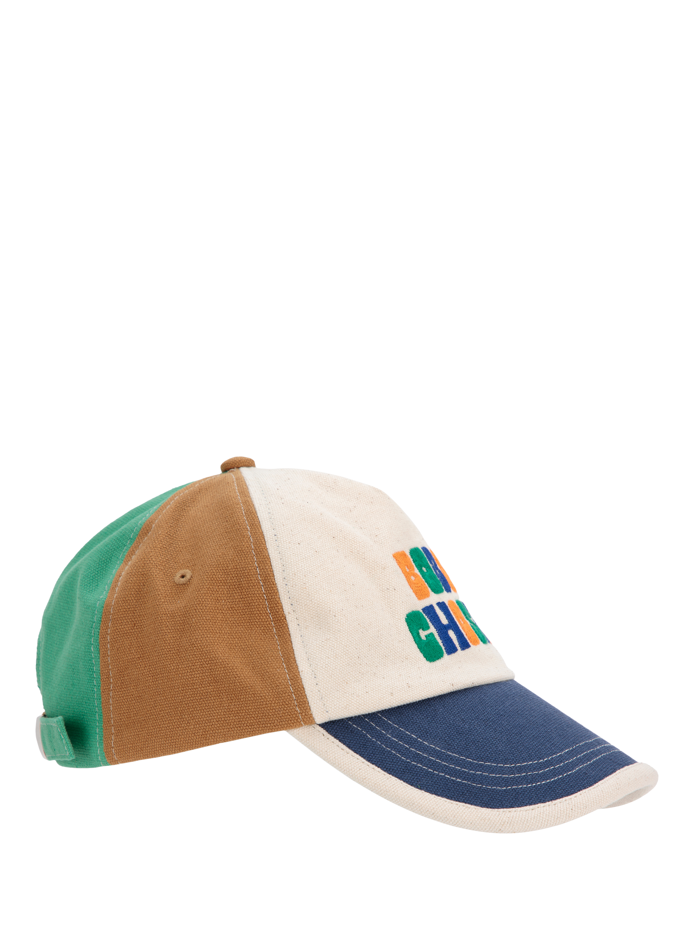 A fun and stylish cap From Bobo Choses with colour blocks, offering a playful touch to their look while keeping them cool and comfortable.