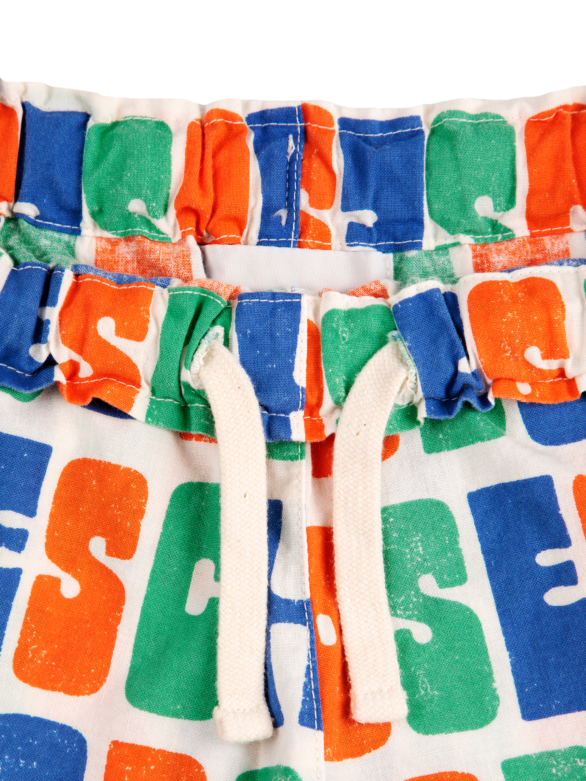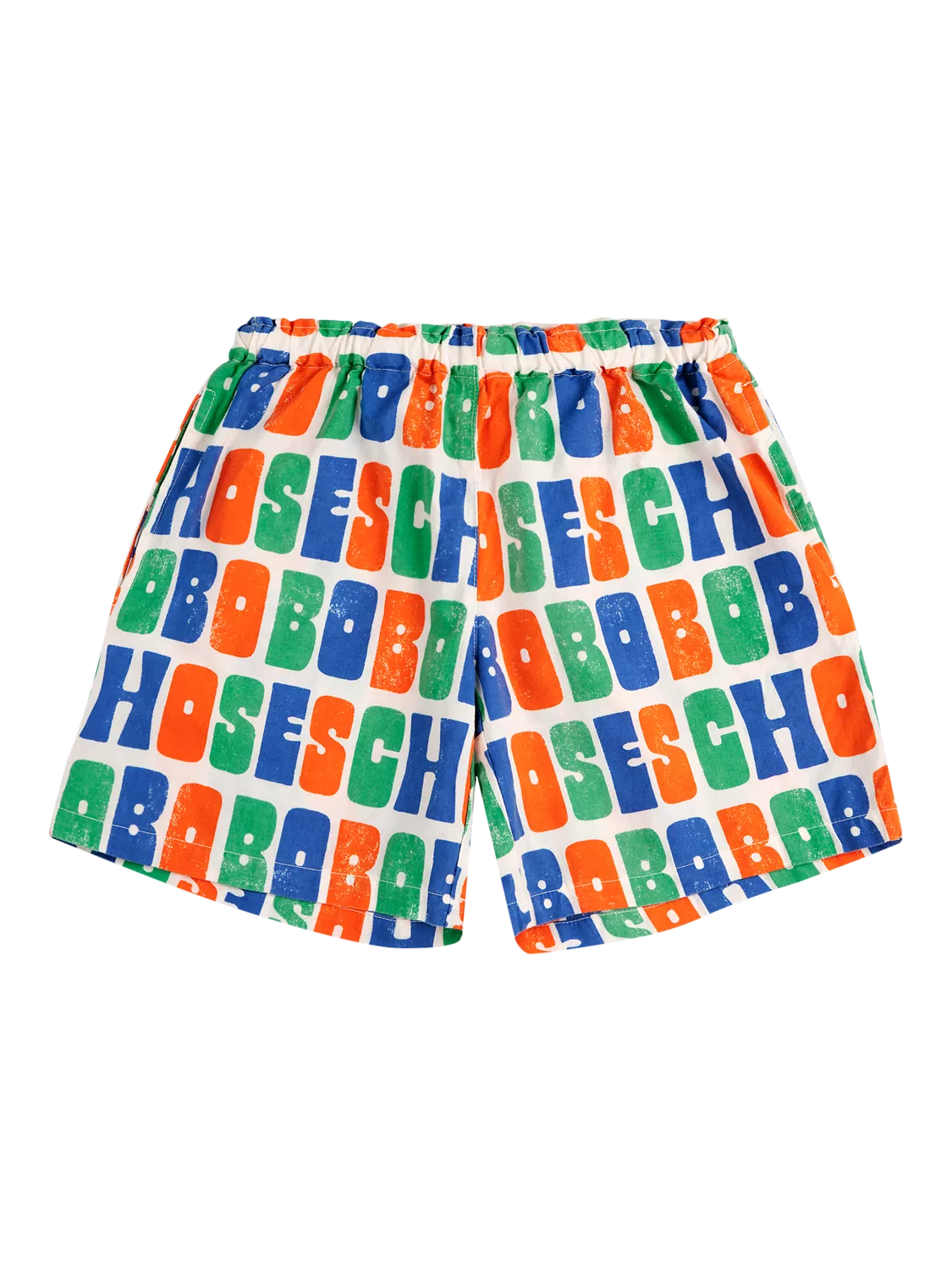 A pair of breathable shorts made of organic cotton with an all-over design of the Bobo Choses name in a playful tri-colour pattern. A great choice for balmy summer days.