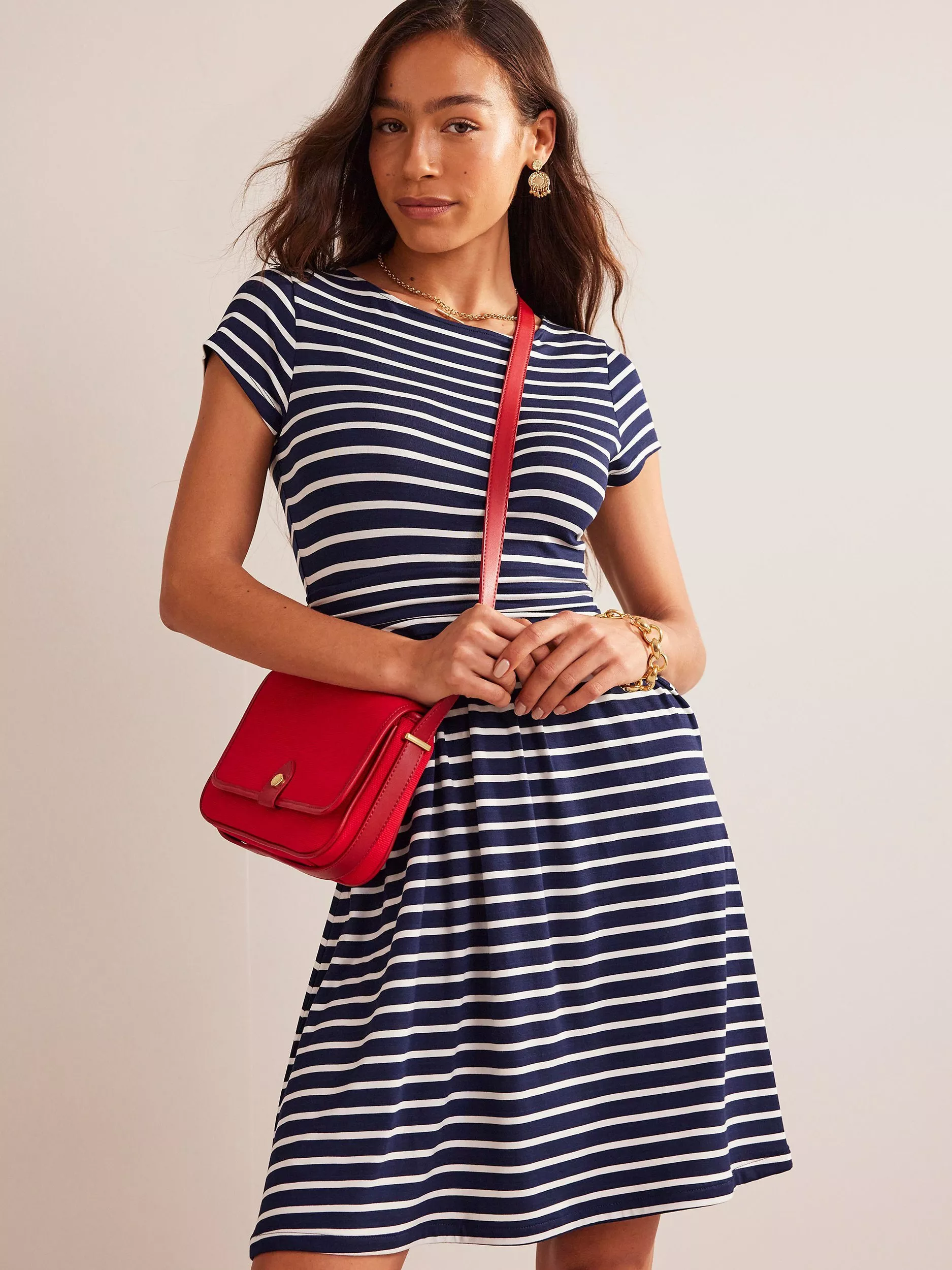 You know that amazing feeling when you try on a dress that drapes like a dream? This supremely comfortable jersey number will give you just that. Waistline ruching creates a flattering effect, while secret pockets add a practical element.
