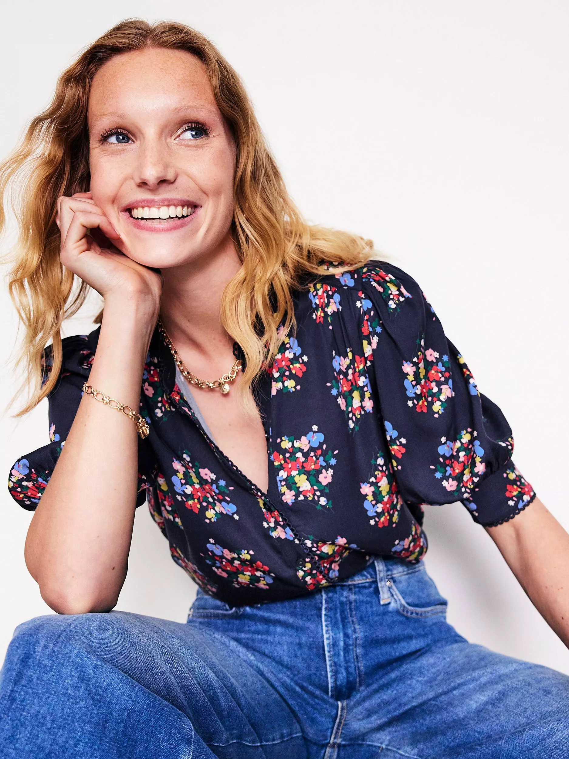 This short-sleeve Ara top is made from floaty fabric. The scallop detailing is what really makes it special though.