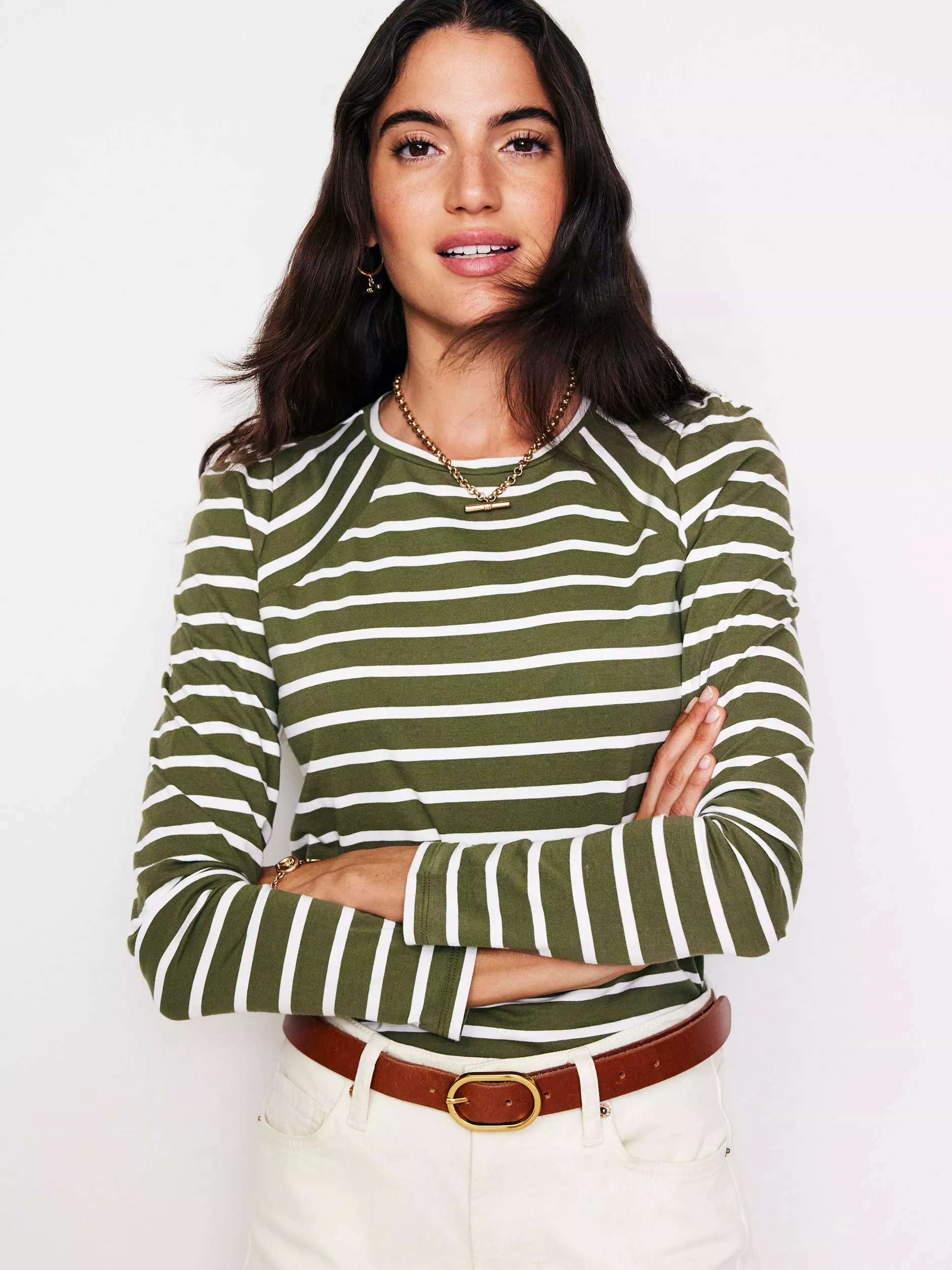 Fact: you can t go wrong with stripes. And if you need persuading take a look at the Arabella jersey top. We've added shoulder panels to give a twist (quite literally) to your normal striped tee.