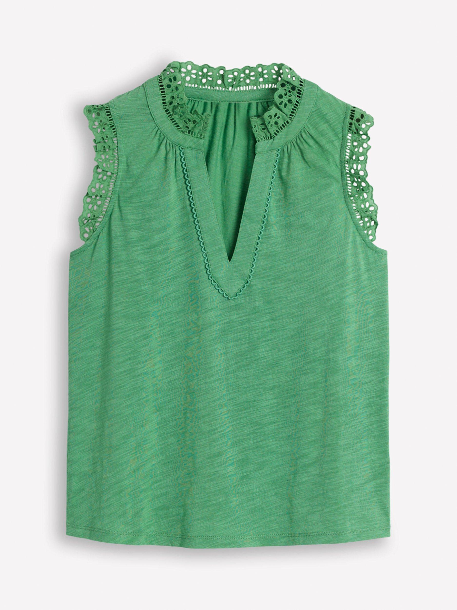 The delicate broderie trim of the Aria vest give it plenty of playtime appeal. Slip it on with jeans or skirts and everything in-between.