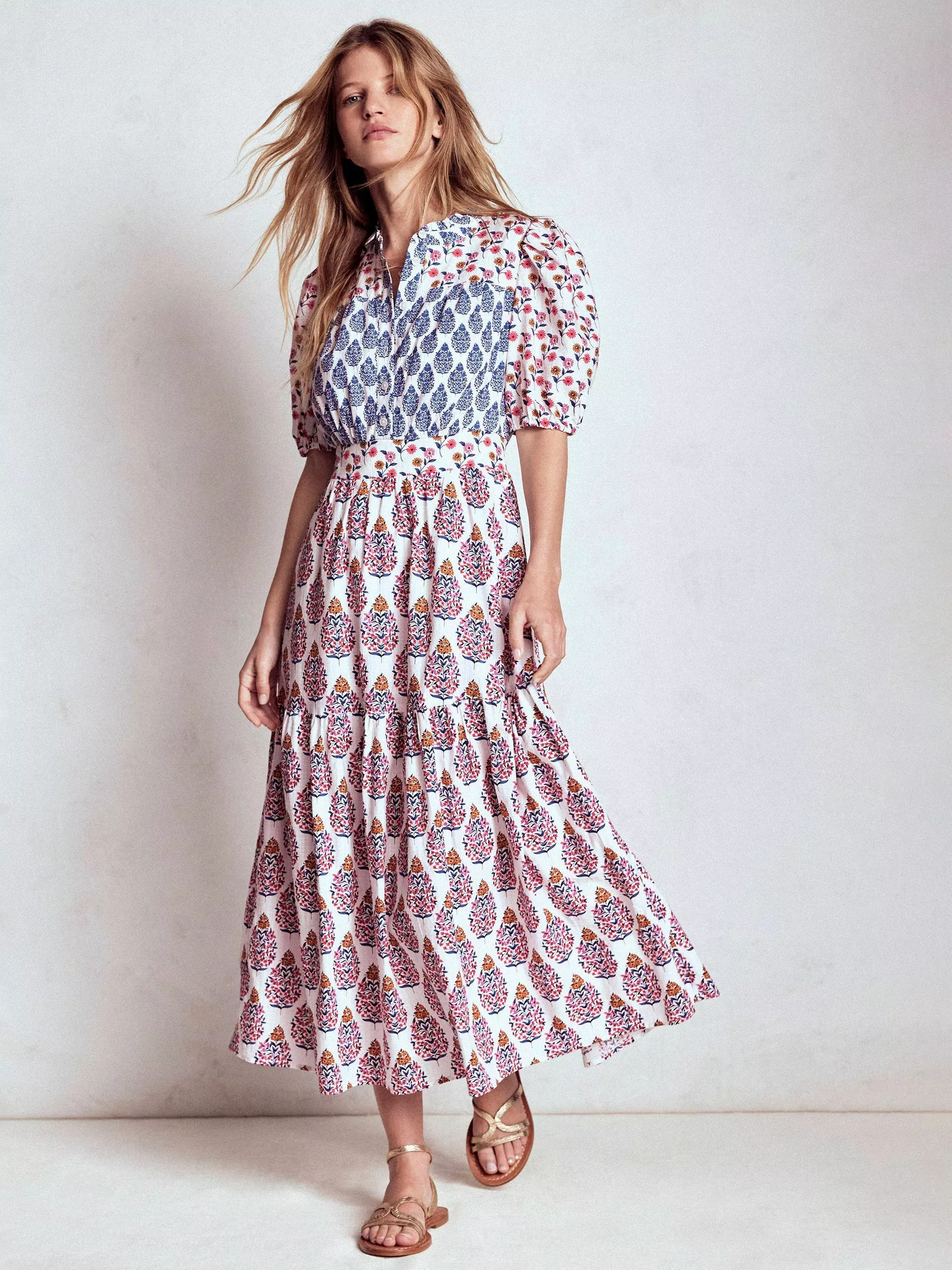 The Beatrice cotton maxi dress embraces charming prairie vibes with a full tiered skirt, smocked waistline and plenty of ruffles. Romance is alive and well.