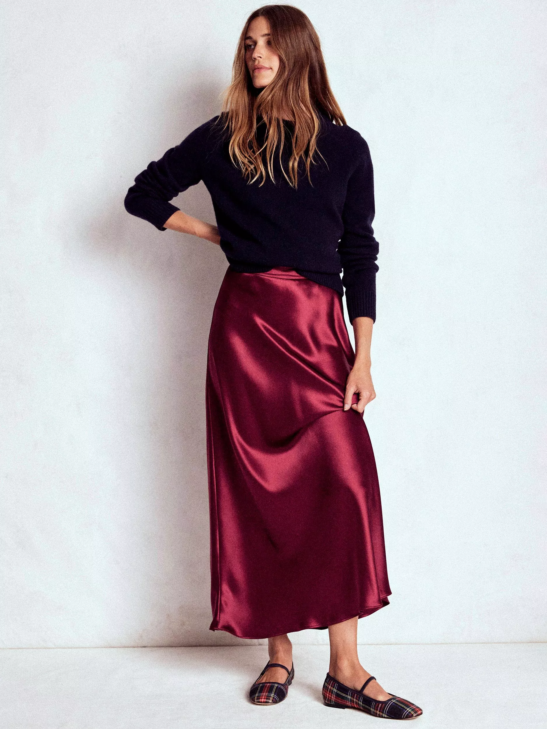 A maxi-length skirt from Boden. Flared gently from the waist, it fastens with a subtle hidden zip.