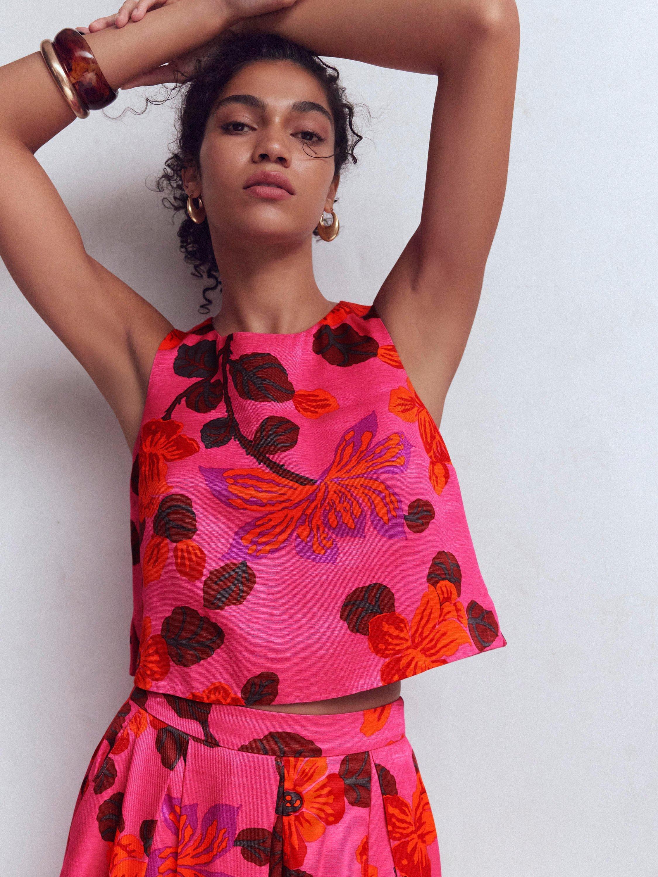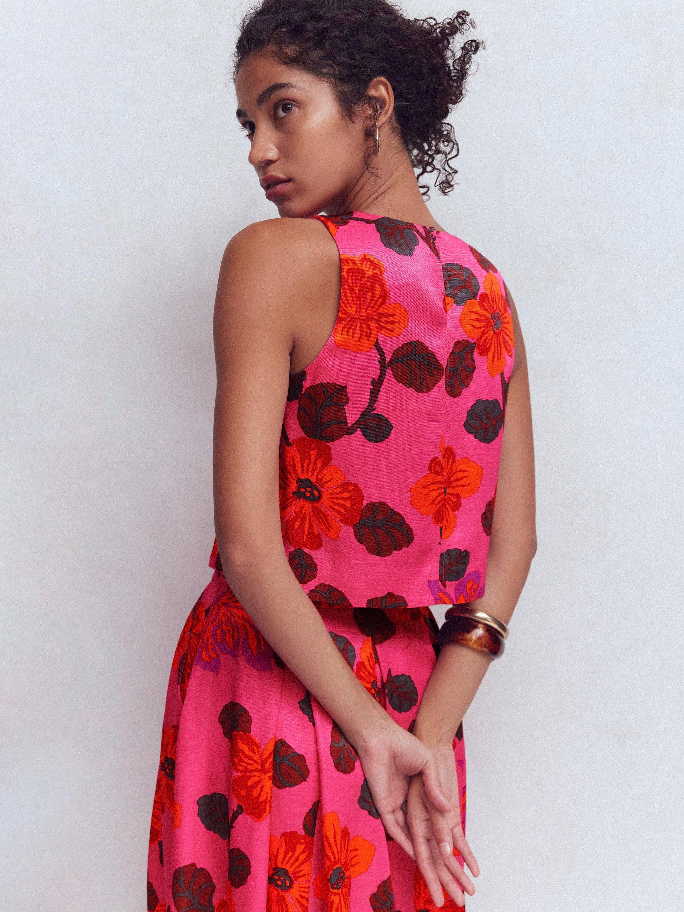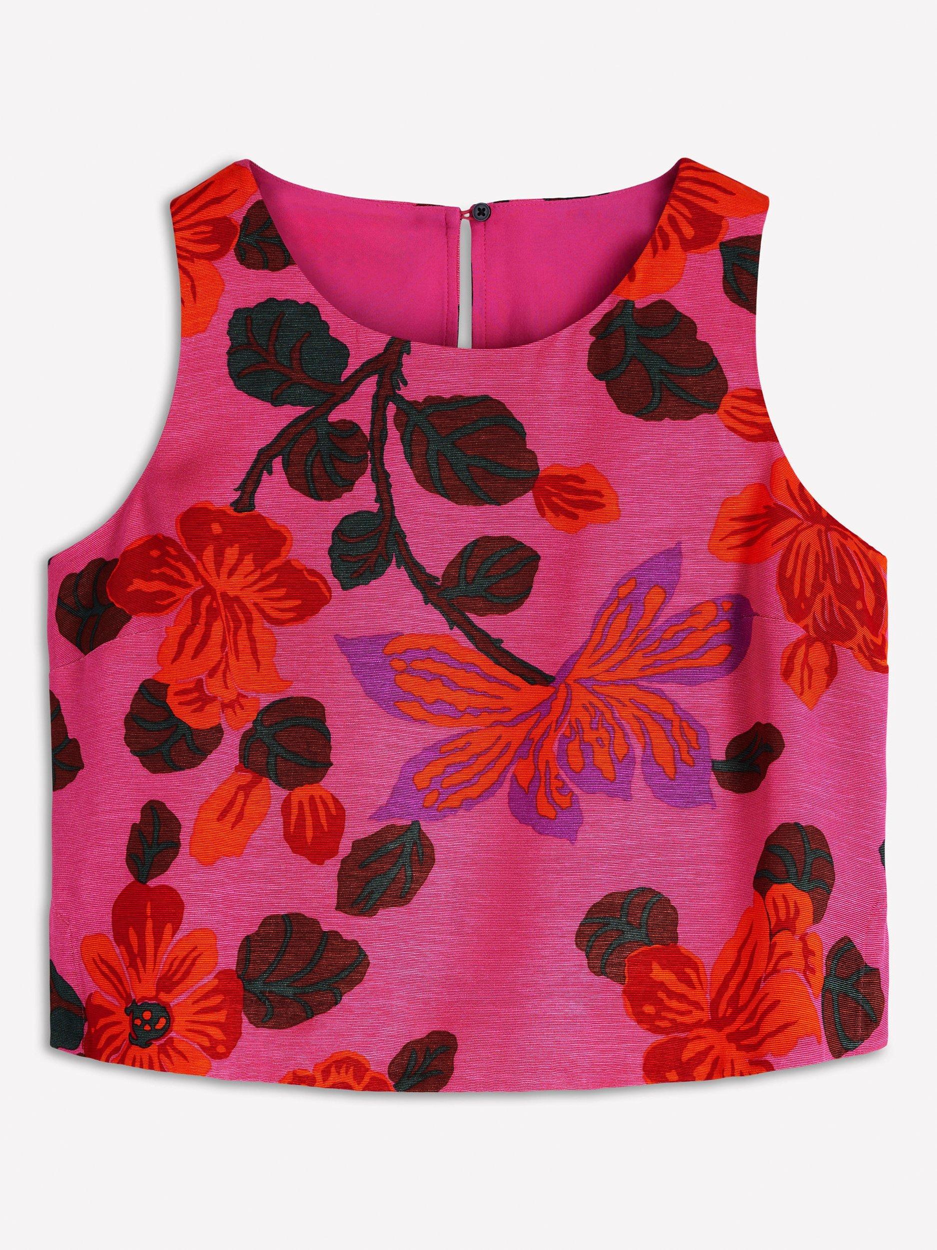 This sleeveless top has a smart semi-fitted shape and unmissable bold floral pattern.