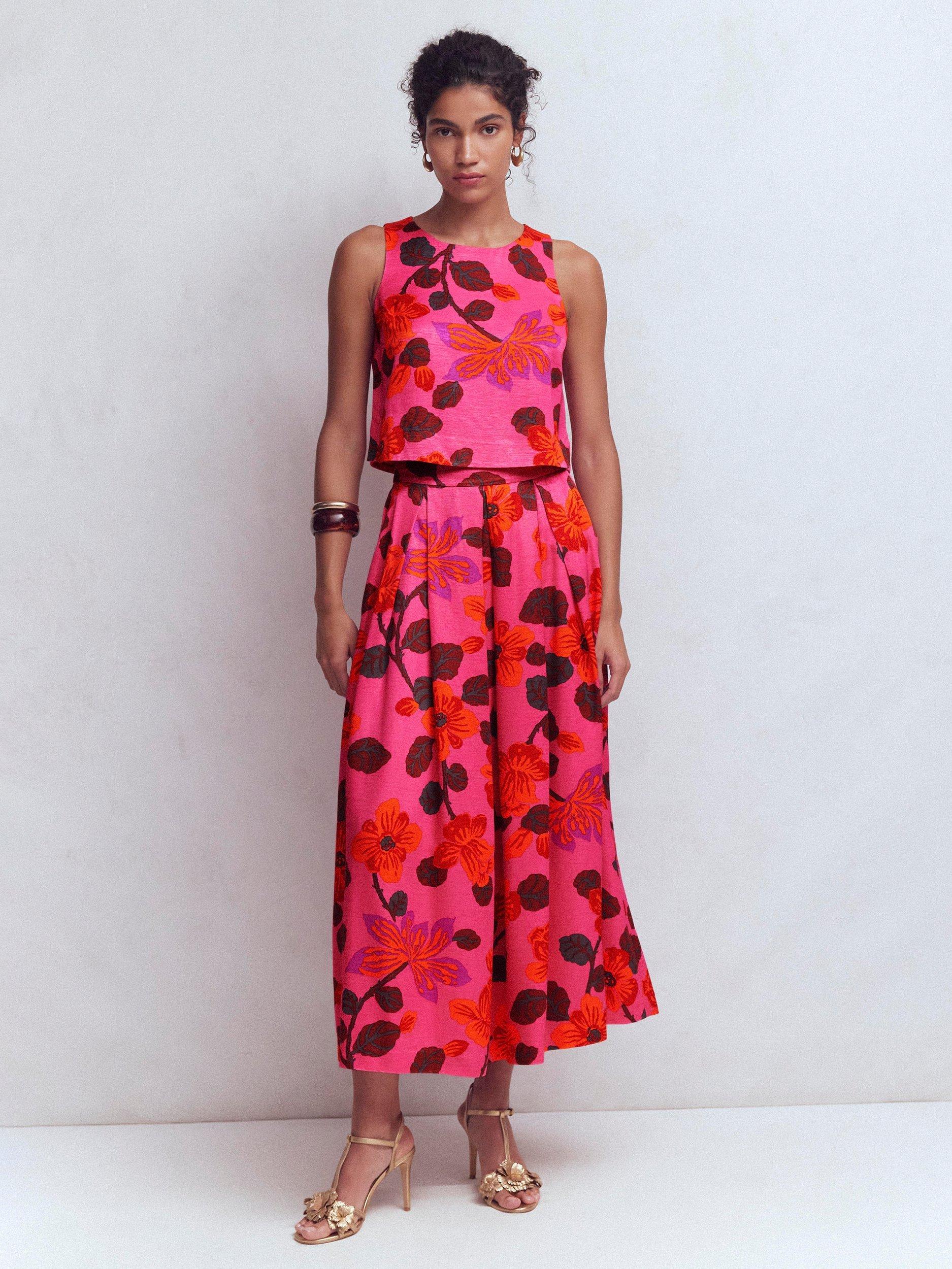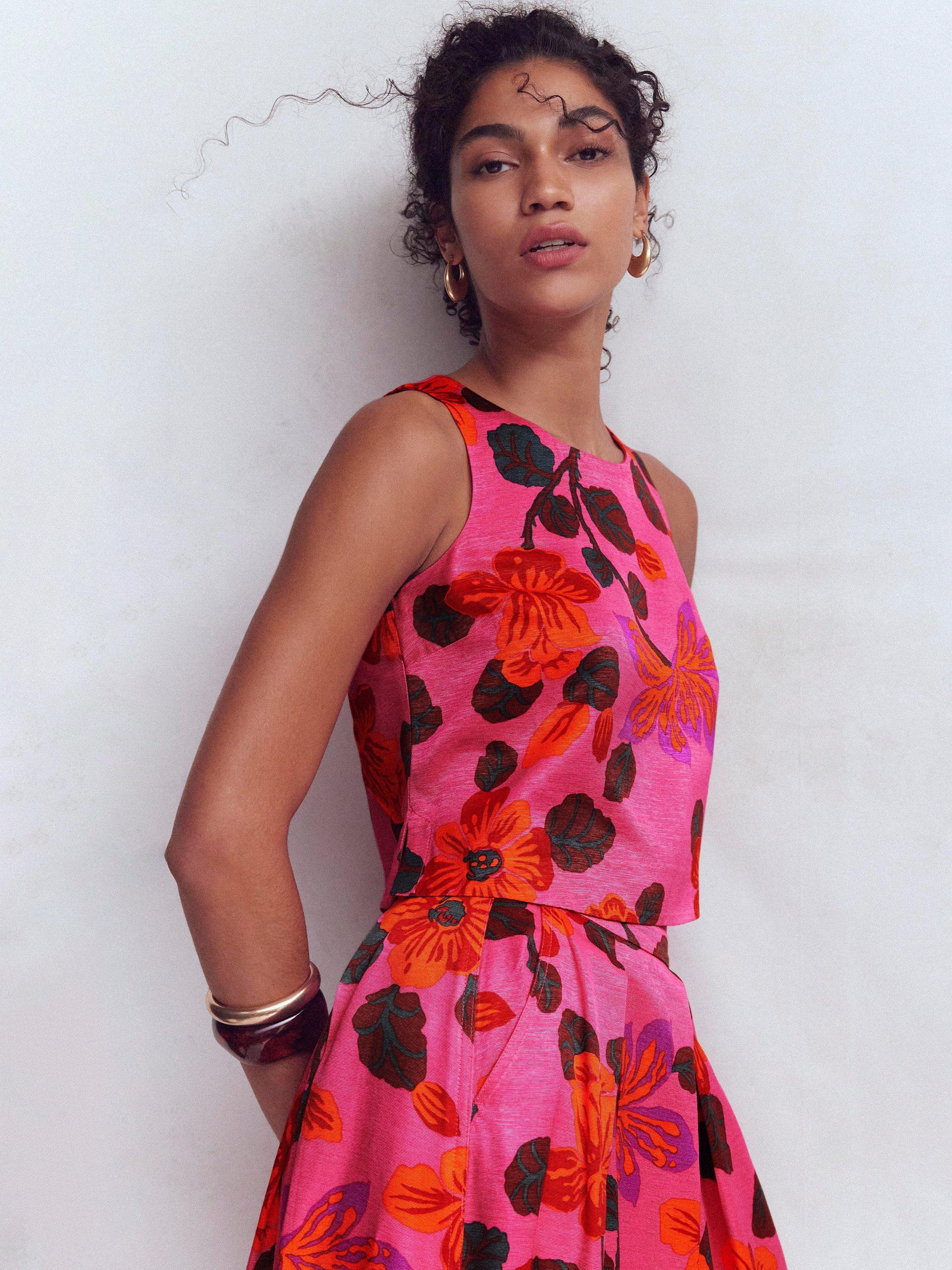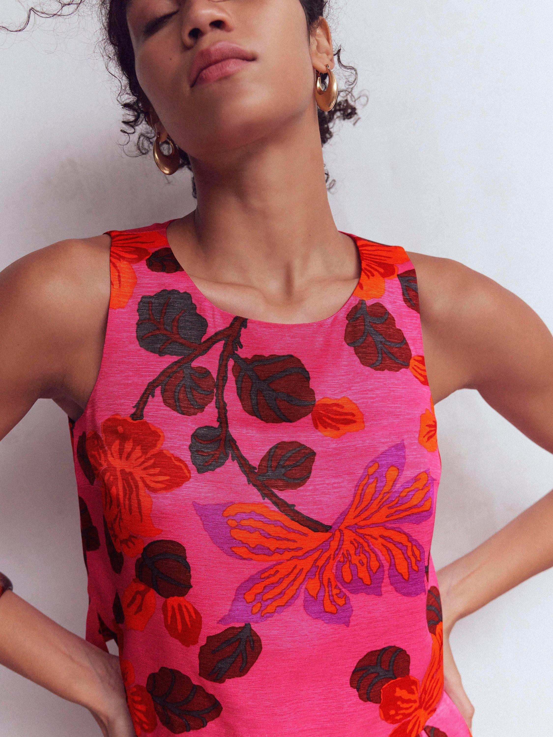 This sleeveless top has a smart semi-fitted shape and unmissable bold floral pattern.