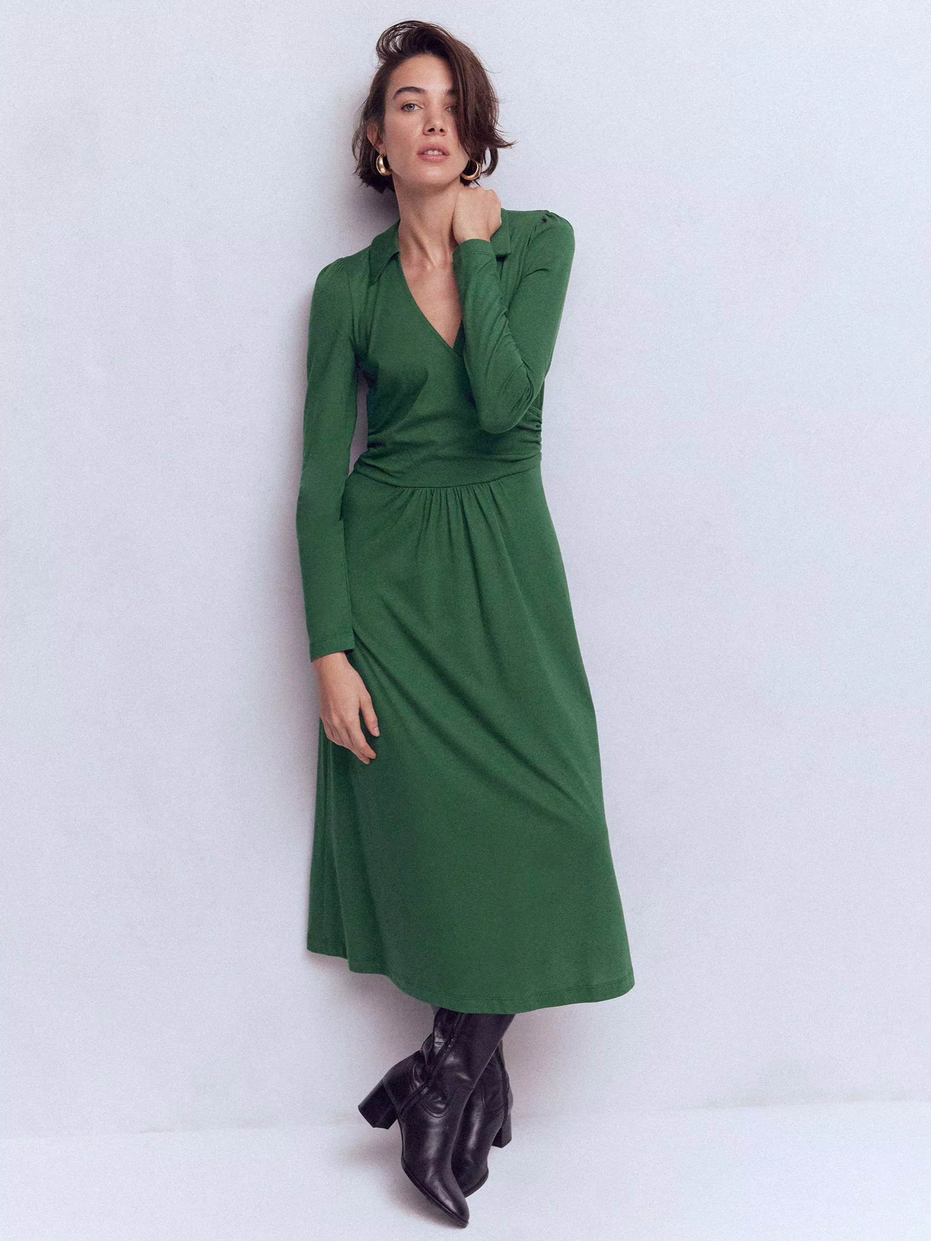 The Carla jersey dress does office days and evenings out with ease, literally – it’s all down to the soft modal-cotton jersey and ruching around the waist.