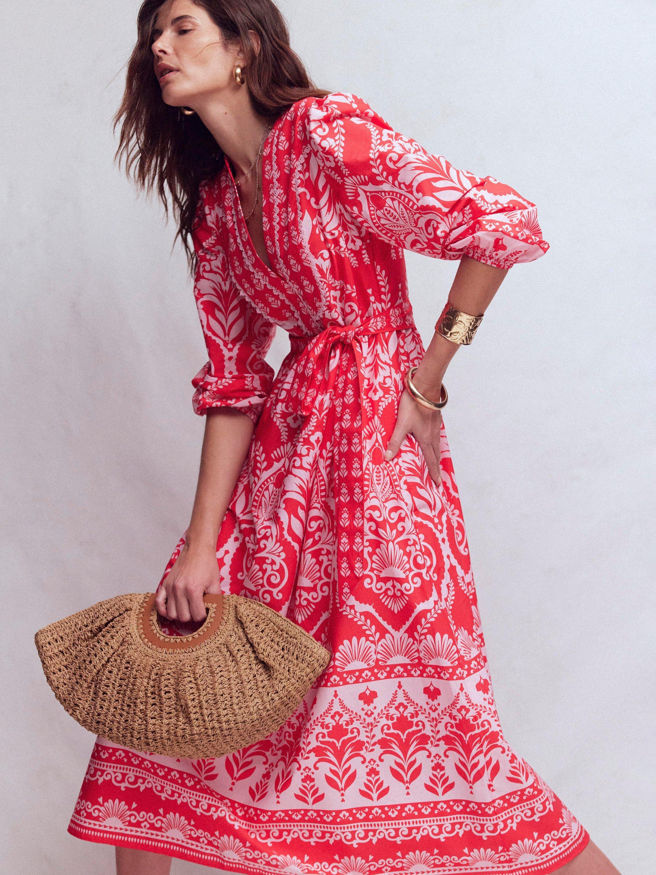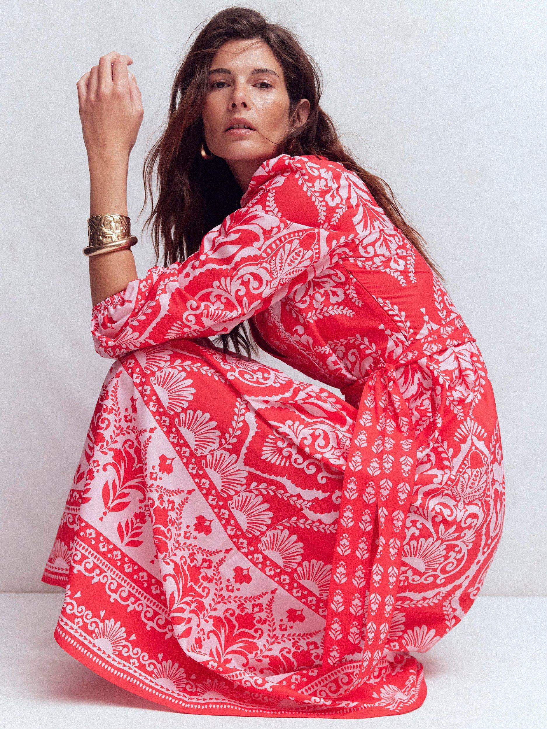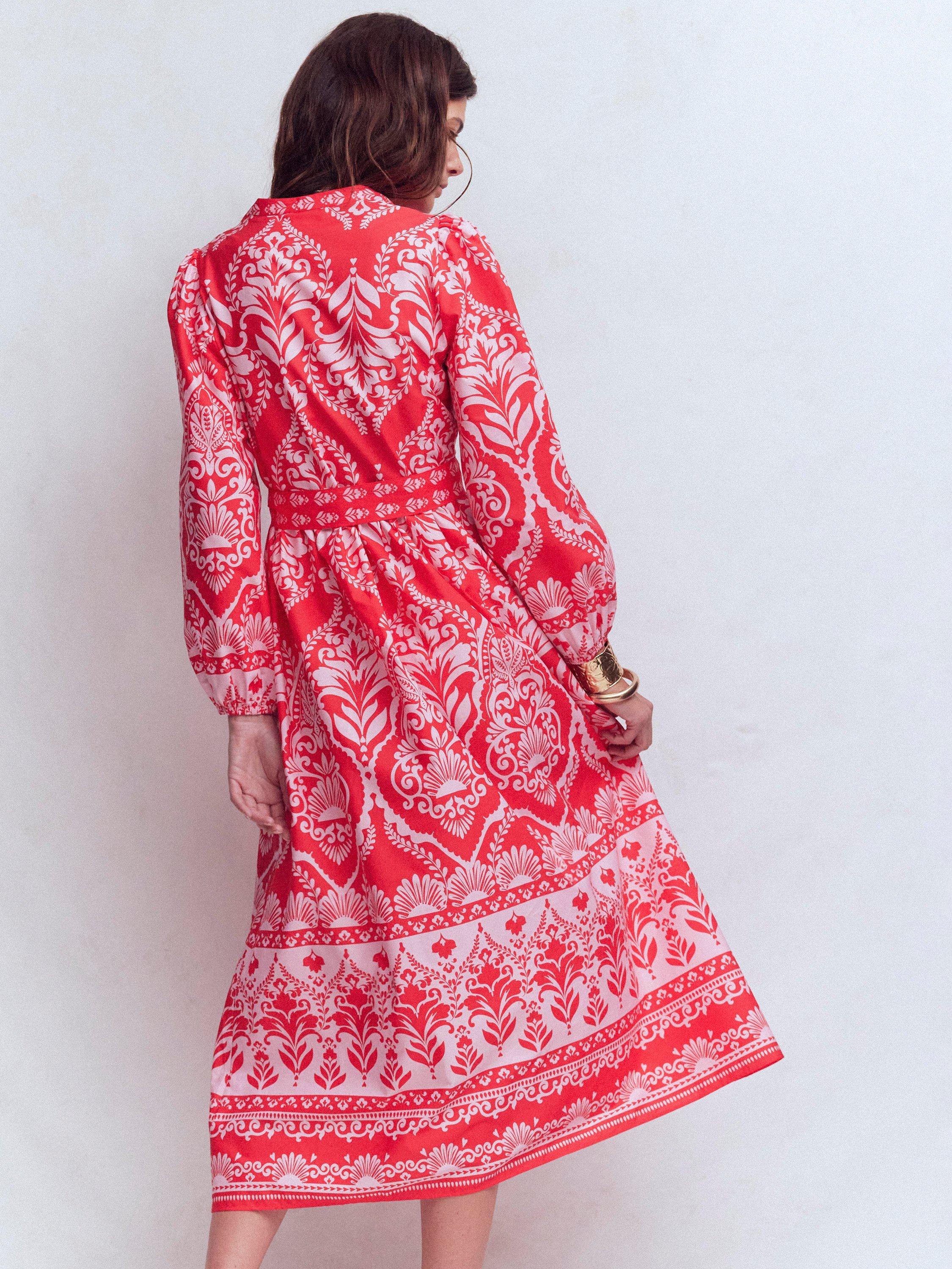 Proof that a fit and flare shape is a classic for a reason. This long-sleeved floral midi dress by Boden comes in pure cotton with V-neck and an adjustable drawstring waist.