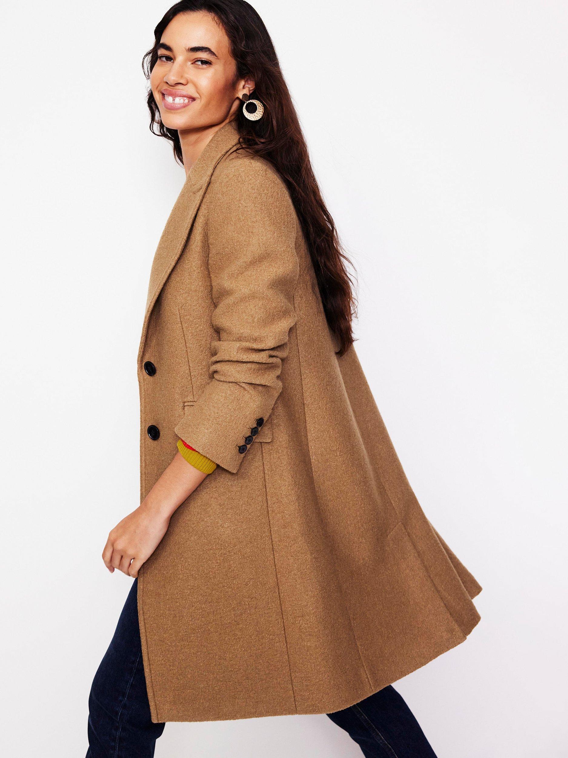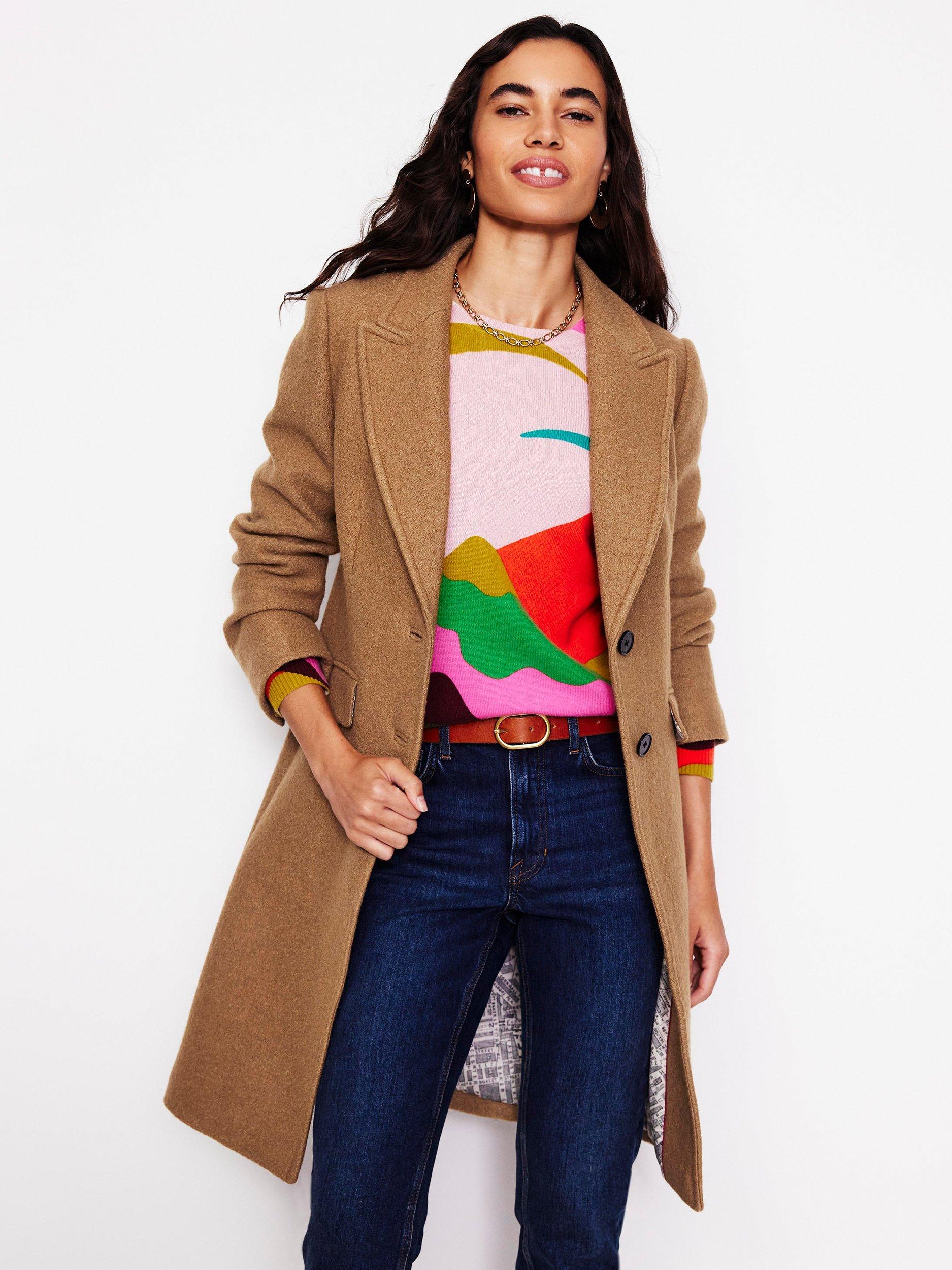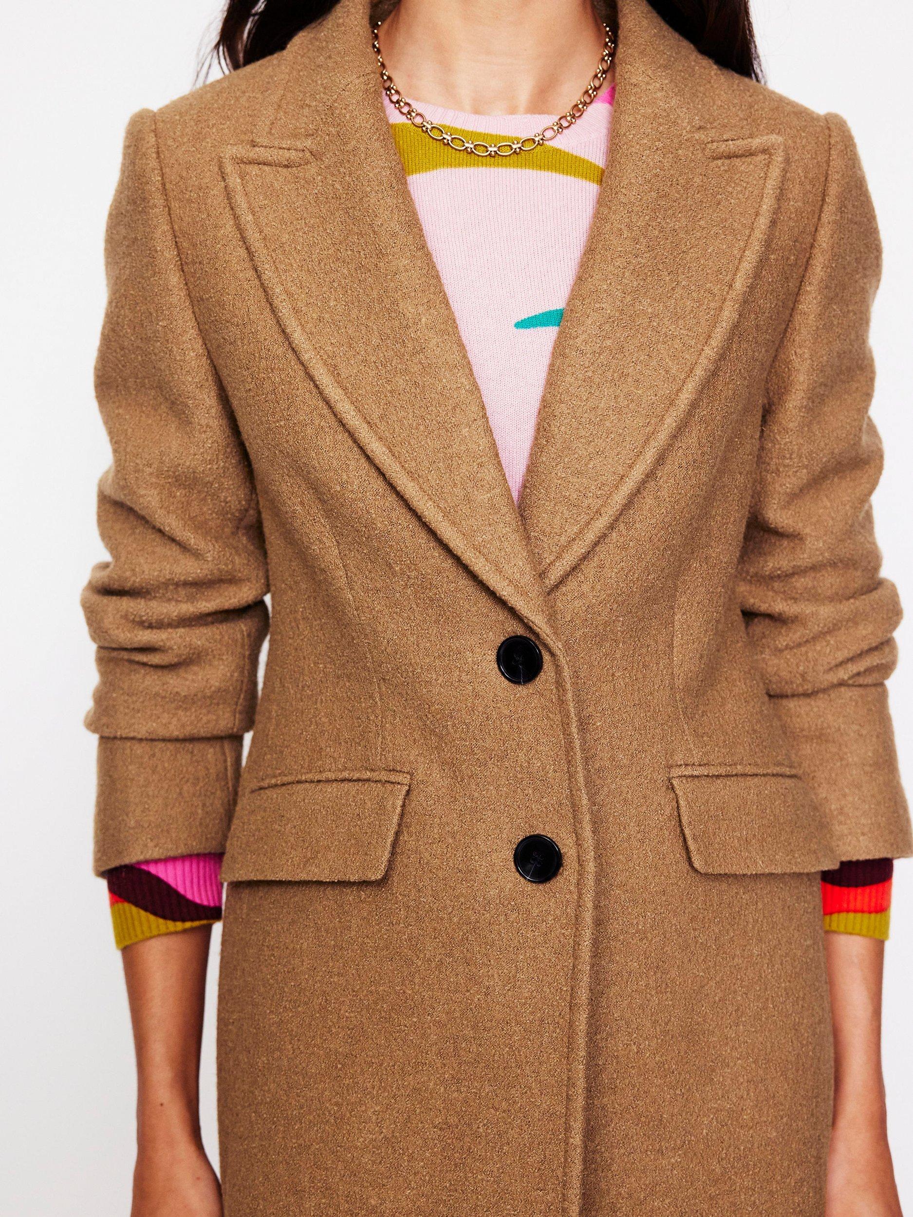 This elegant tailored coat adds drama to every look. The single-breasted silhouette is shaped with lapels and jetted pockets. A classic in the making.