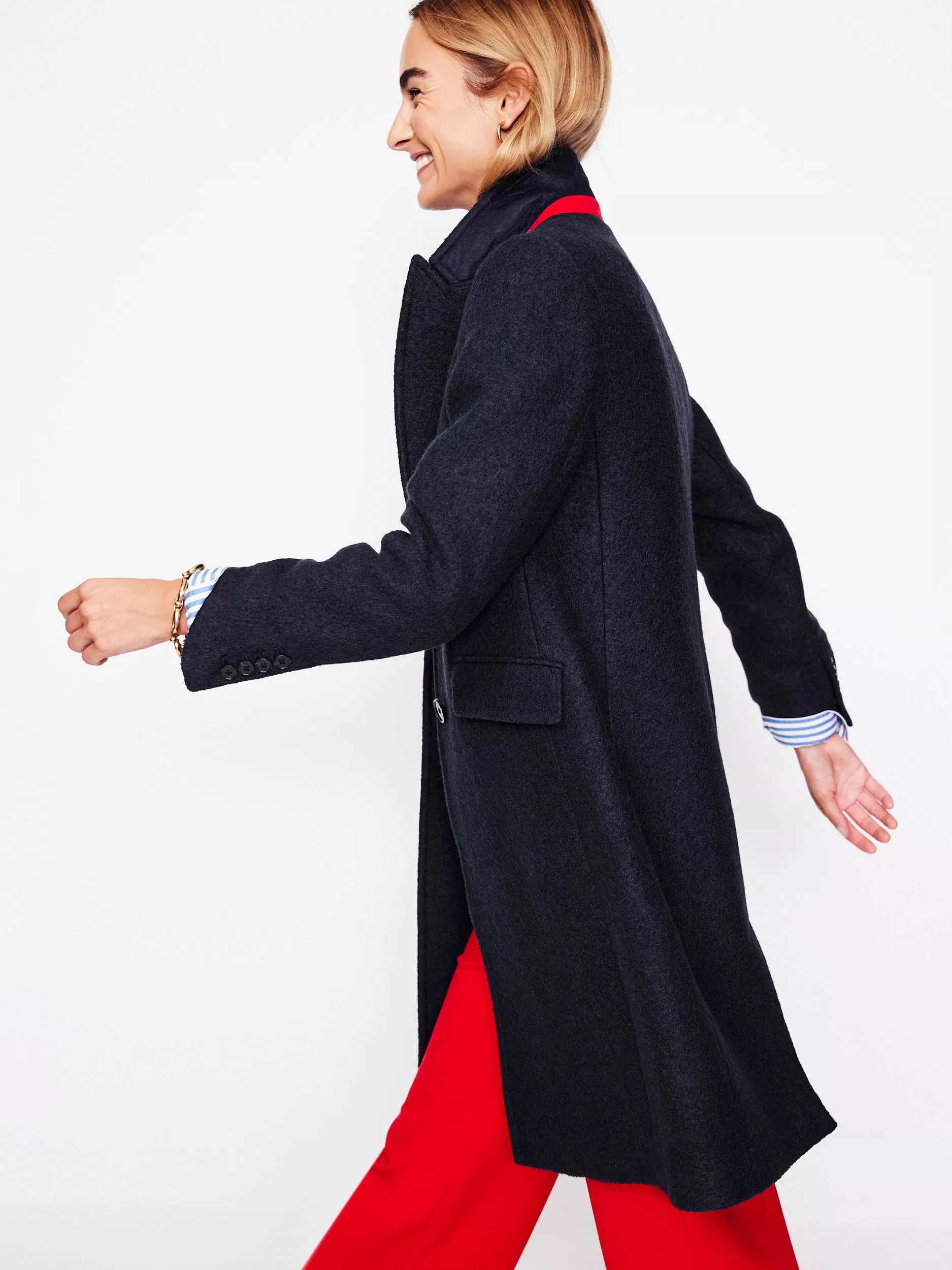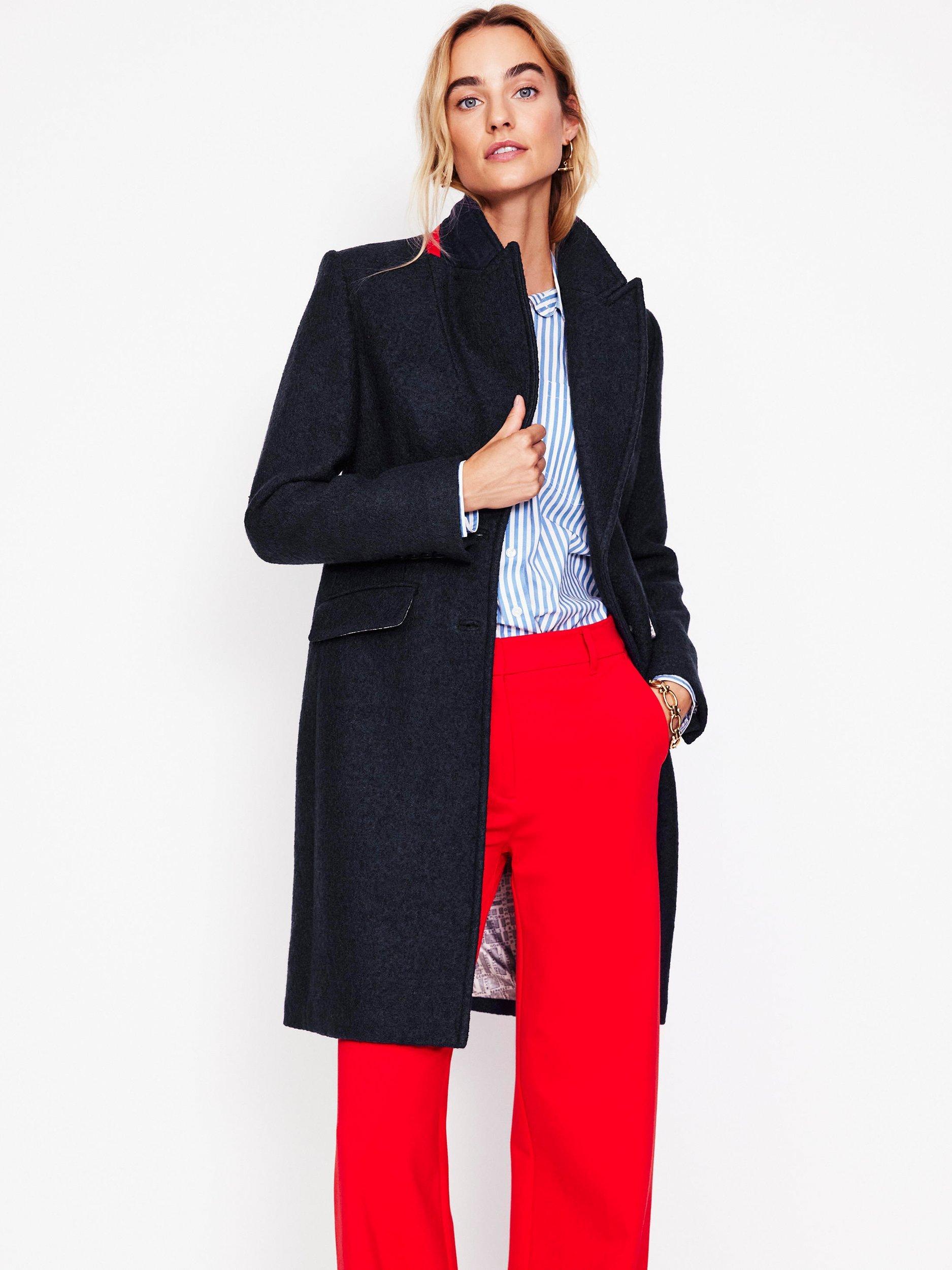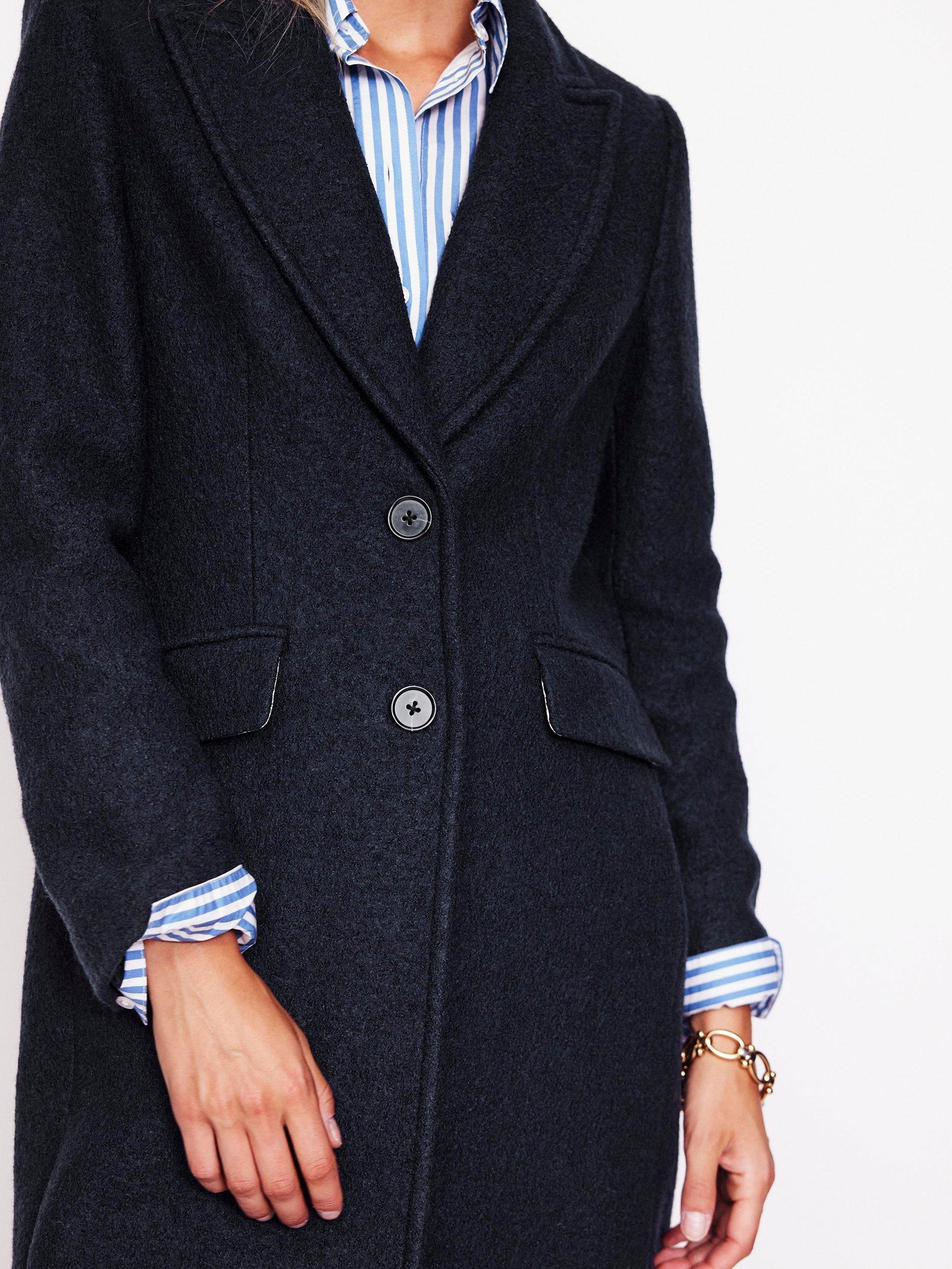 This elegant tailored coat adds drama to every look. The single-breasted silhouette is shaped with lapels and jetted pockets. A classic in the making.