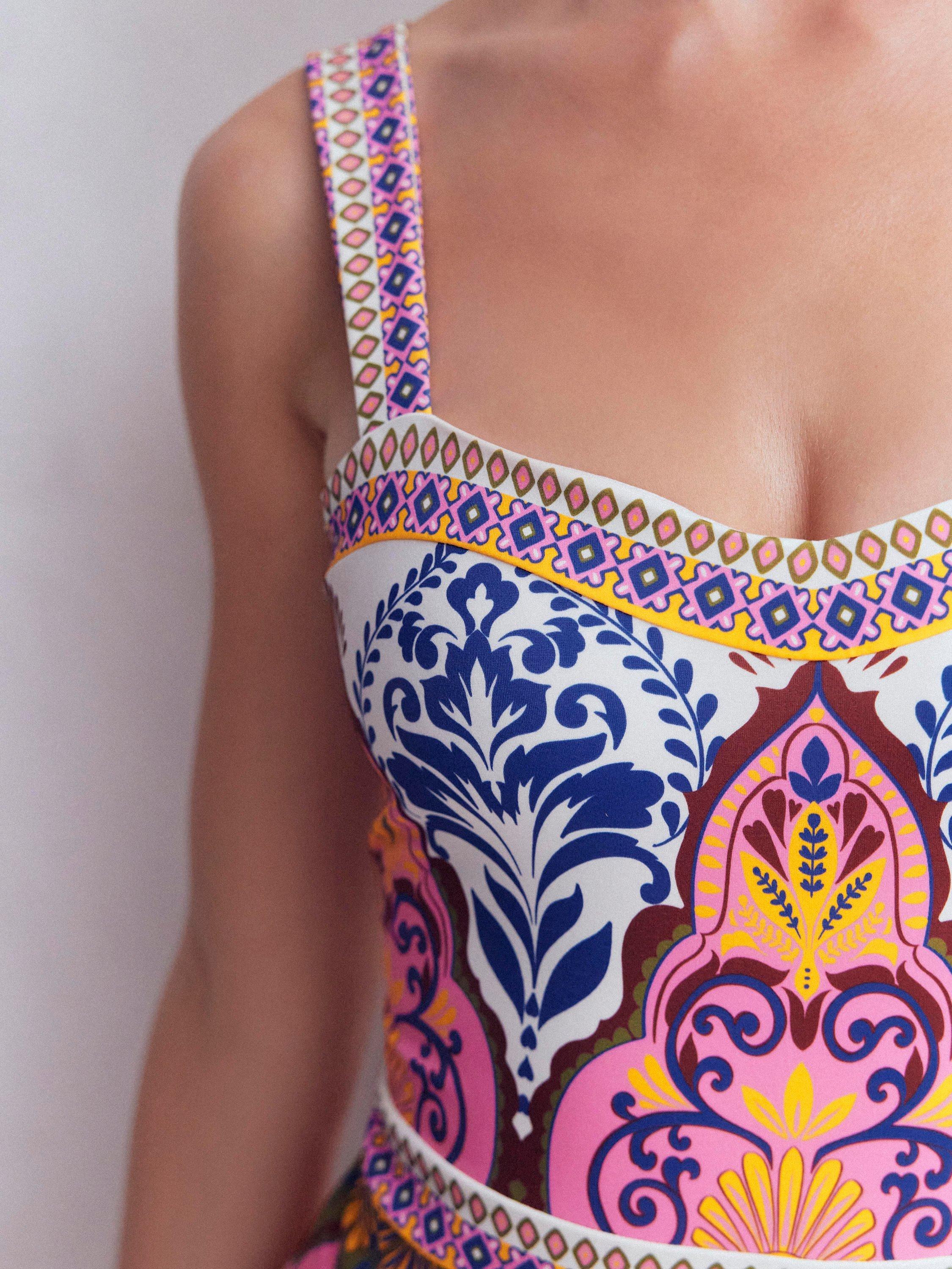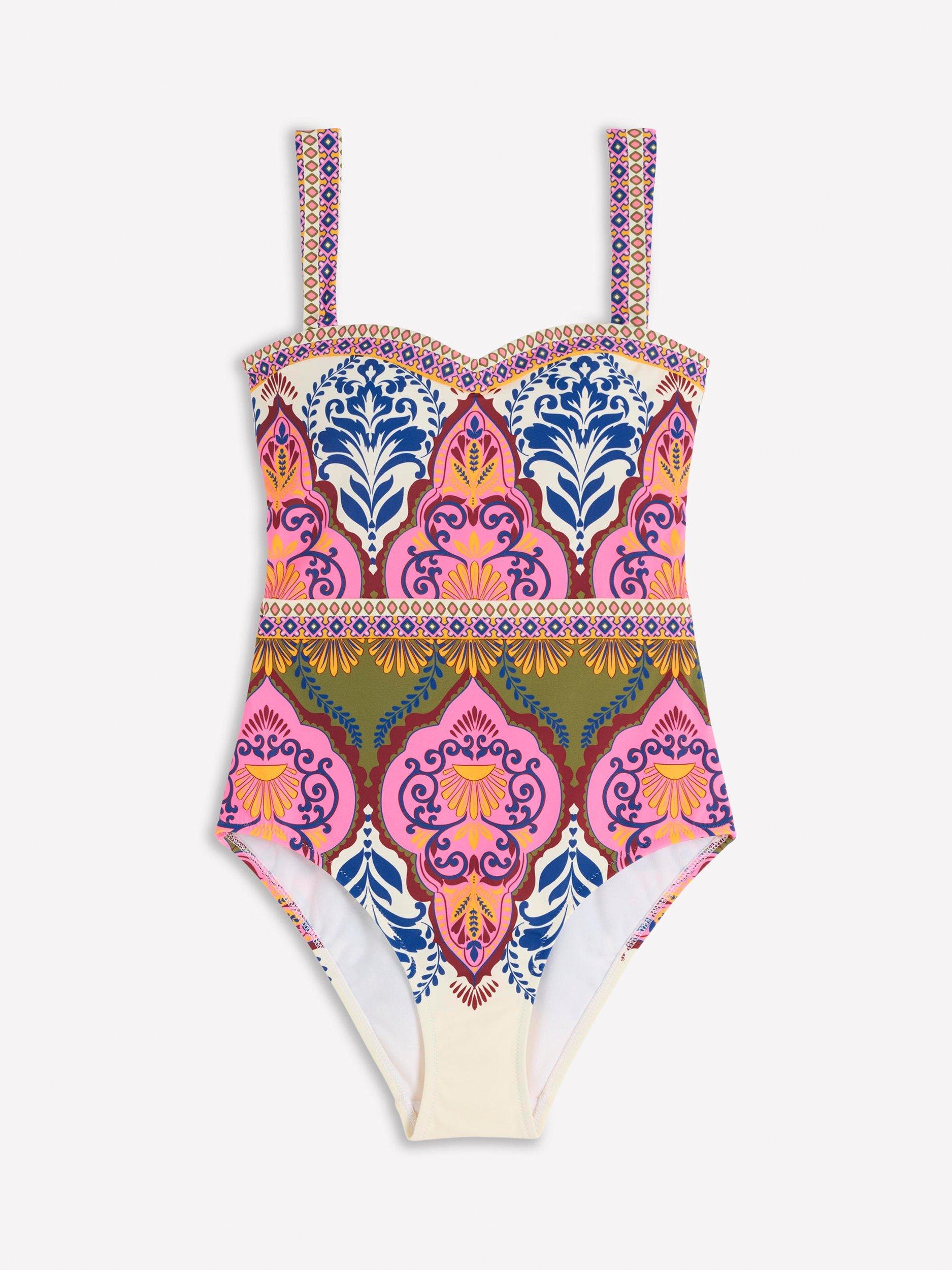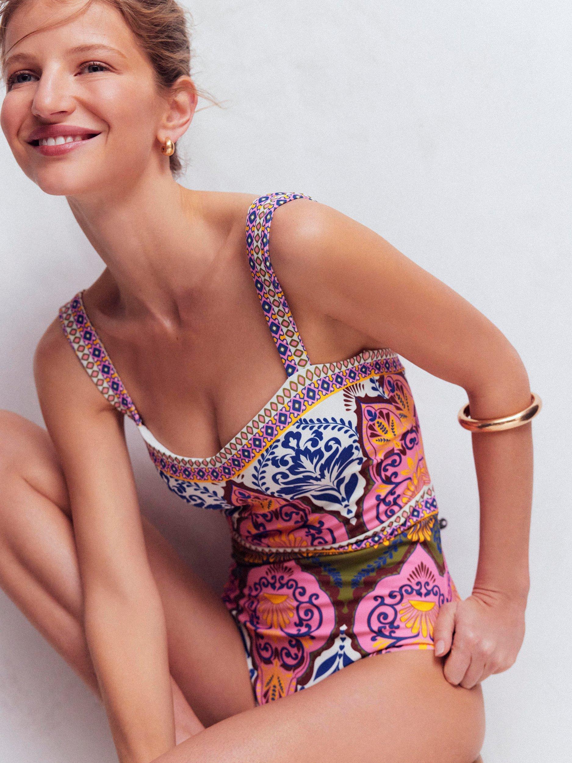 Graced with vivid paisley print florals, this swimsuit from Boden is shaped with a sweetheart neckline and a comfortable classic back.