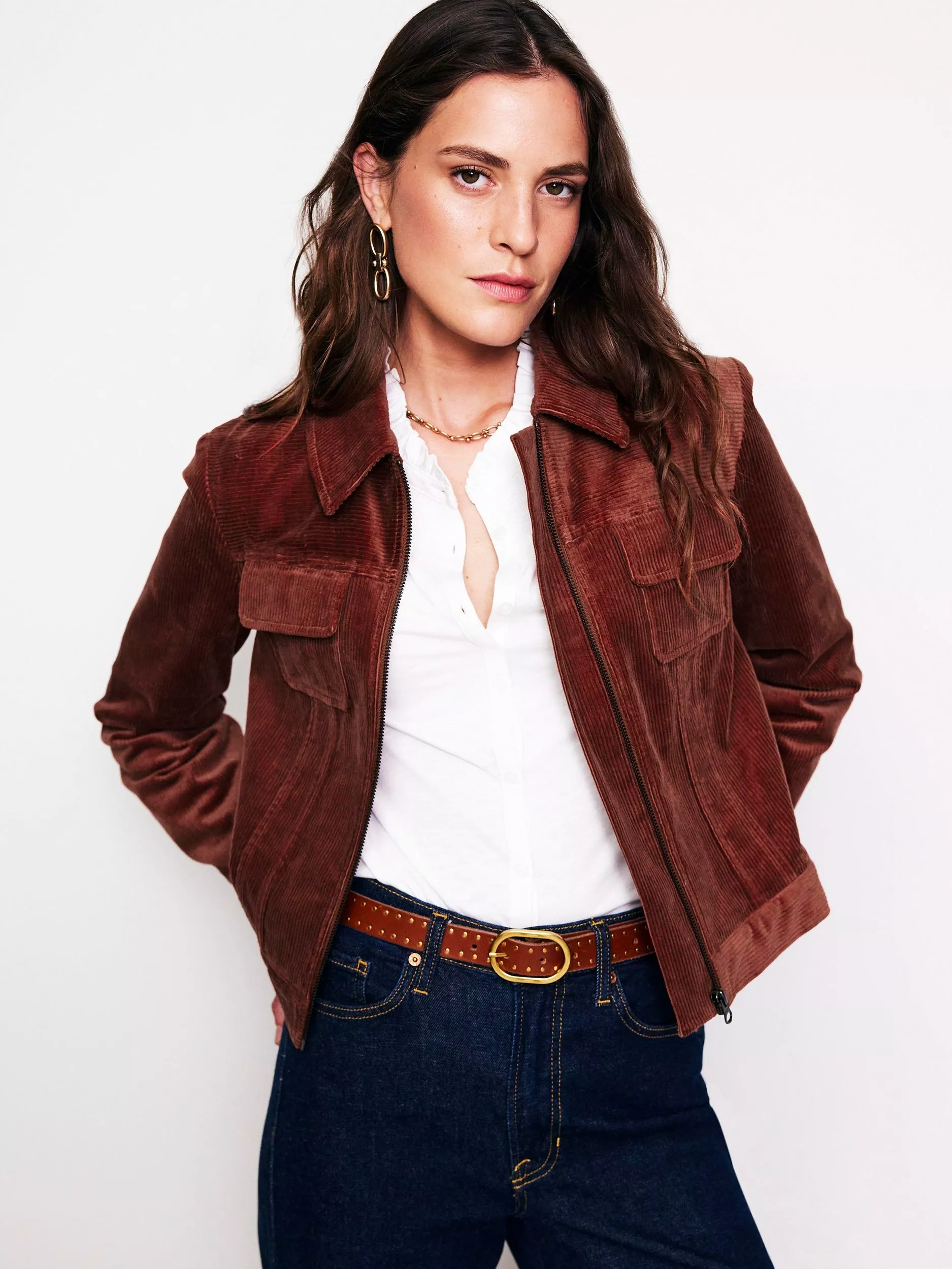 The zip-up cropped jacket is tirelessly versatile and this cord one is no exception. Front patch pockets make it a practical choice for everyday wear.