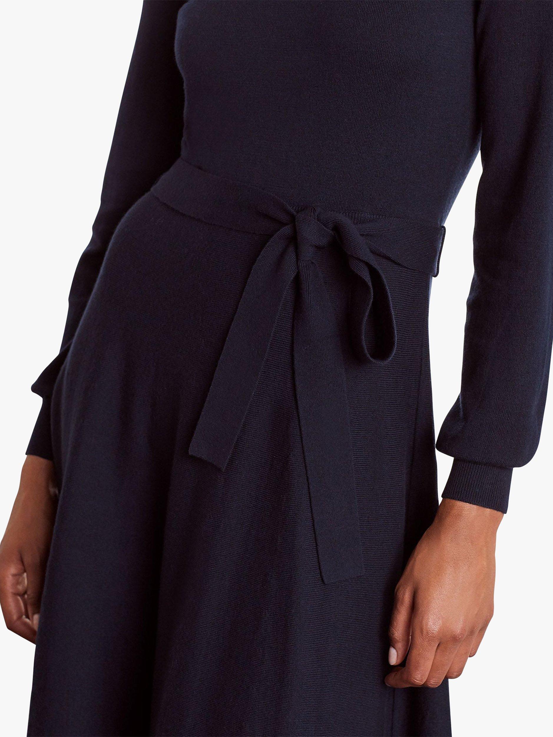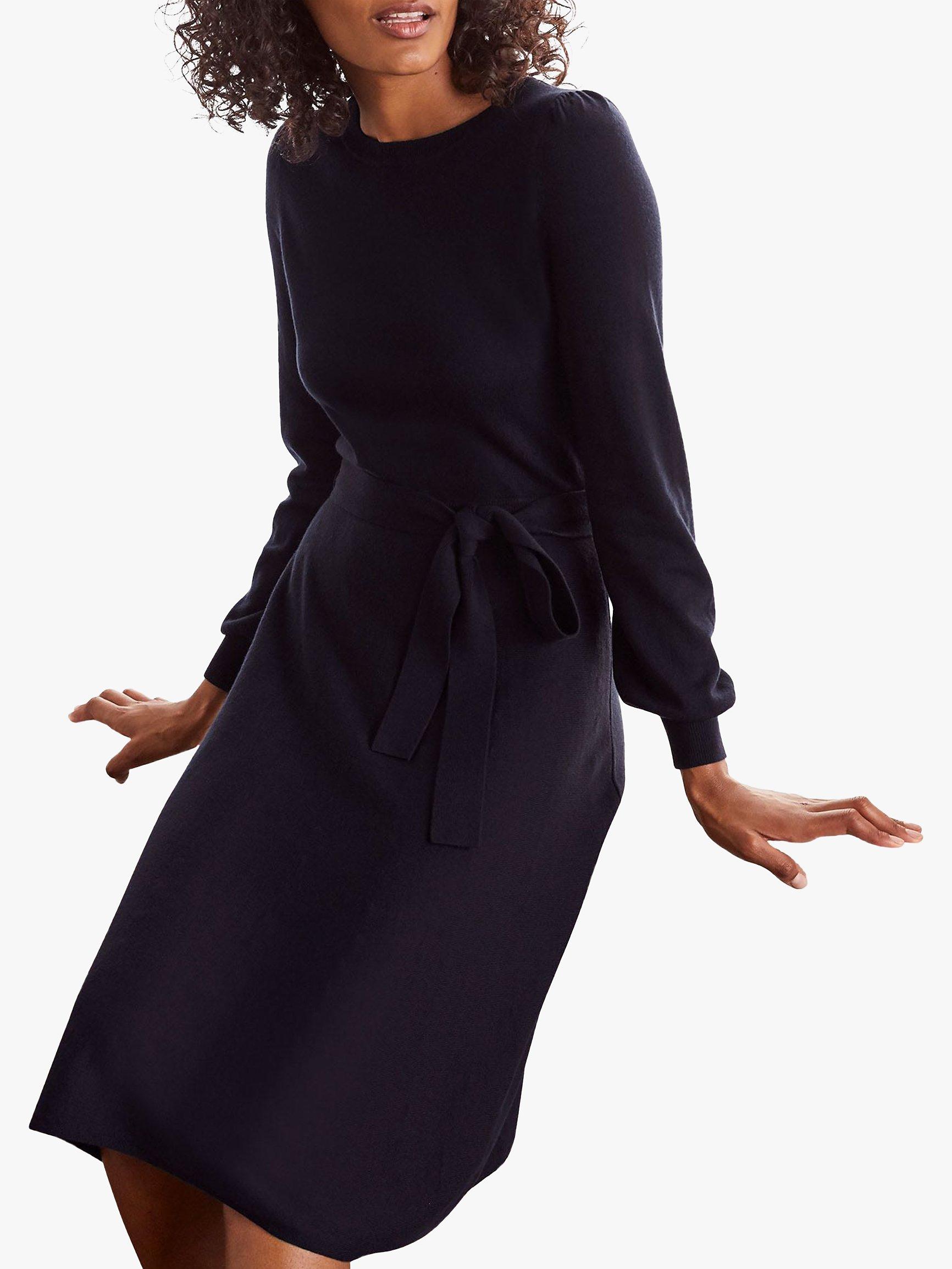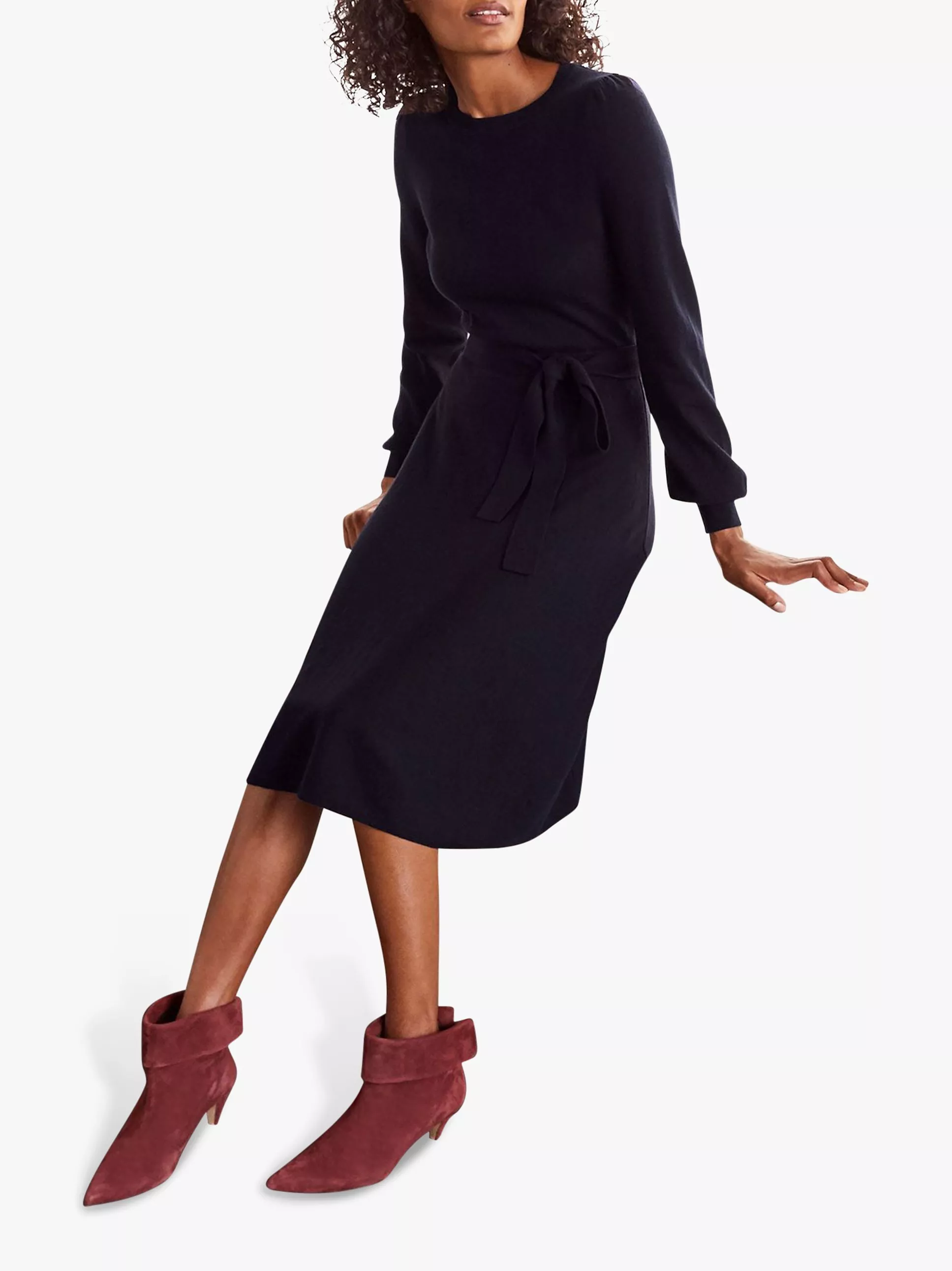 This lightweight fit-and-flare dress from Boden is a classic with extra style points thanks to the blouson sleeves. It features a neat crew neck, knee-length hem and belted waist that combine to create a feminine shape. The plush blend of cotton and merino wool ensures it comfortable and cosy too. Wear yours with heeled boots.