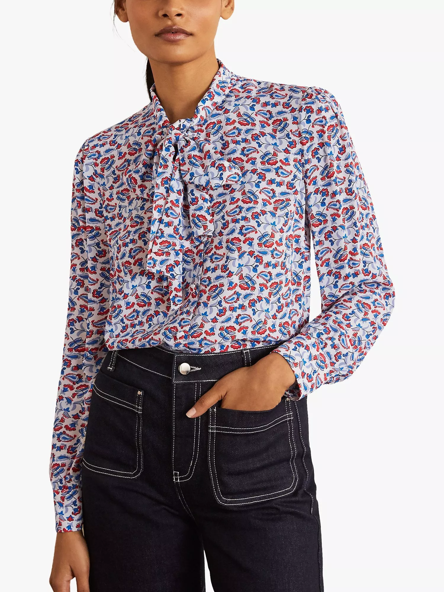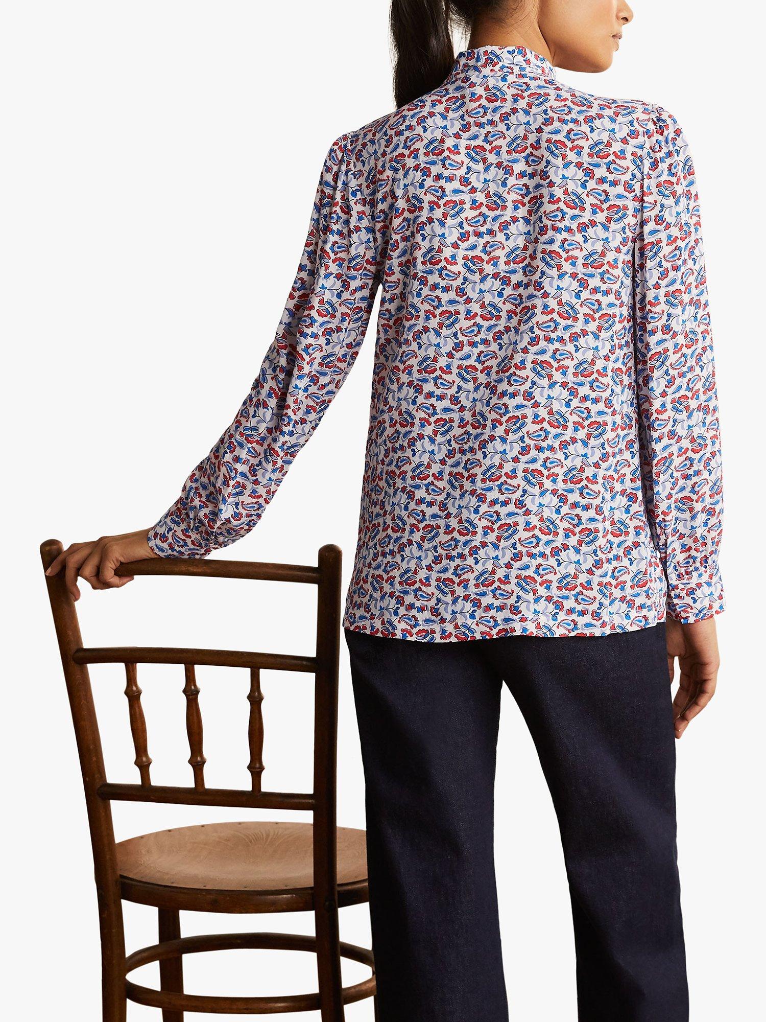 Elegant outfits are easy to pull together with this lightweight blouse by Boden. Its flattering, semi-fitted shape takes full advantage of the natural drape of the fabric. The shoulders are gently shaped and the sleeves nipped in at the wrist for an airy feel. Sophistication comes with a keyhole opening and fabric-covered buttons at the cuffs. For a statement finish, there's an attached necktie in matching material, which you can do up neatly in a bow or leave loose and relaxed.