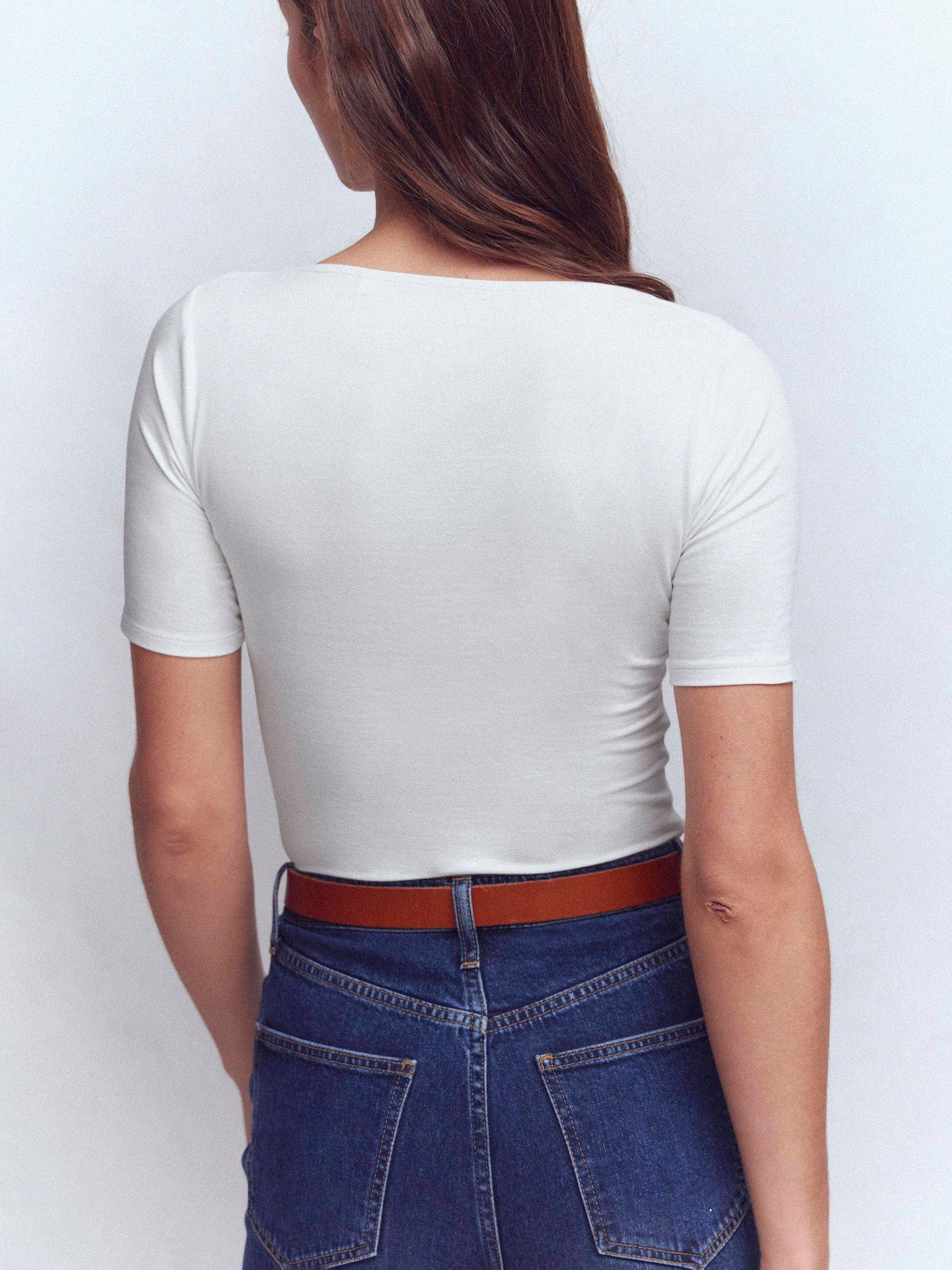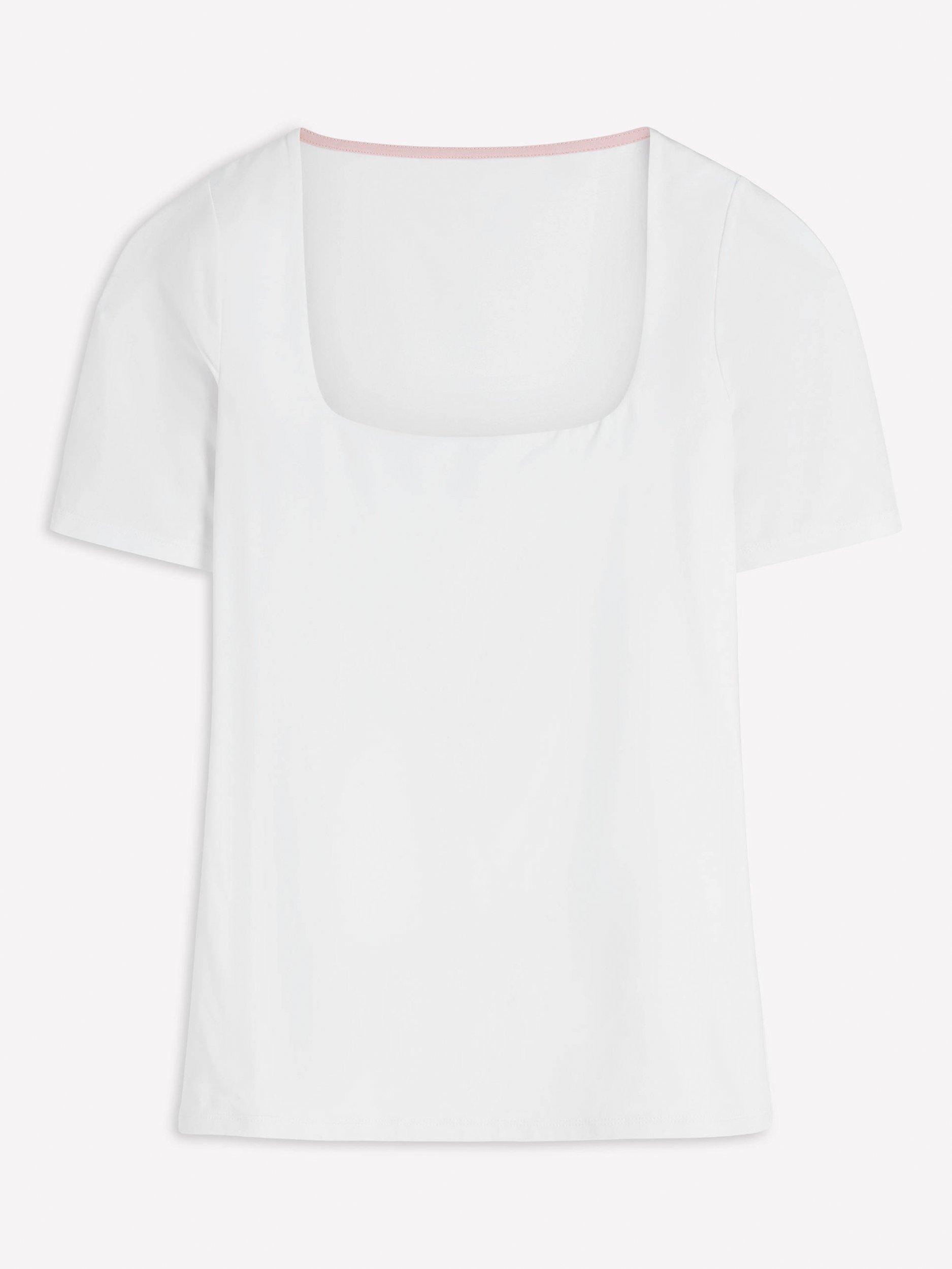 A classic wardrobe staple, this square neck T-shirt is crafted from two layers of cotton with a little added stretch for a fitted look. Pair with jeans, skirts and wear alone or as a light base layer.