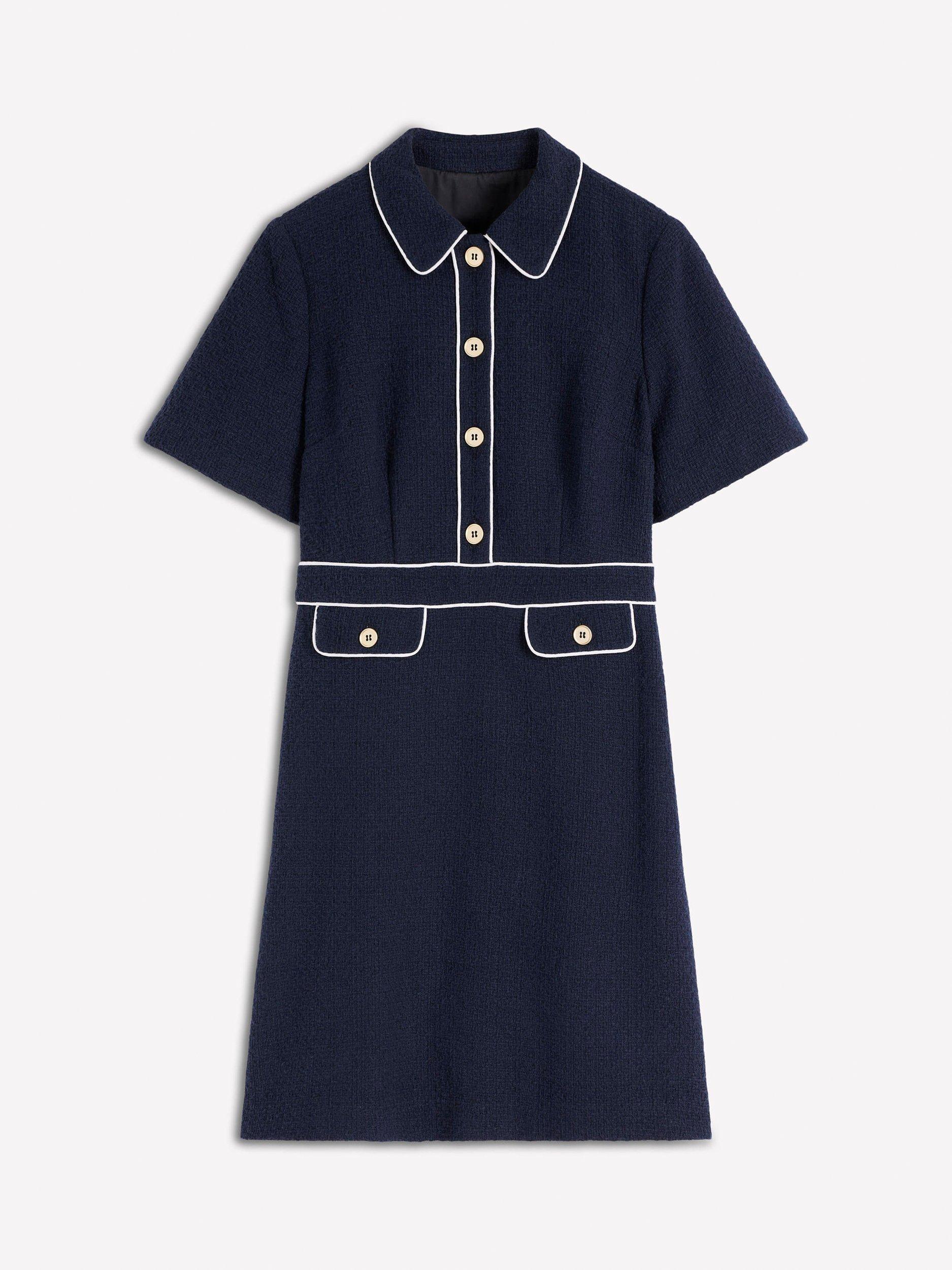 This shift dress features a smart collar and short sleeves for all-day comfort at work or out and about. Its cotton blend fabric feels soft, while the knee length strikes just the right balance for versatile styling.