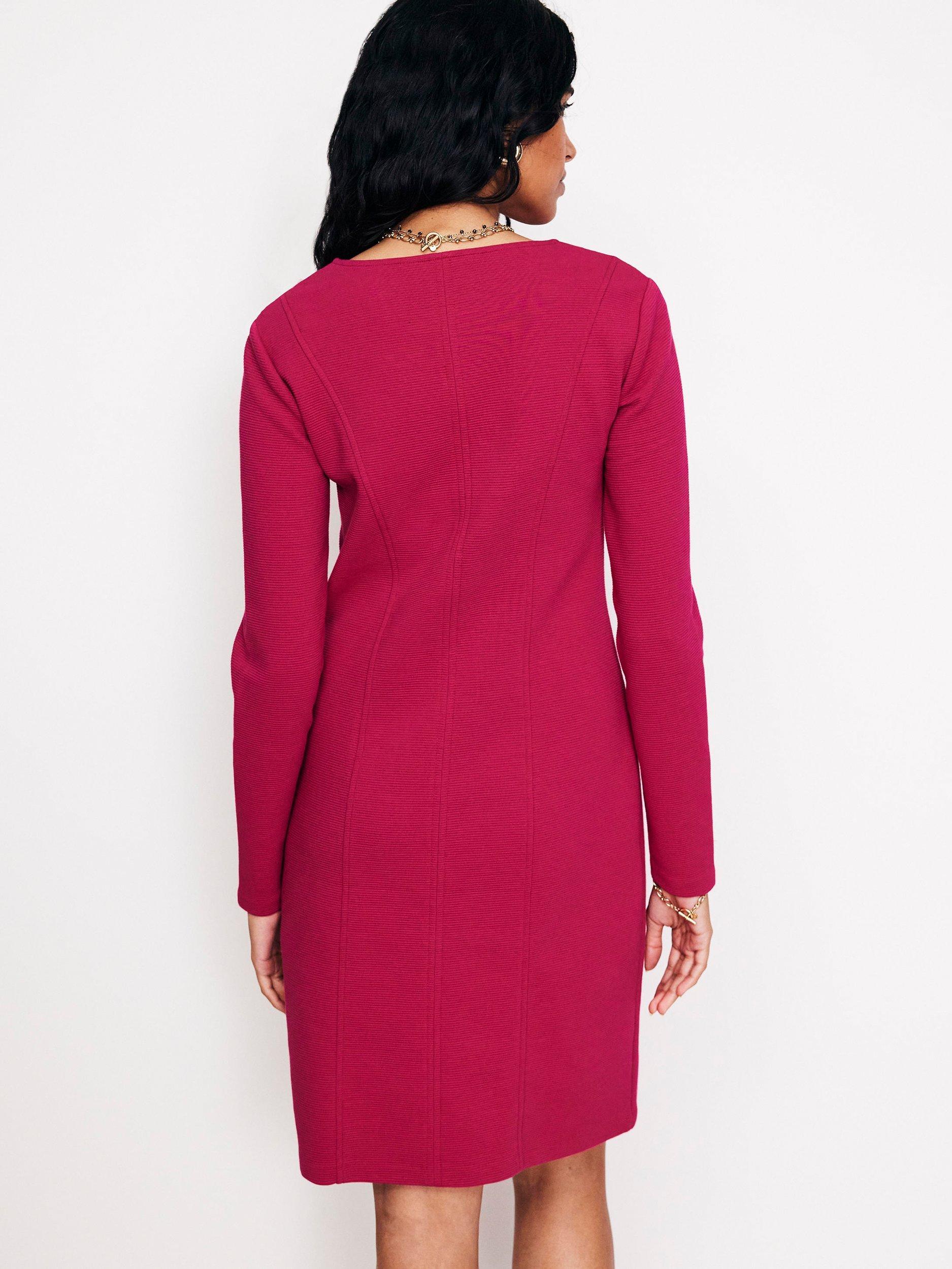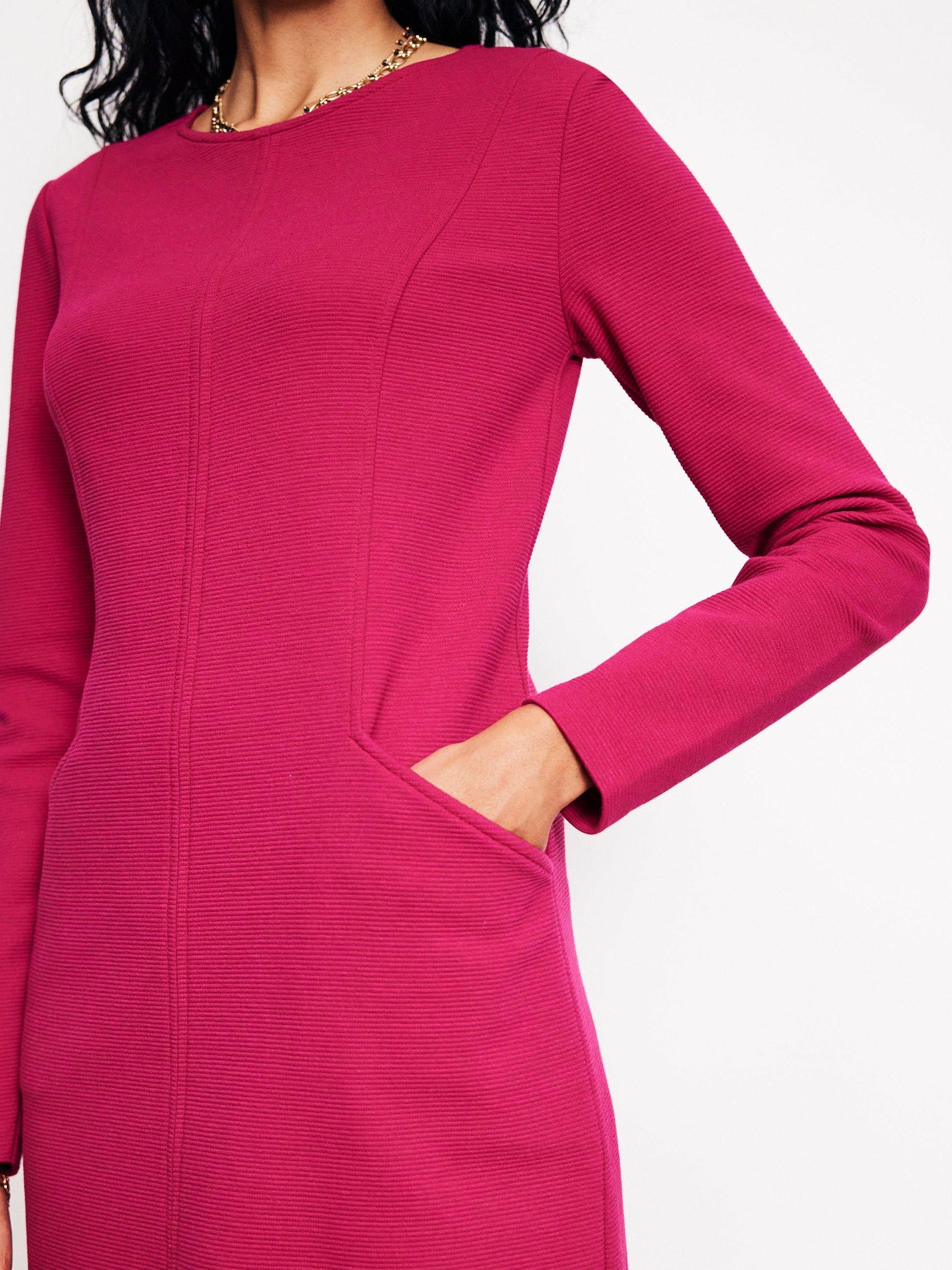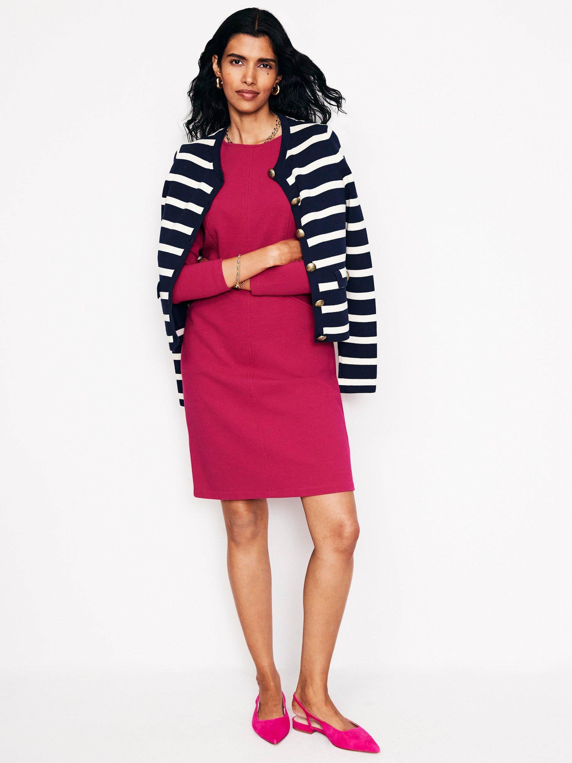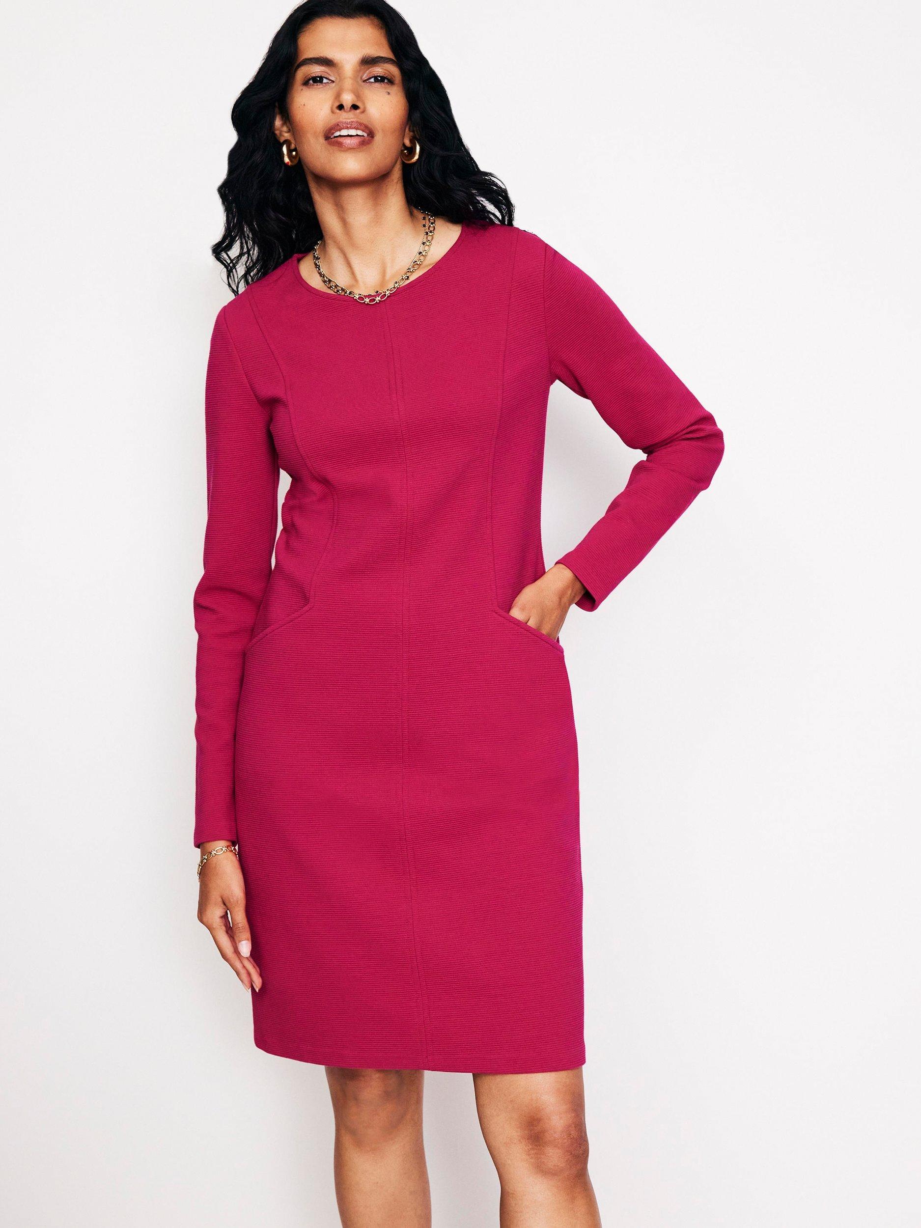 Looking for a simple shift dress that's both comfortable and elegant? Try this stretchy-and-stylish piece in a substantial Ottoman fabric that's ribbed horizontally for extra texture. This three-quarter-sleeved staple features defined seams for extra flattery.