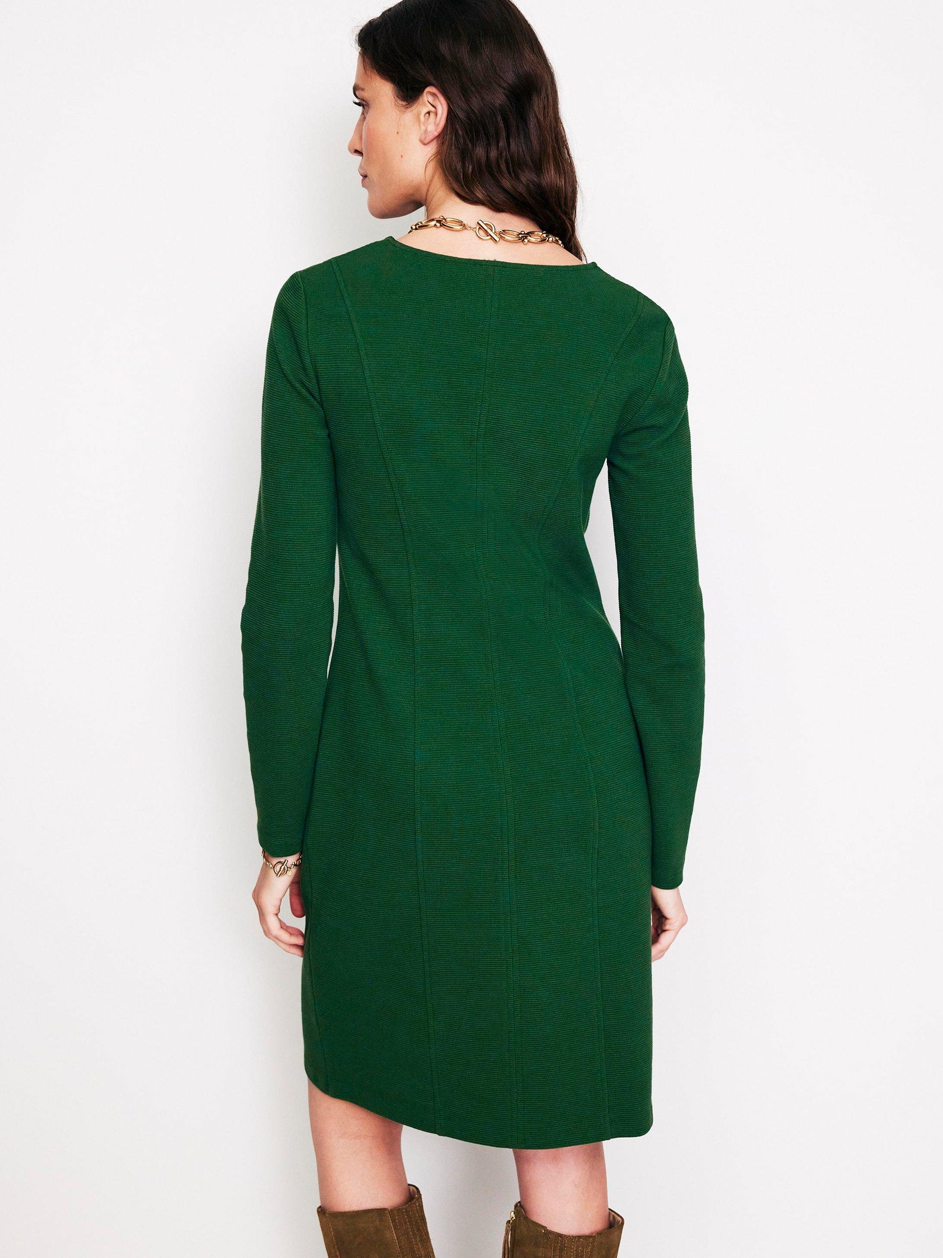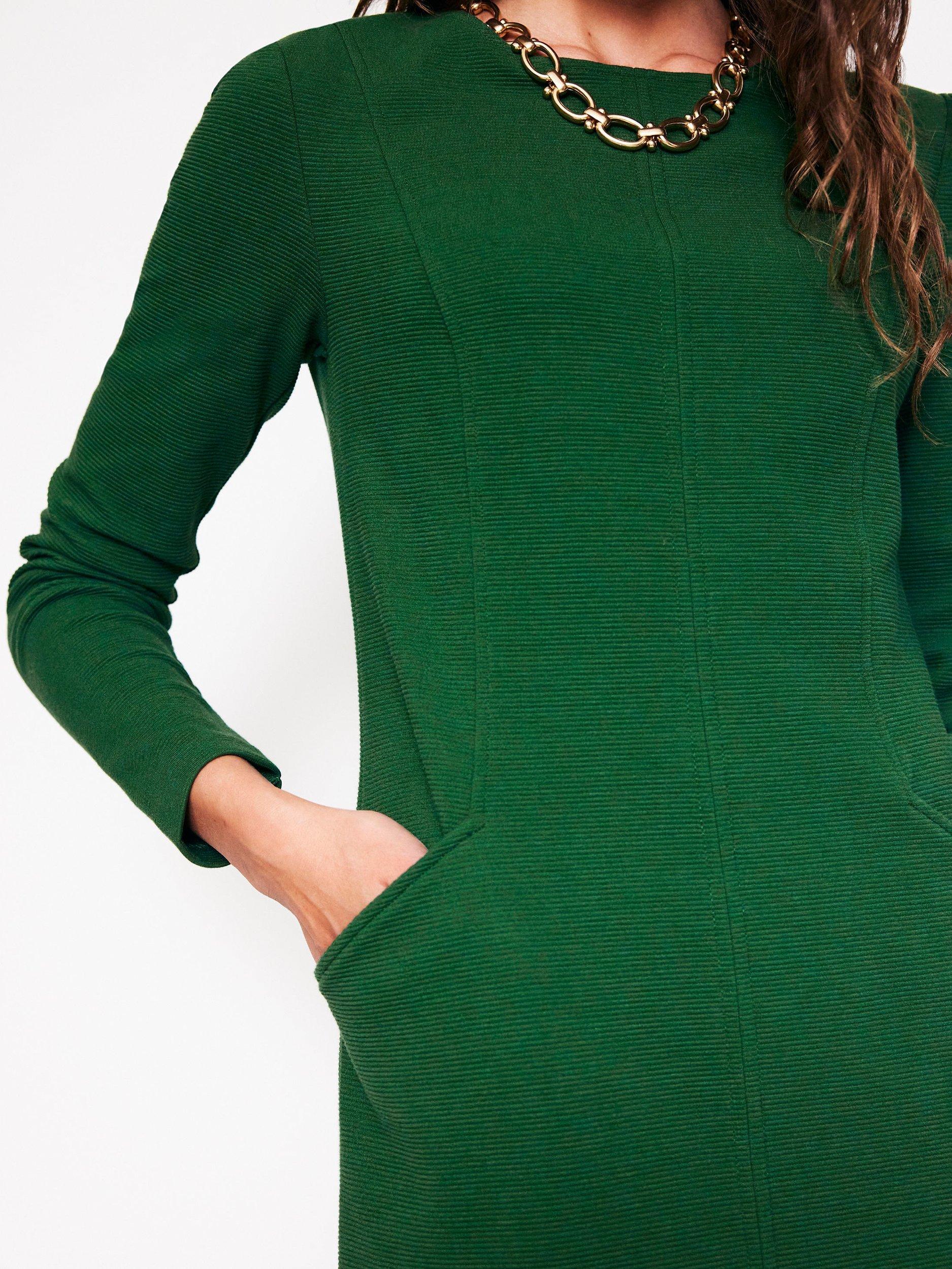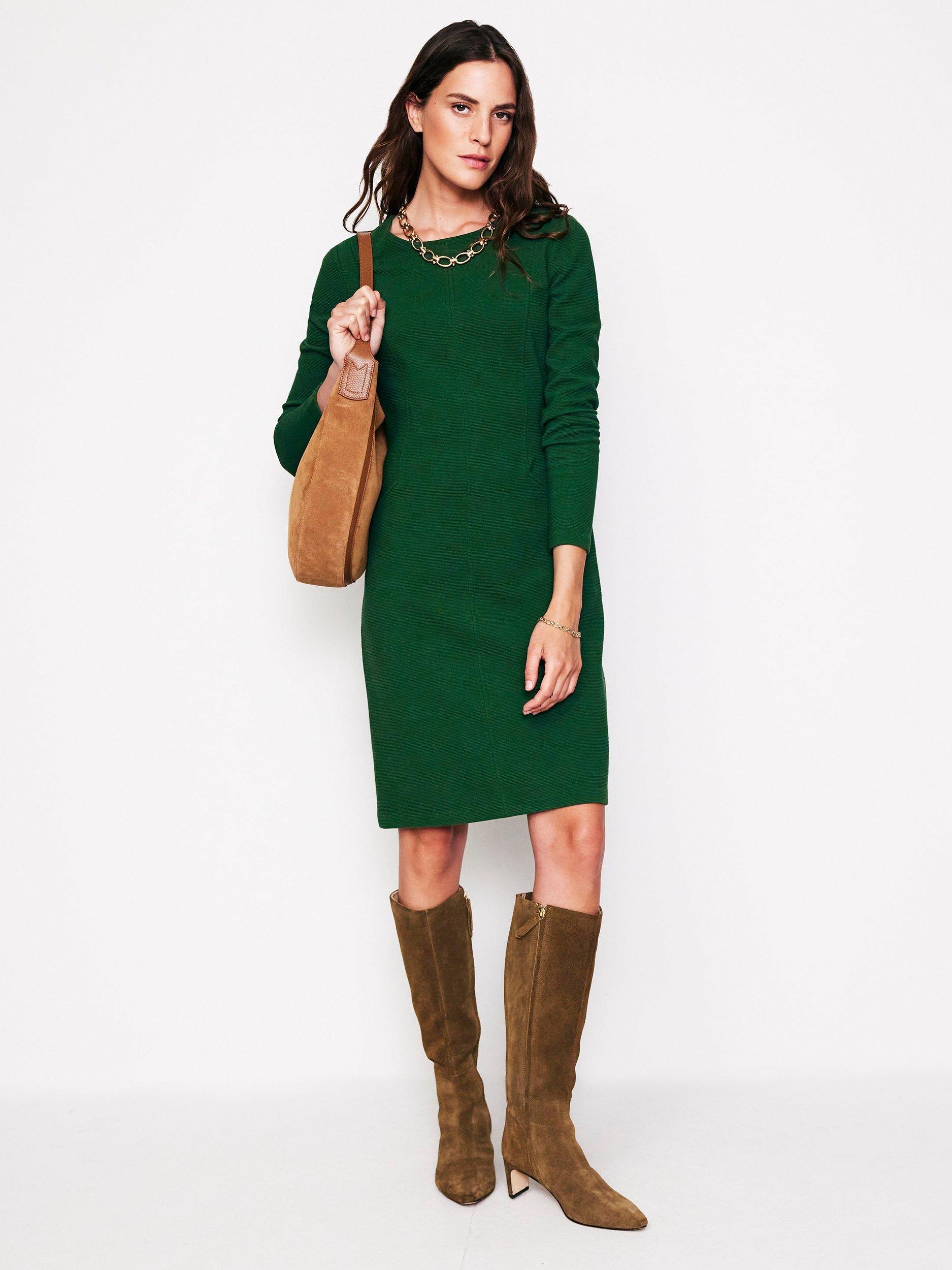 Looking for a simple shift dress that's both comfortable and elegant? Try this stretchy-and-stylish piece in a substantial Ottoman fabric that's ribbed horizontally for extra texture. This three-quarter-sleeved staple features defined seams for extra flattery.