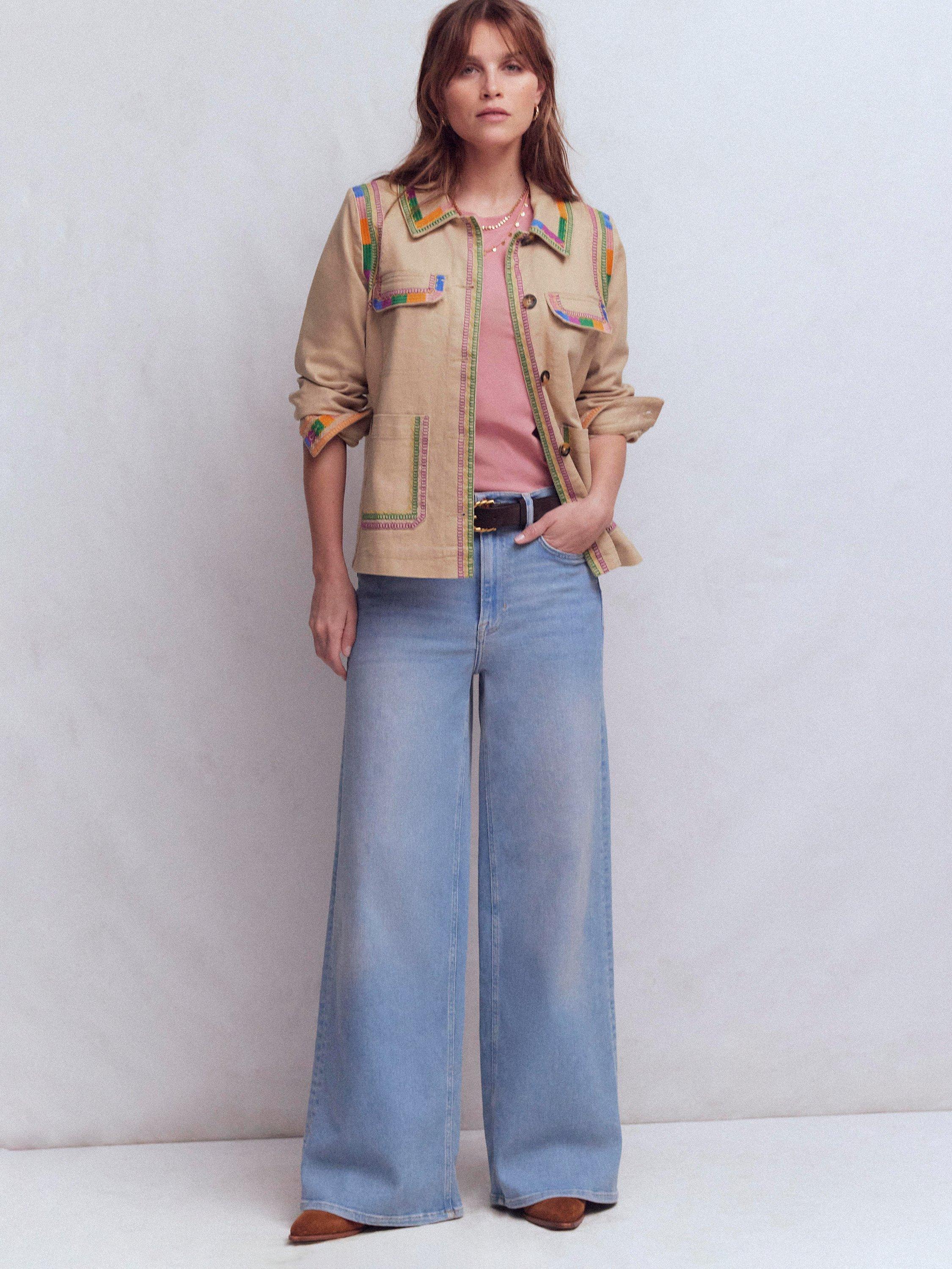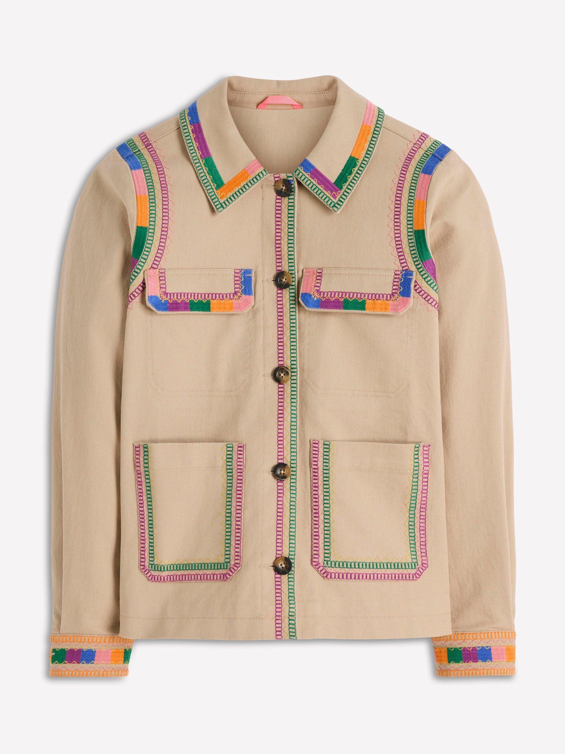 How to update a classic utility jacket for spring? By adding embroidery in bright colours. With all the pockets you'd expect, it's lightweight and will pair well with jeans. Banish your heavy coats and puffers now.