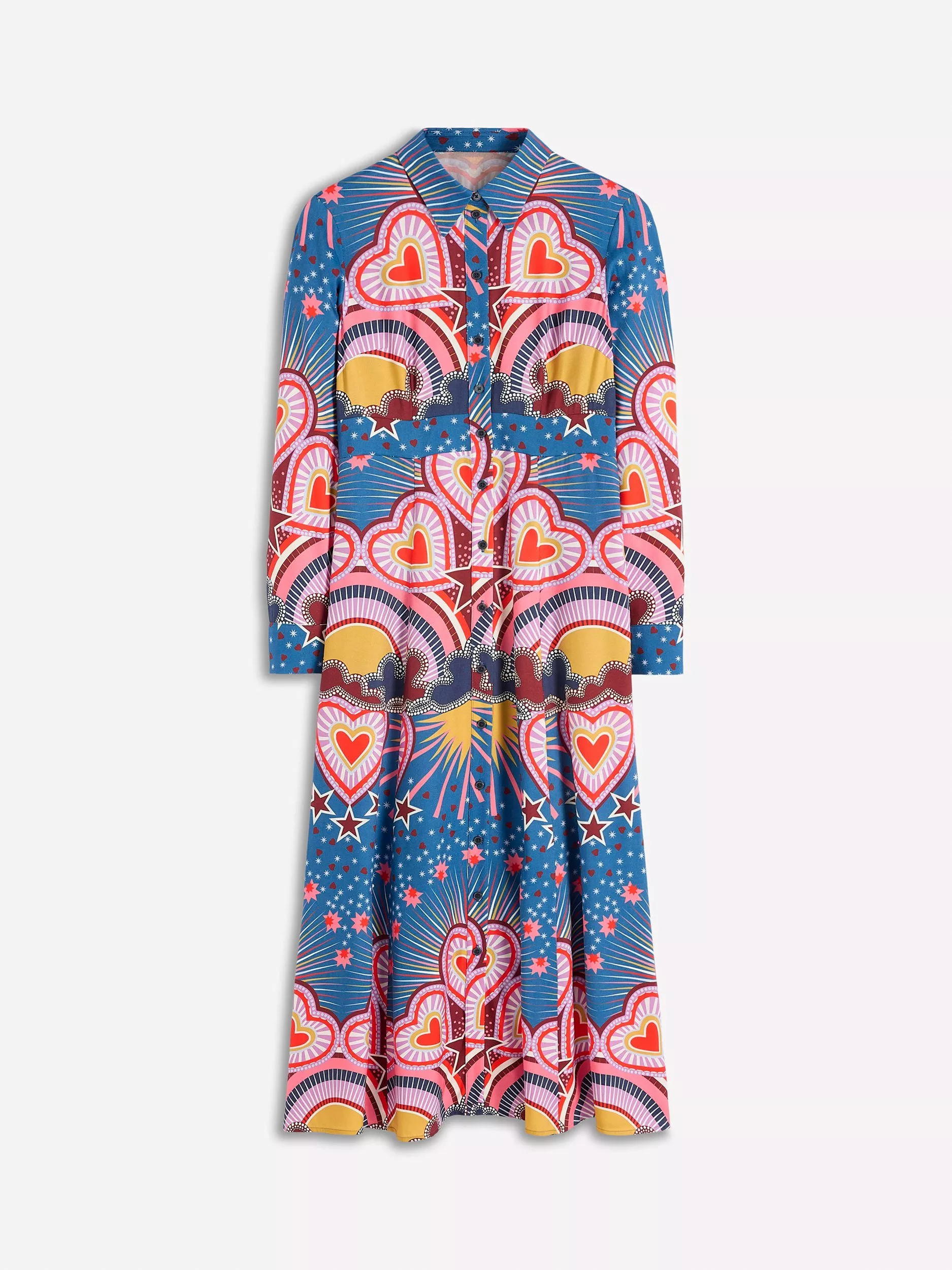 Make a winter style statement with this fabulous 100% cotton shirt dress. The maxi length, colourful print and empire waistline will help reel in oodles compliments at brunch with the girls.