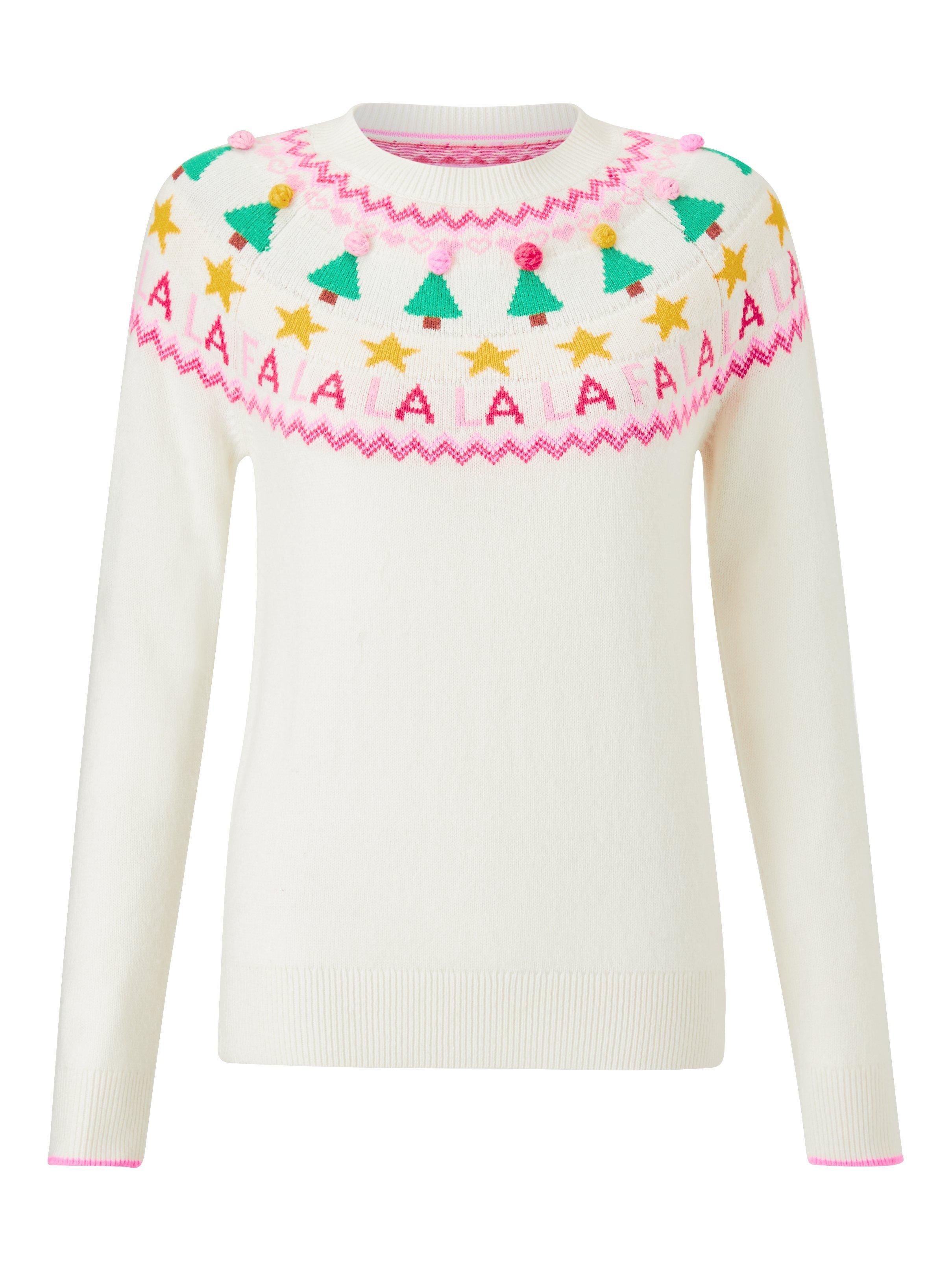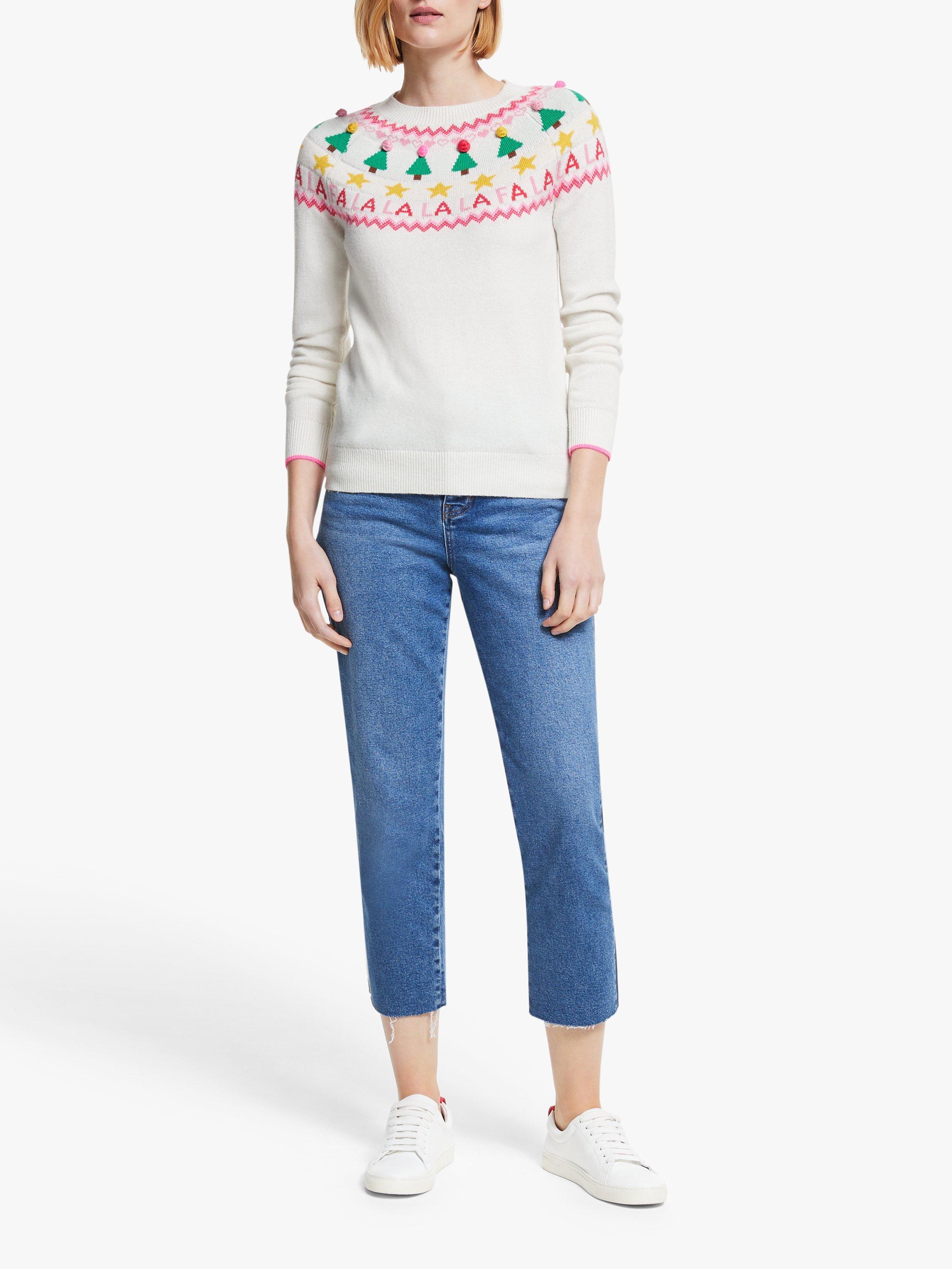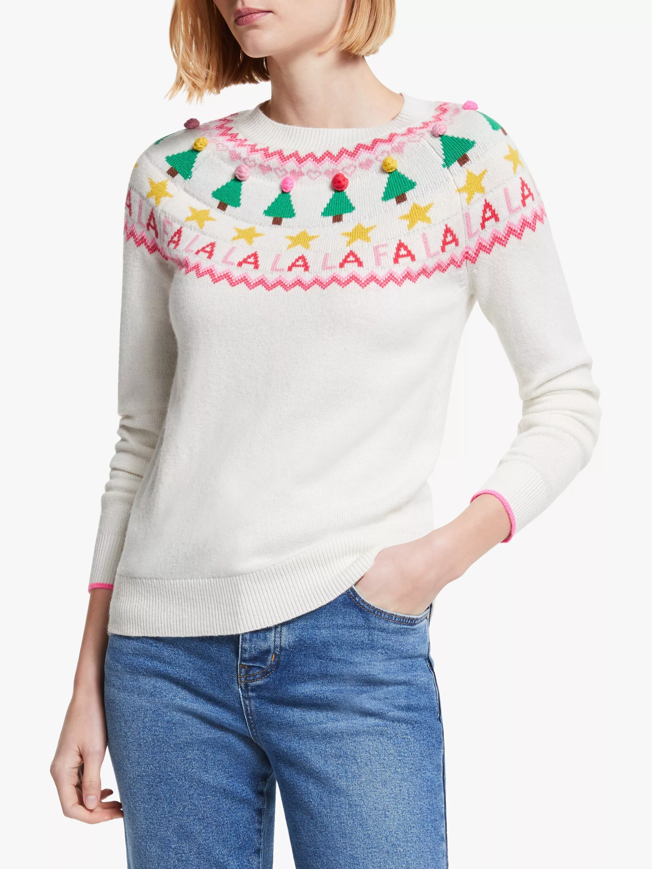 The traditional Fair Isle pattern gets a festive update with this jumper from Boden. Featuring Christmas trees with multicoloured pop poms, this knit has a soft, cosy feel thanks to the fluffy alpaca fibres and wool-blend composition. Detailed with contrast trims at the cuffs, wear yours with jeans and ankle boots for cheerful look to get you in the festive mood.