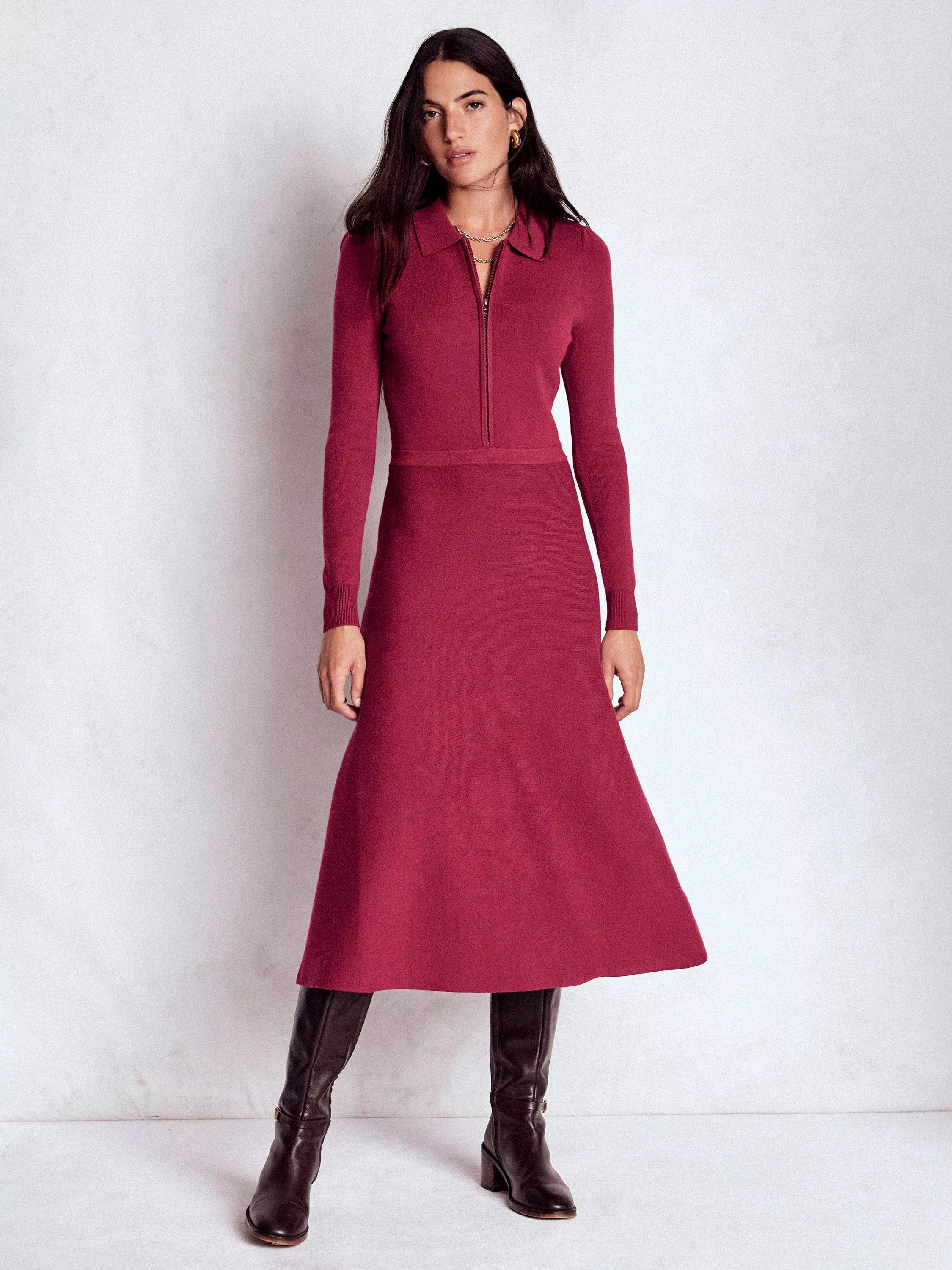 With the zip-front and knitted fabric, Fiona is an effortless styling solution on busy mornings. Pair with boots and feel like the queen of your own castle all day.