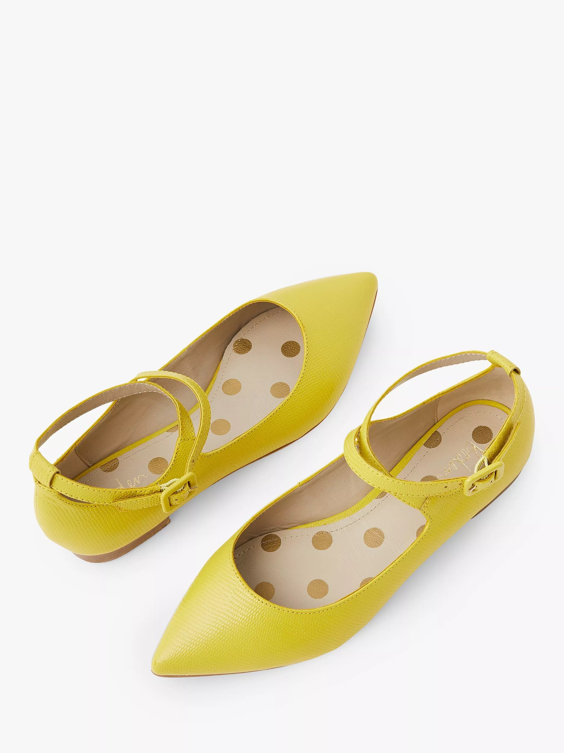 Pointed toes and wrap-around ankle straps bring elegance to these classic flats. Leather-covered buckles are a refined touch – and they're easy to adjust for the perfect fit. Padded insoles will keep you light on your feet all day.
