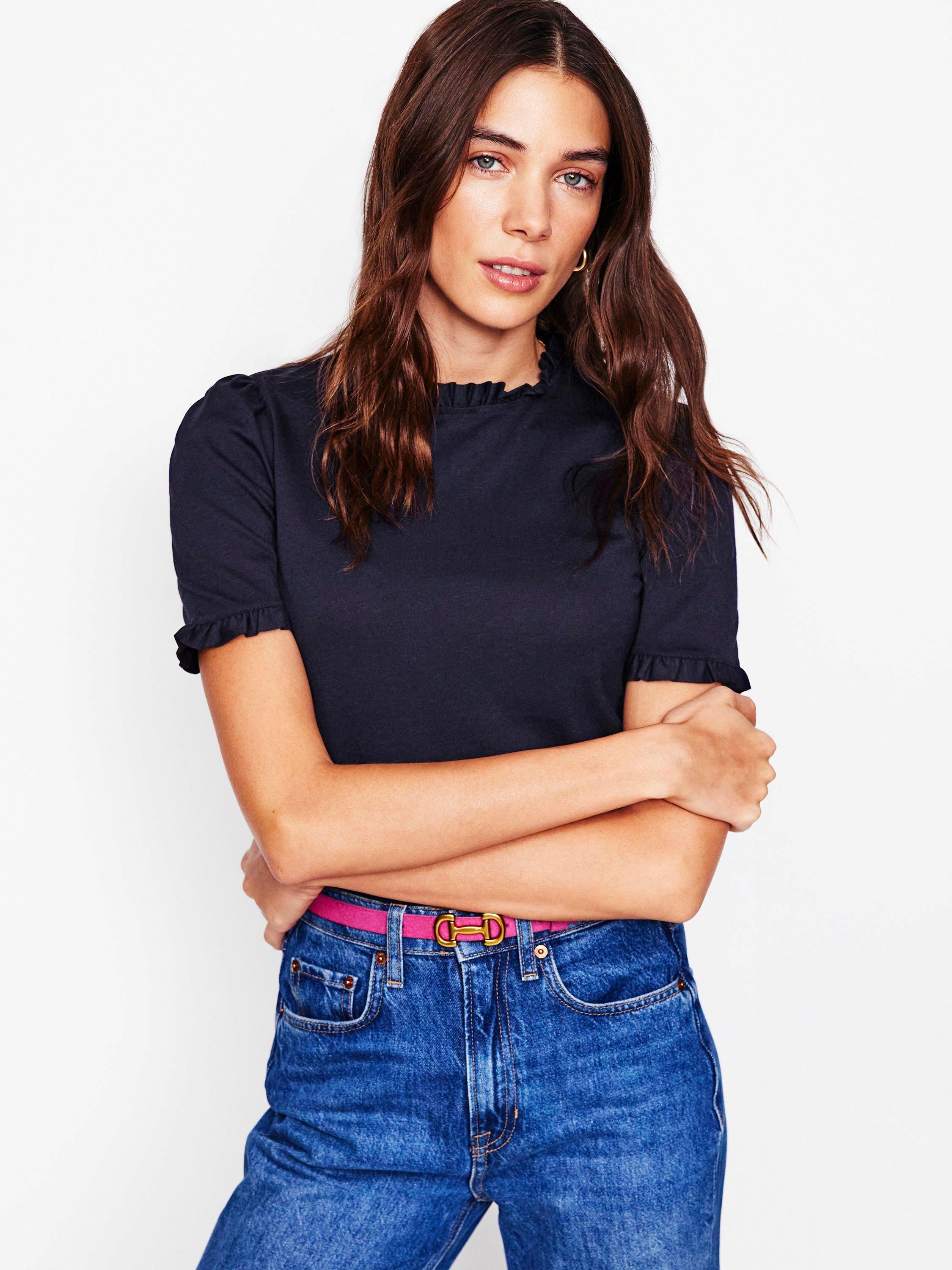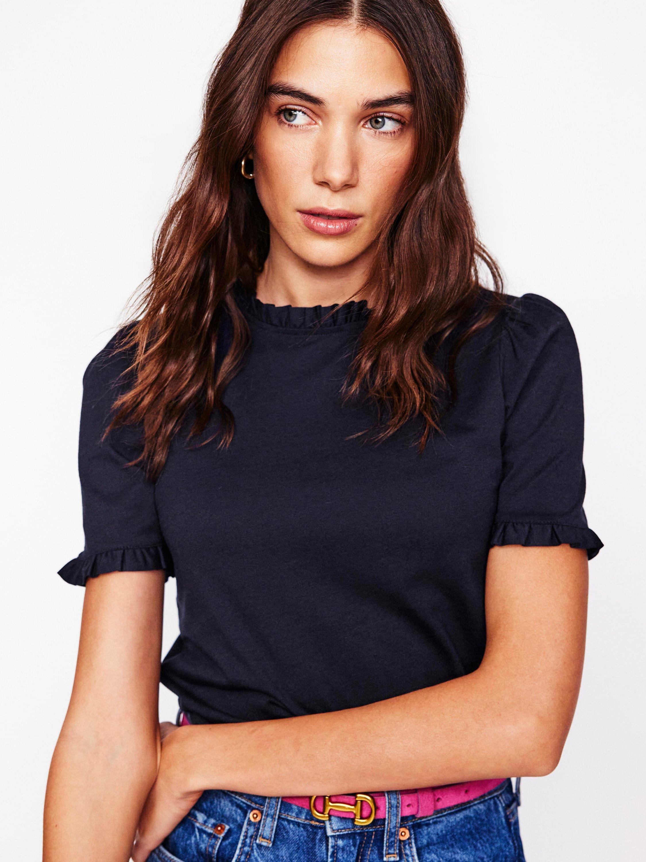 A simple cotton tee with a point of difference – this one has frilled trims and short puffed sleeves. Perfect for when you want to throw on something easy but still look put-together.