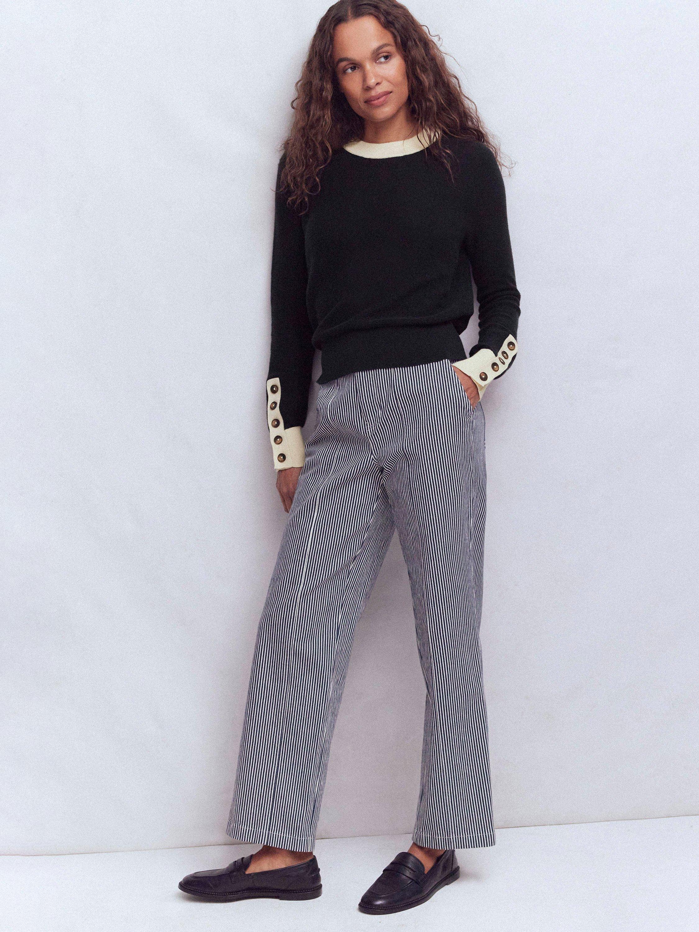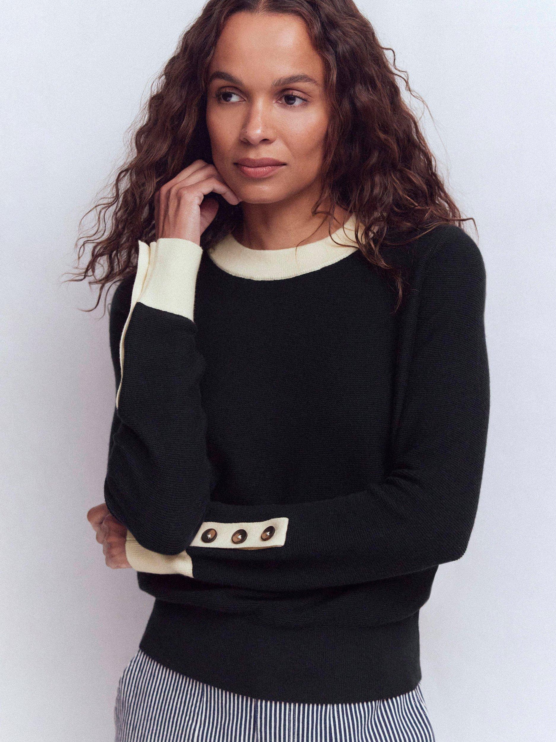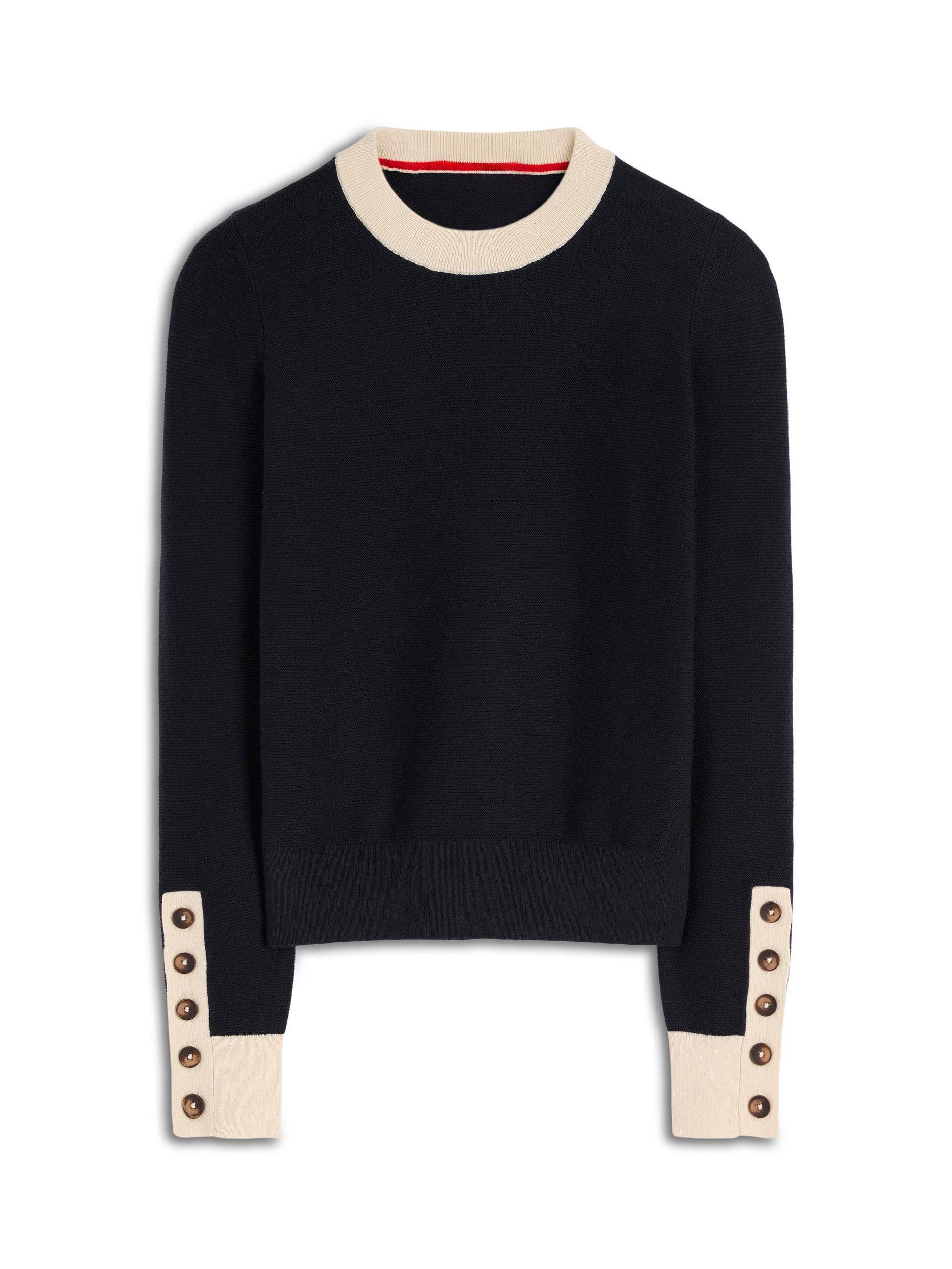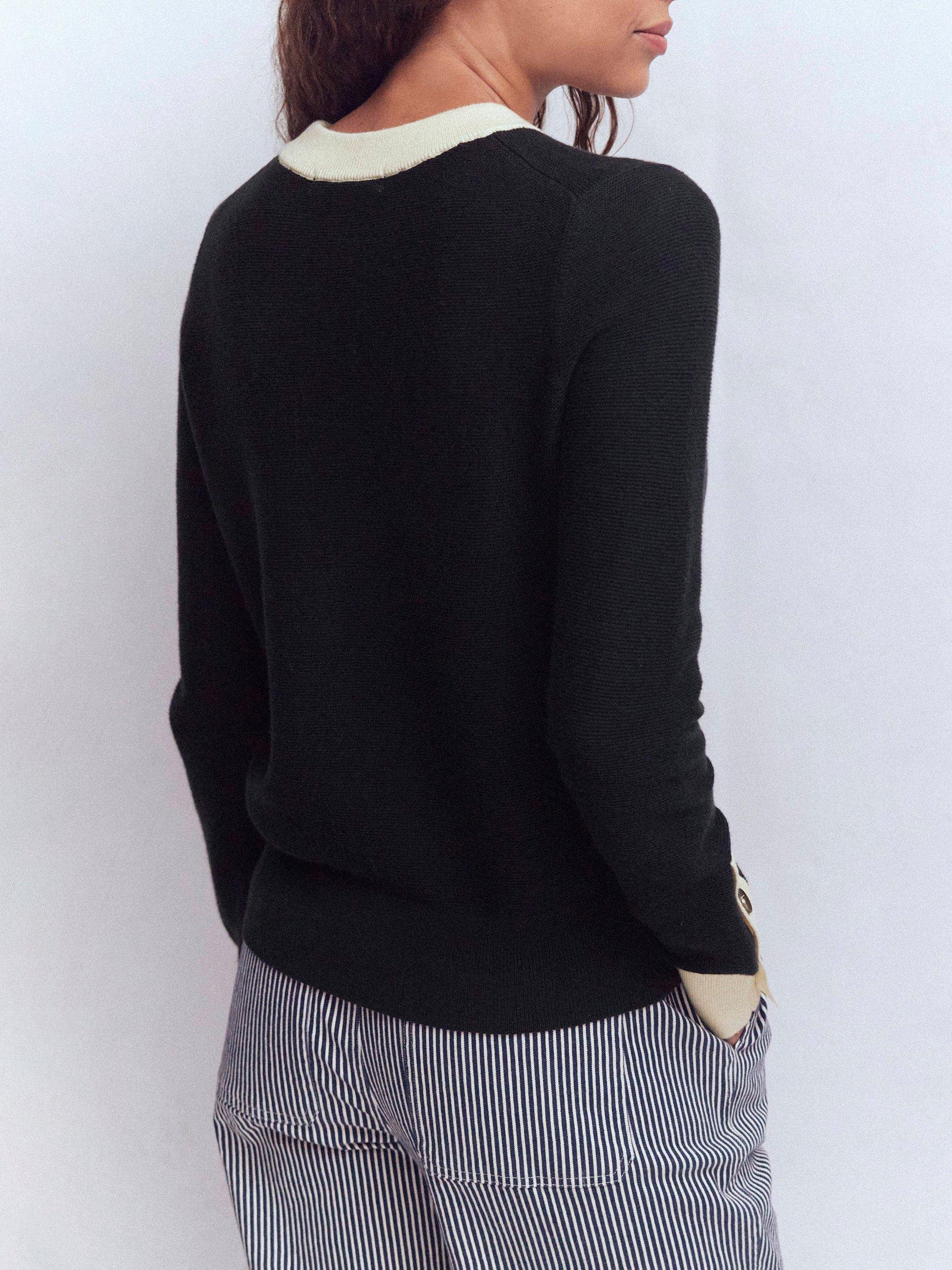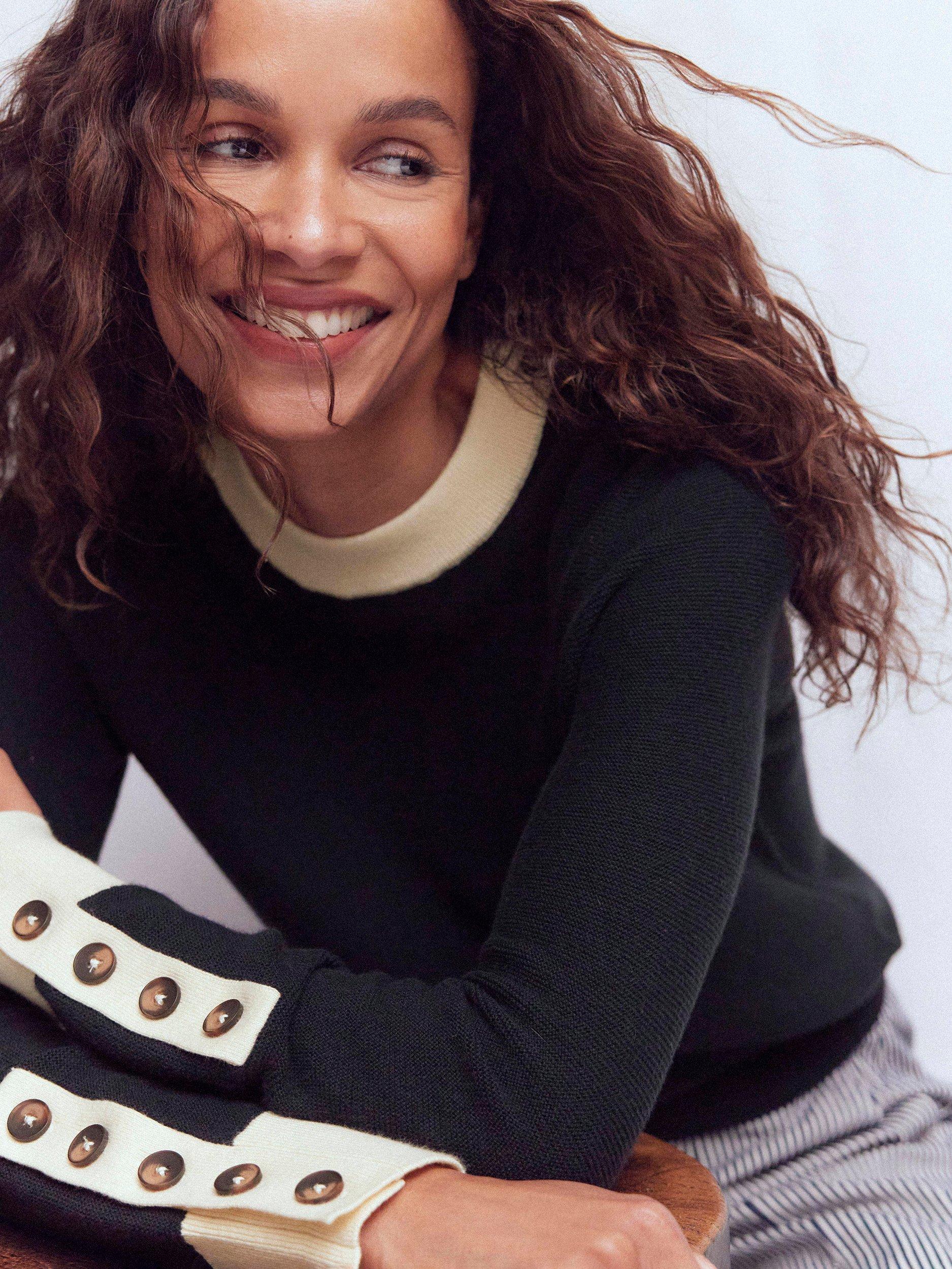 There’s nothing like clever colourblocking to elevate your knitwear. This must-have knit with contrast neckline and cuffs is crafted from cotton with a touch of cashmere for extra softness. Pair it with jeans as an effortless weekend layer.