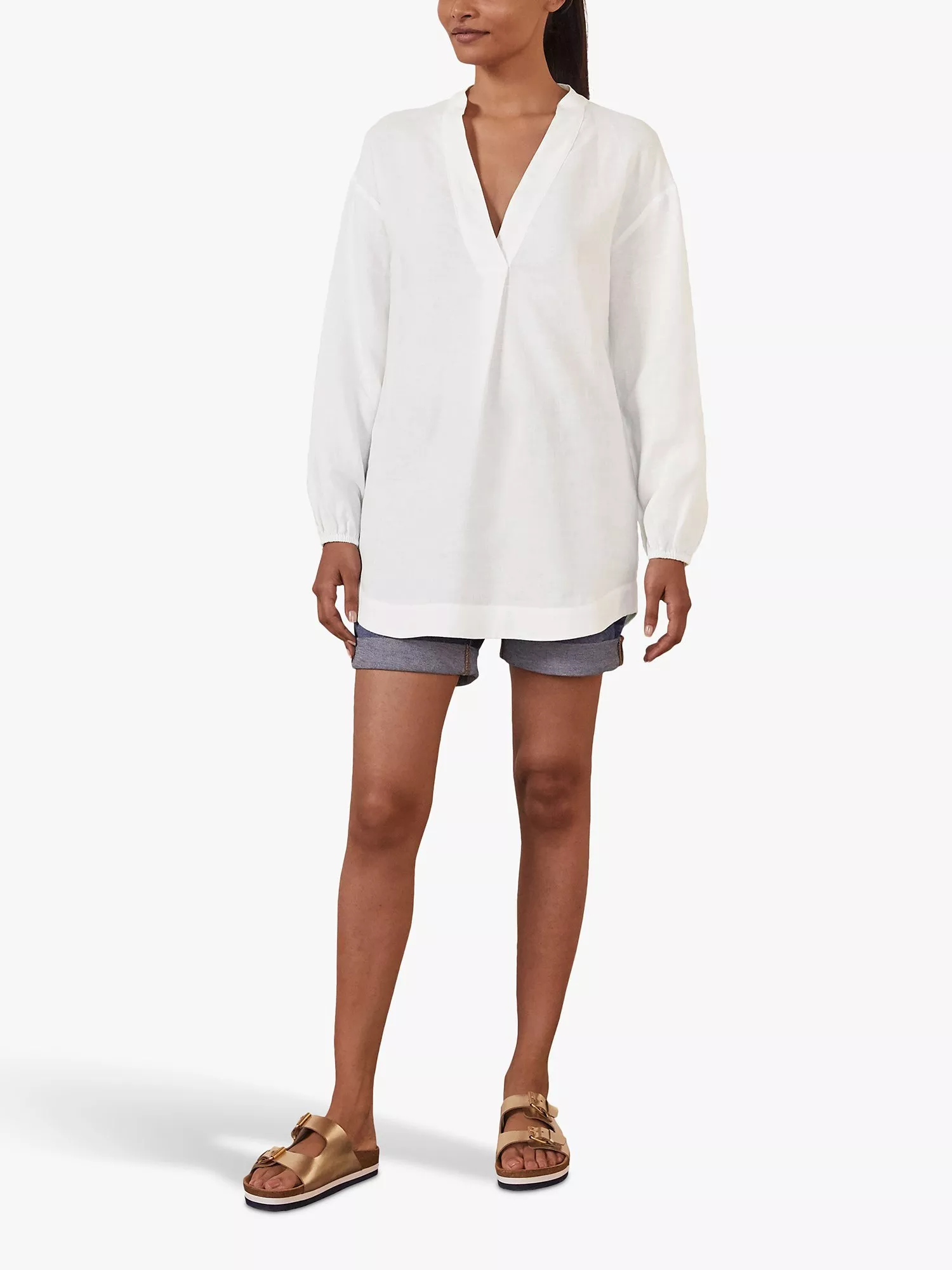 Framed with a wide v-neckline, it is lightweight and breathable in pure linen and is ideal for relaxed daytime wear.