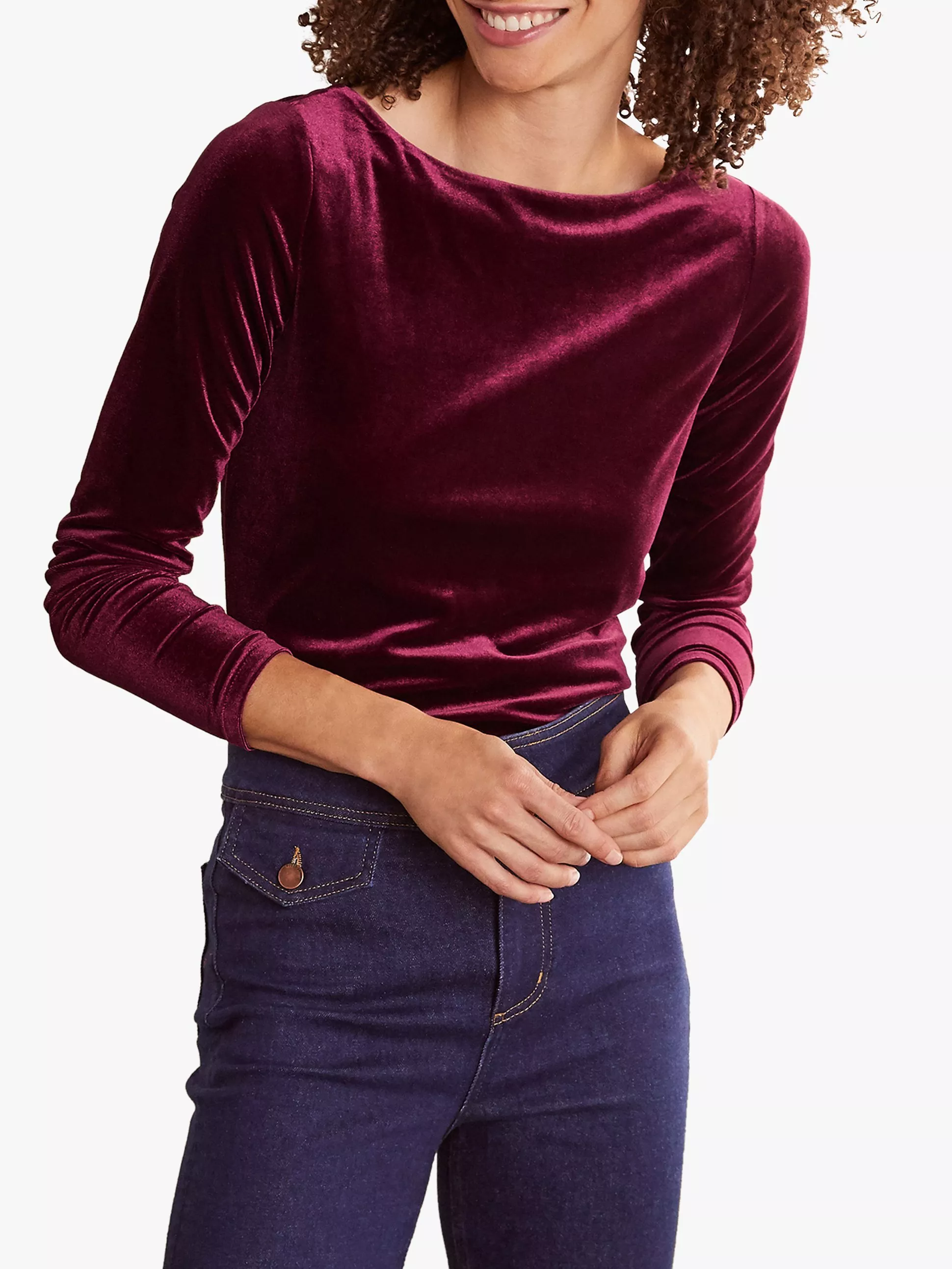 With its semi-fitted shape, ultra-flattering boat neck and long sleeves, this top from Boden is a sure-fire winner in the understated-elegance stakes. Crafted from luxe jersey velvet that feels soft on your skin, it also has a hint of stretch for comfort.