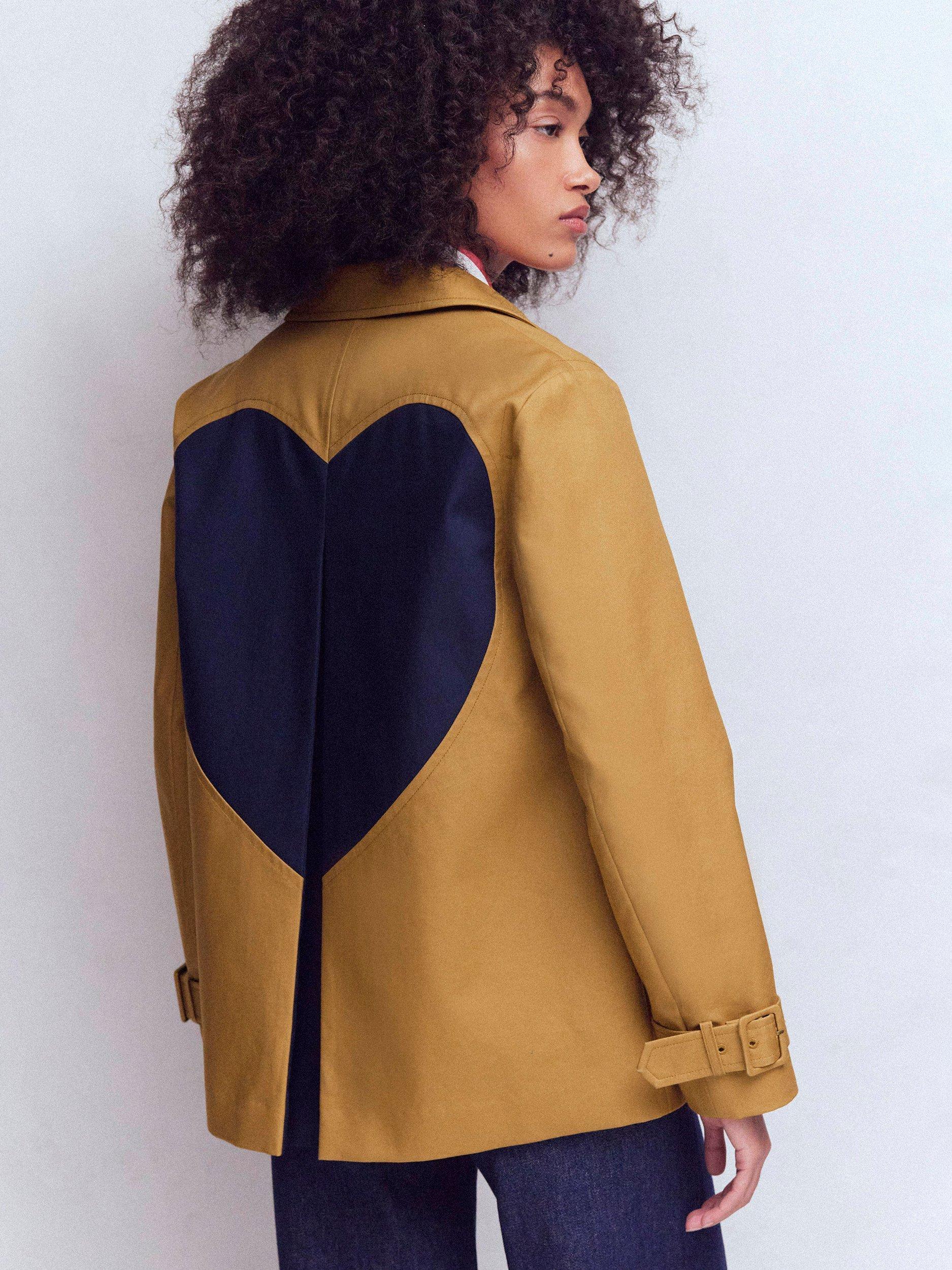 Meet the swing-style trench coat you’ll soon be wearing everywhere from work commutes to Sunday strolls and brunch with girlfriends. The surprise touch? Check out the statement heart design on the back. Walking away has never looked so stylish.