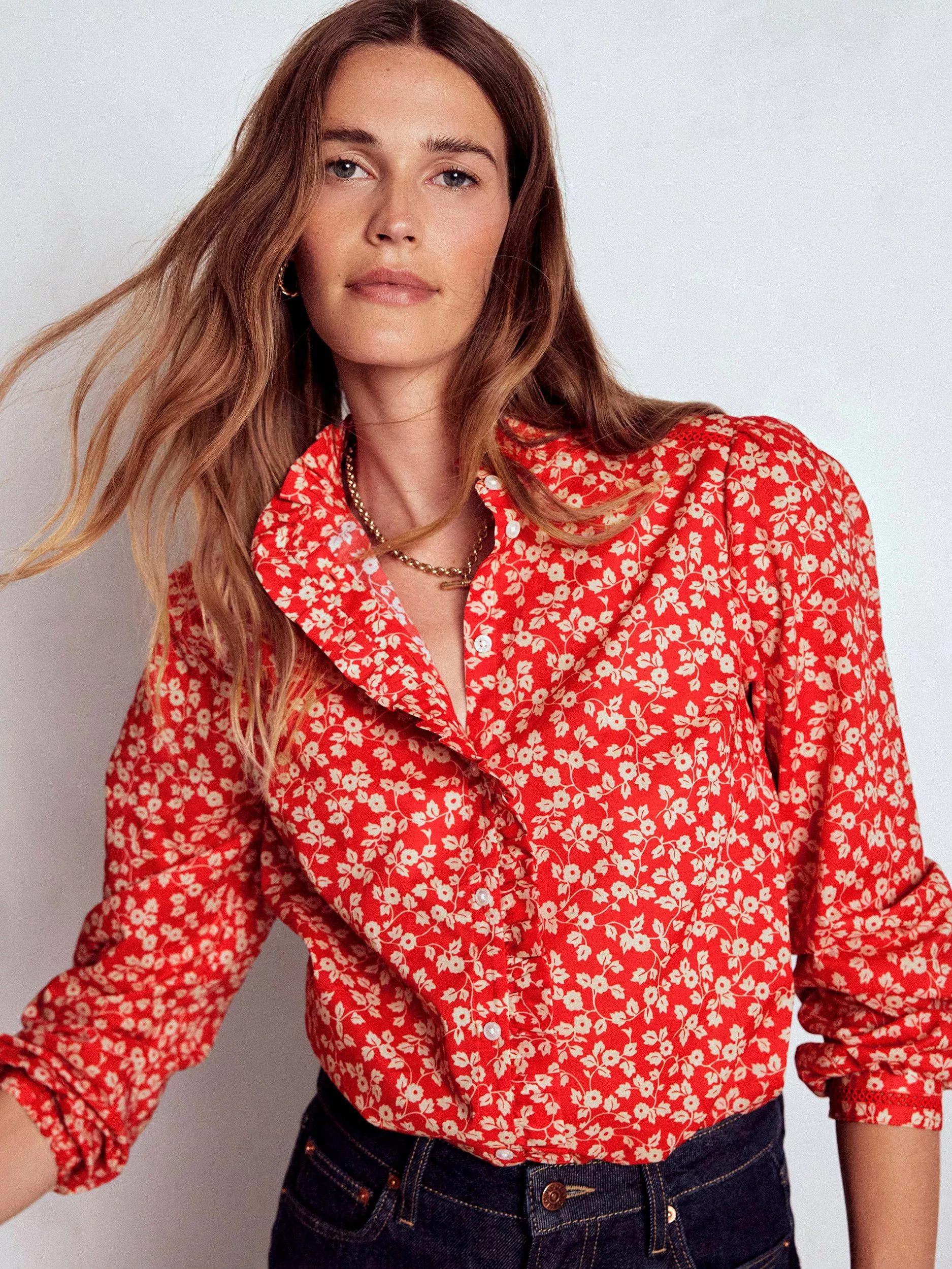 Updating your collection, this shirt by Boden will instantly lift your mood with its bloom-filled floral print. Structured with a collar and long sleeves, it is light and breathable in cotton and is an easy daytime option.
