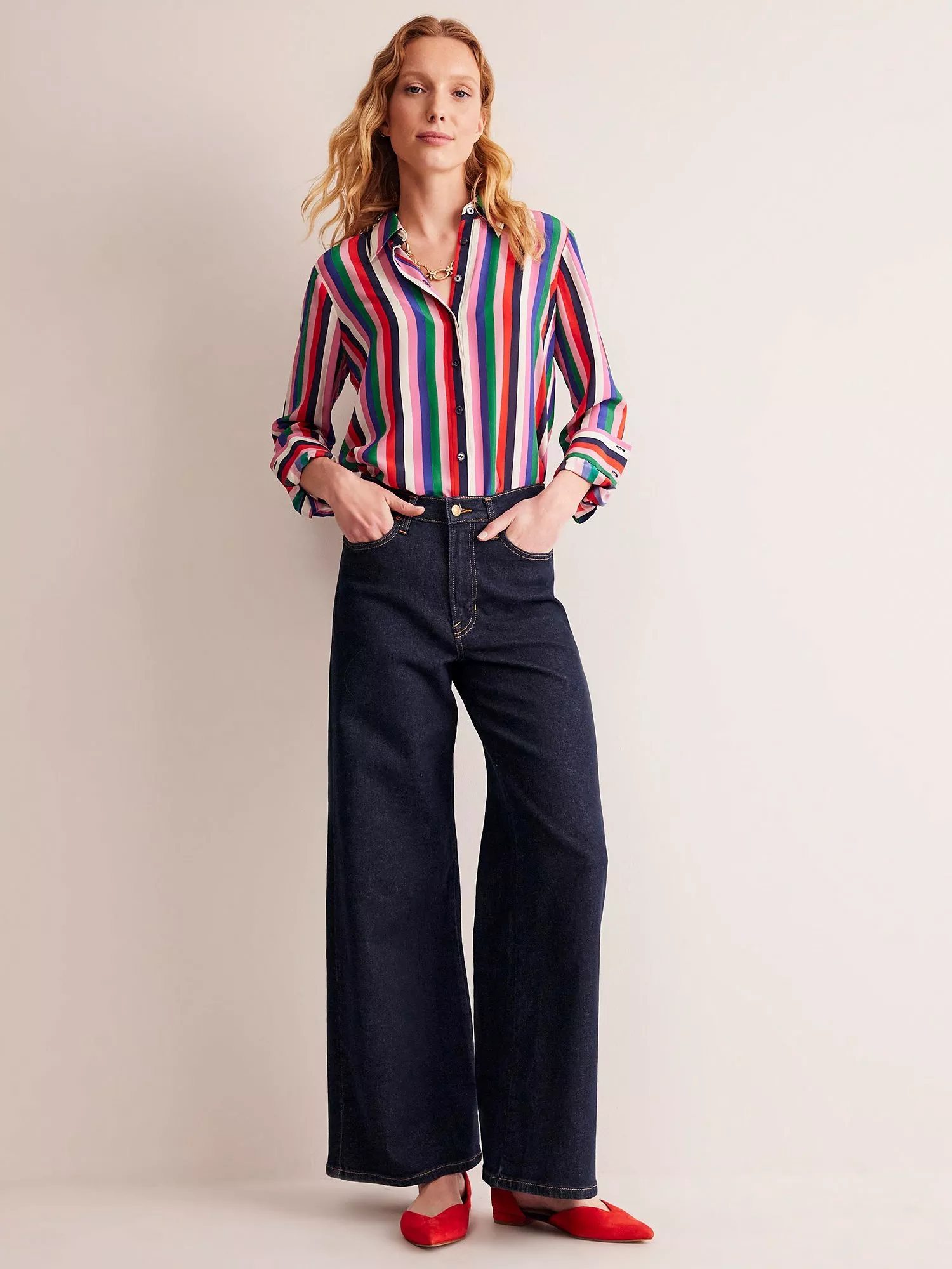 Woven with just the right amount of stretch, these high-rise, wide-leg jeans have a relaxed feel - the added ease means a little more room to move. For a more fitted look, we recommend sizing down.