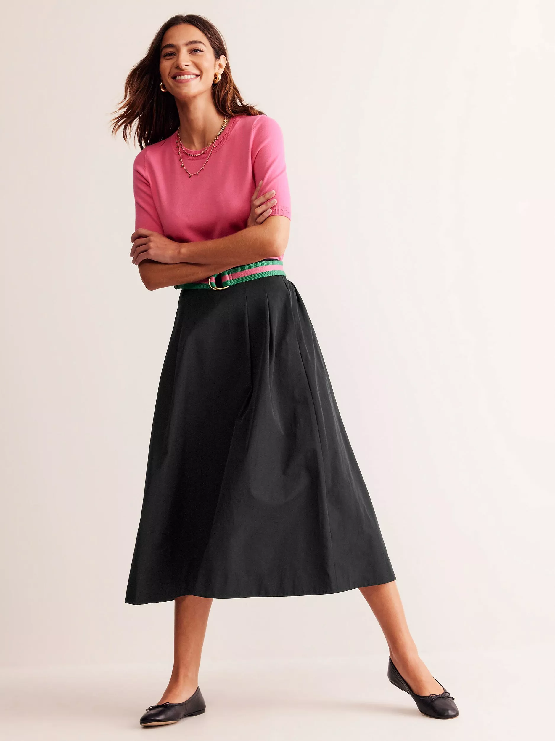 Voluminous and versatile in equal measure, this skirt sits at a midi length. It's crafted from a lightweight taffeta fabric and finished with a pull-on waist and signature Boden side seam pockets.