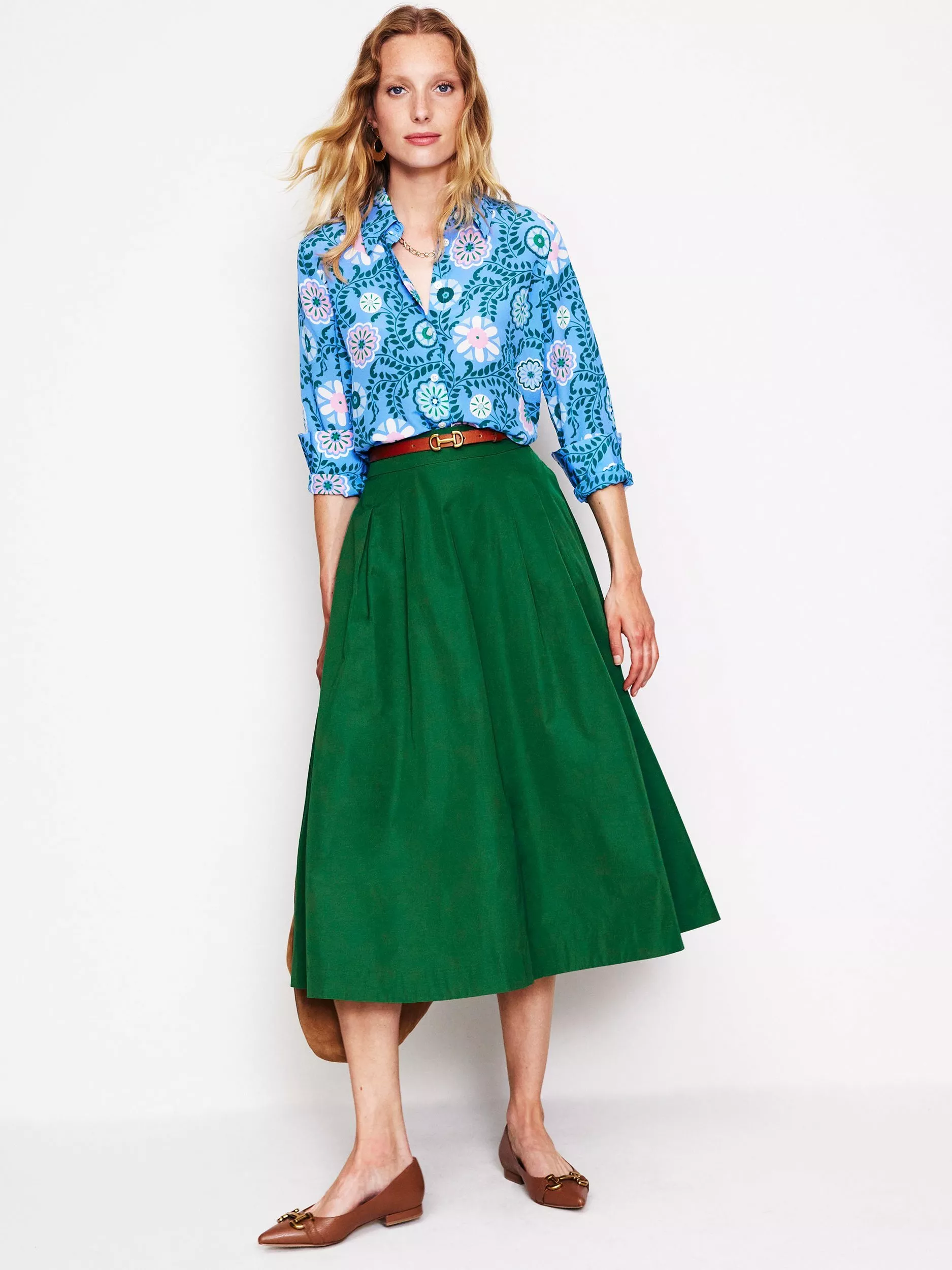 Voluminous and versatile in equal measure, this skirt sits at a midi length. It's crafted from a lightweight taffeta fabric and finished with a pull-on waist and signature Boden side seam pockets.