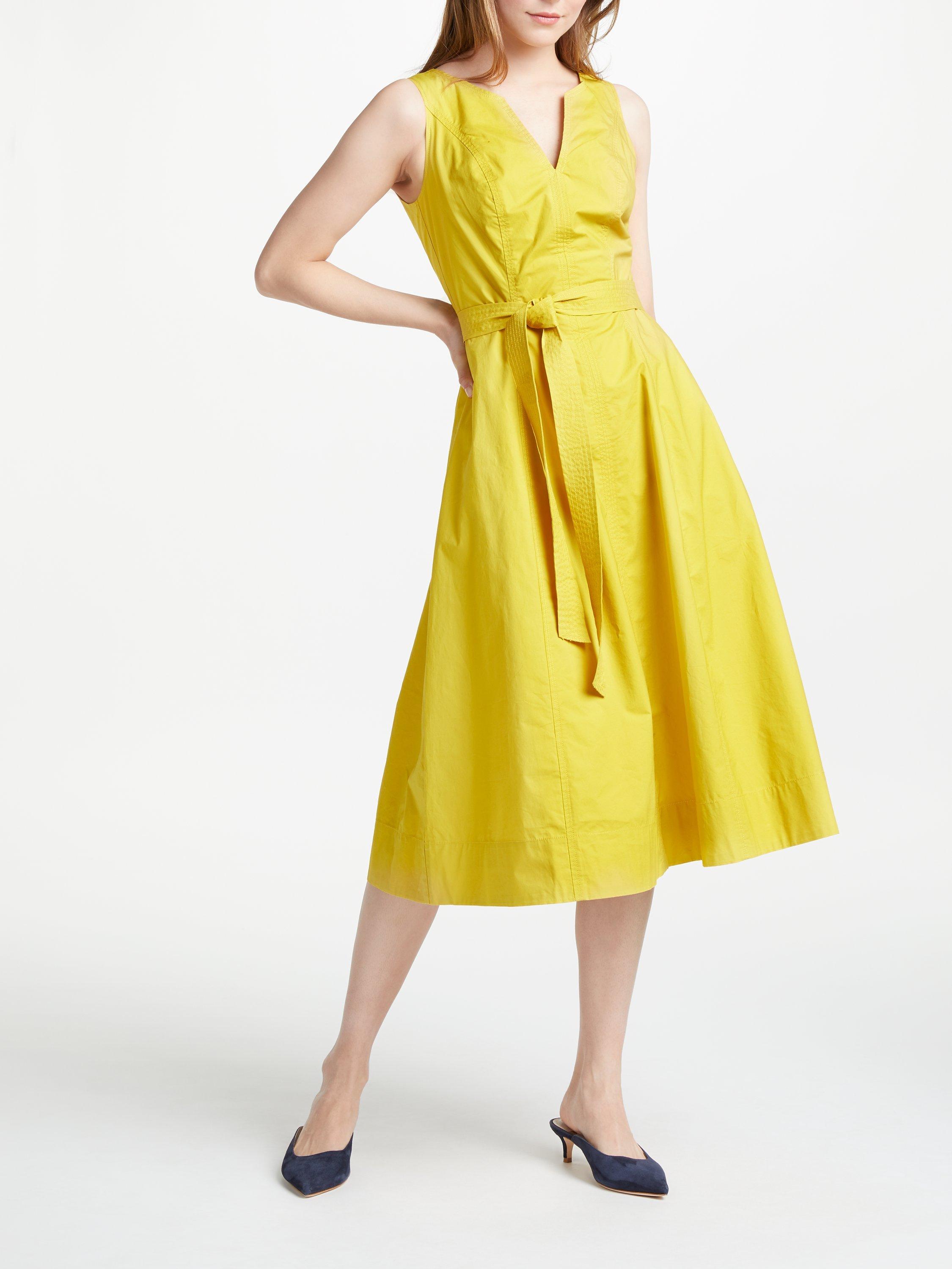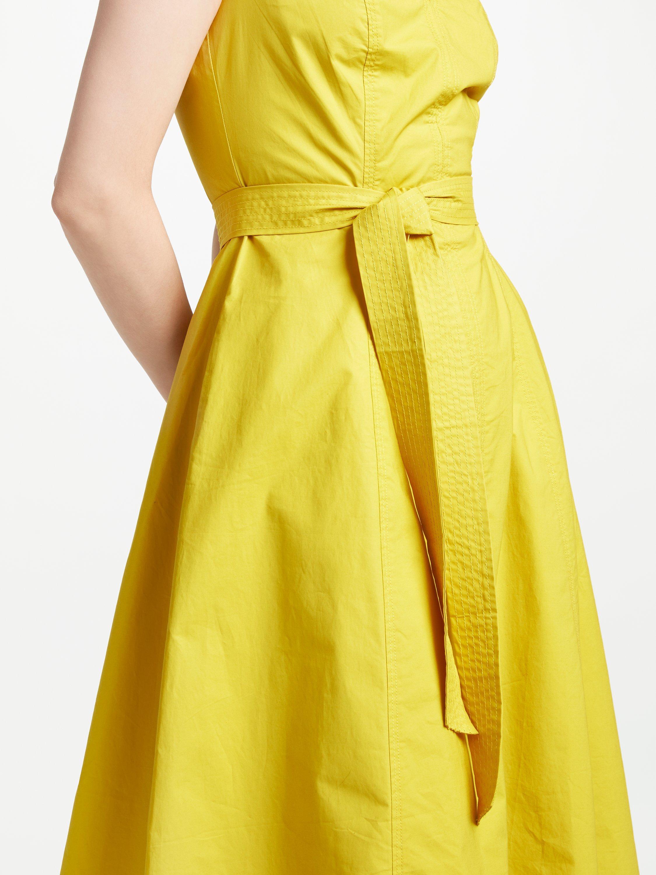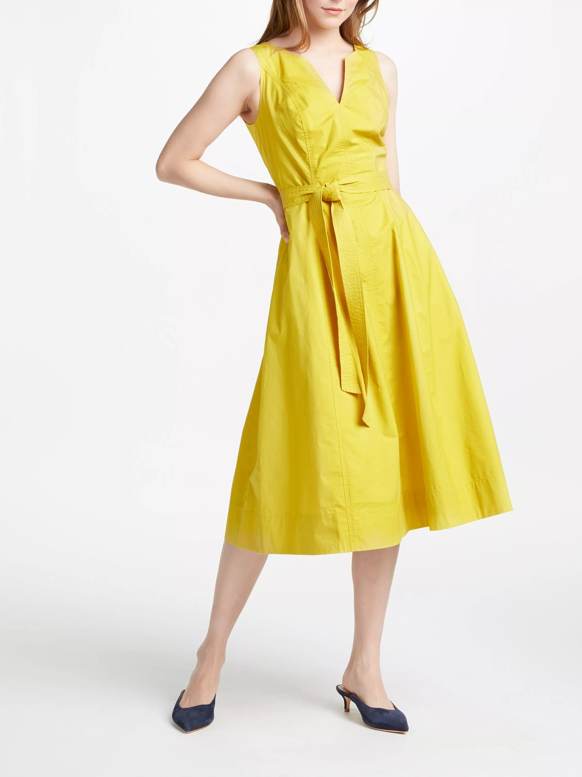 This fit and flare style dress is crafted from a smooth cotton fabric with a touch of stretch for the perfect and most comfortable fit. It features a V-insert at the neckline and a co-ordianting tie at the waist which effortlessly flatters the figure.