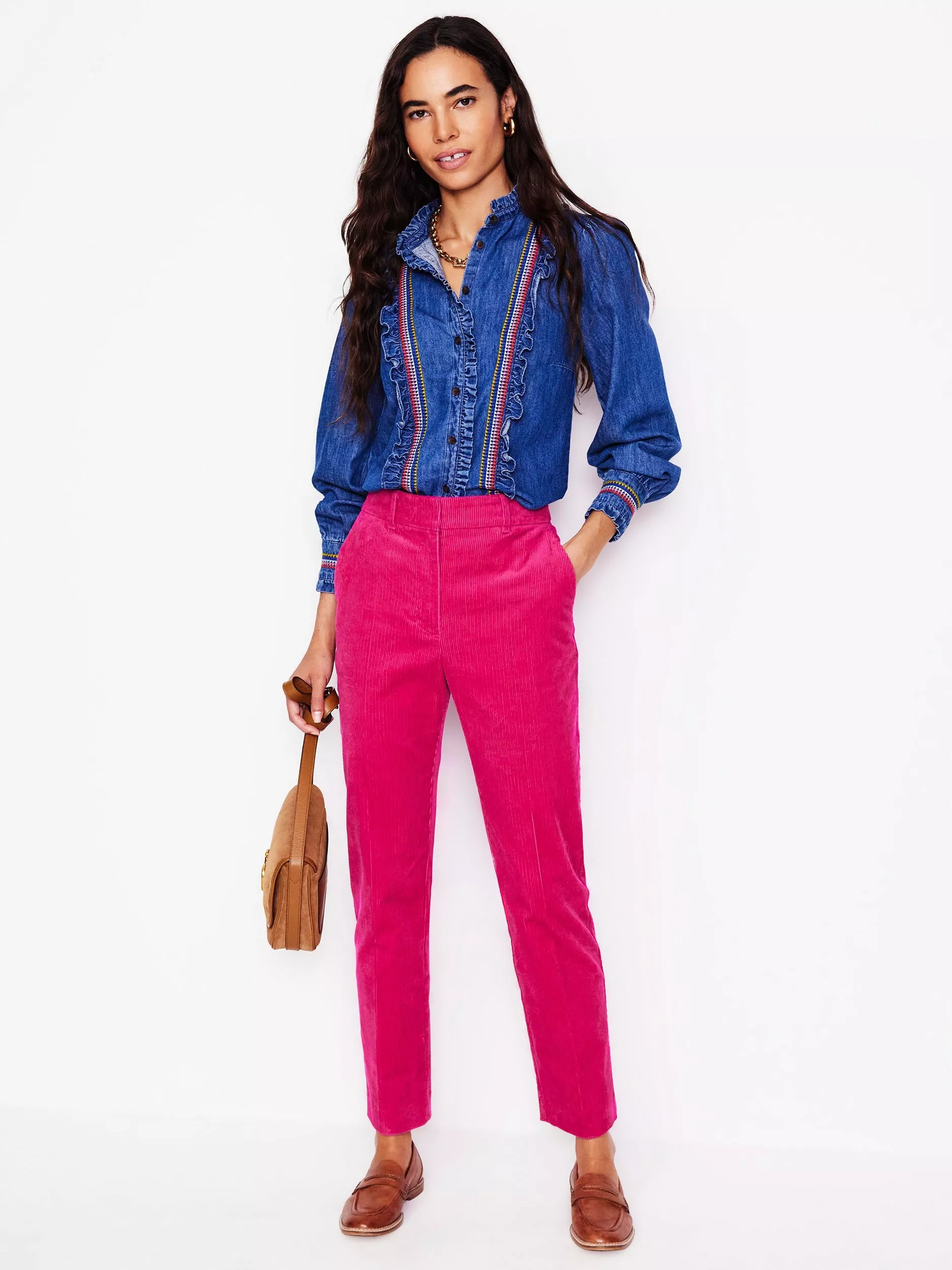Boden's Kew trousers are your classic corduroy style but with a more refined tailored shape. Designed to sit on your natural waist, they taper gently down the legs to ankle-skimming hems and are finished with a selection of pockets for your wares.