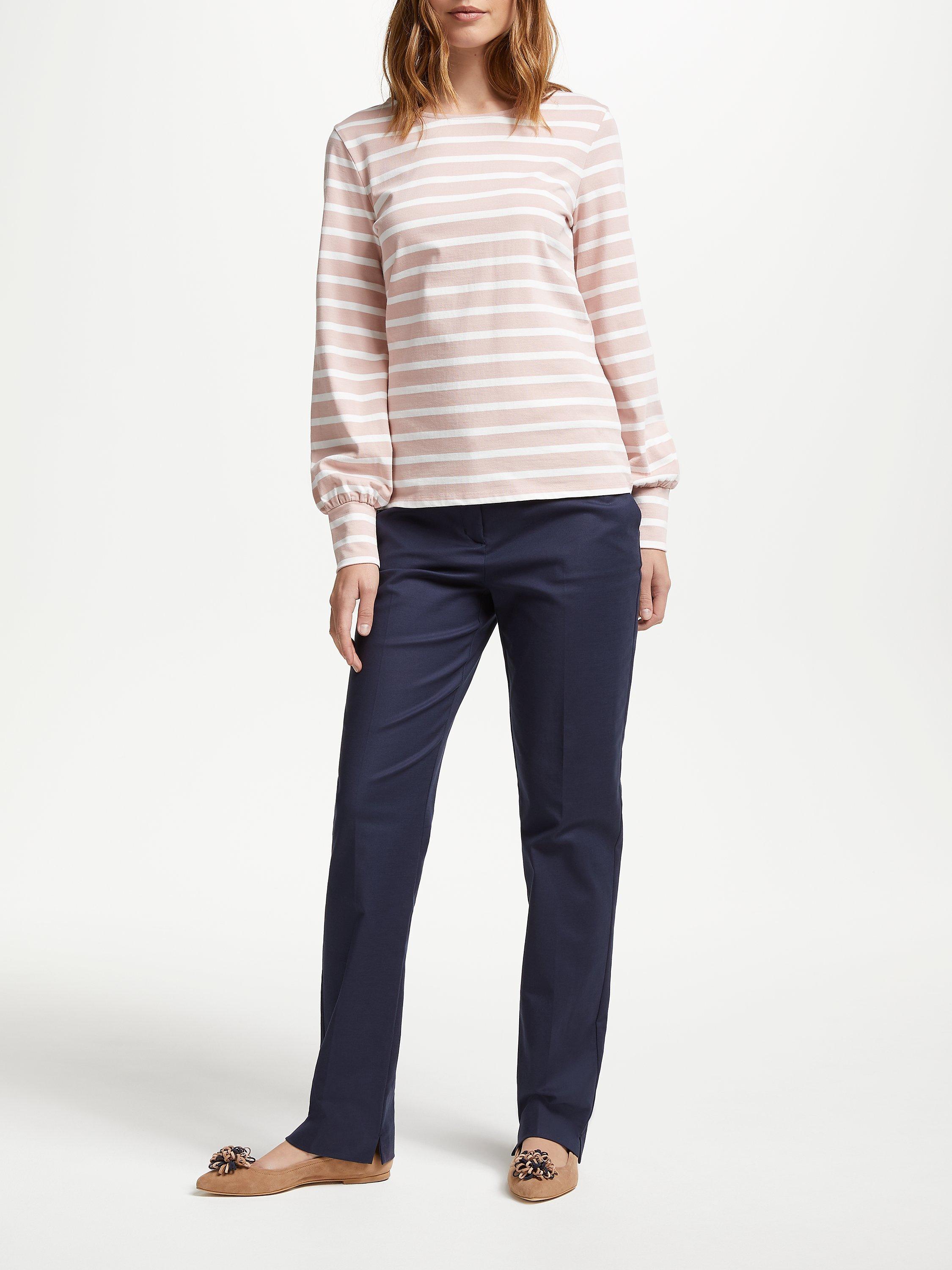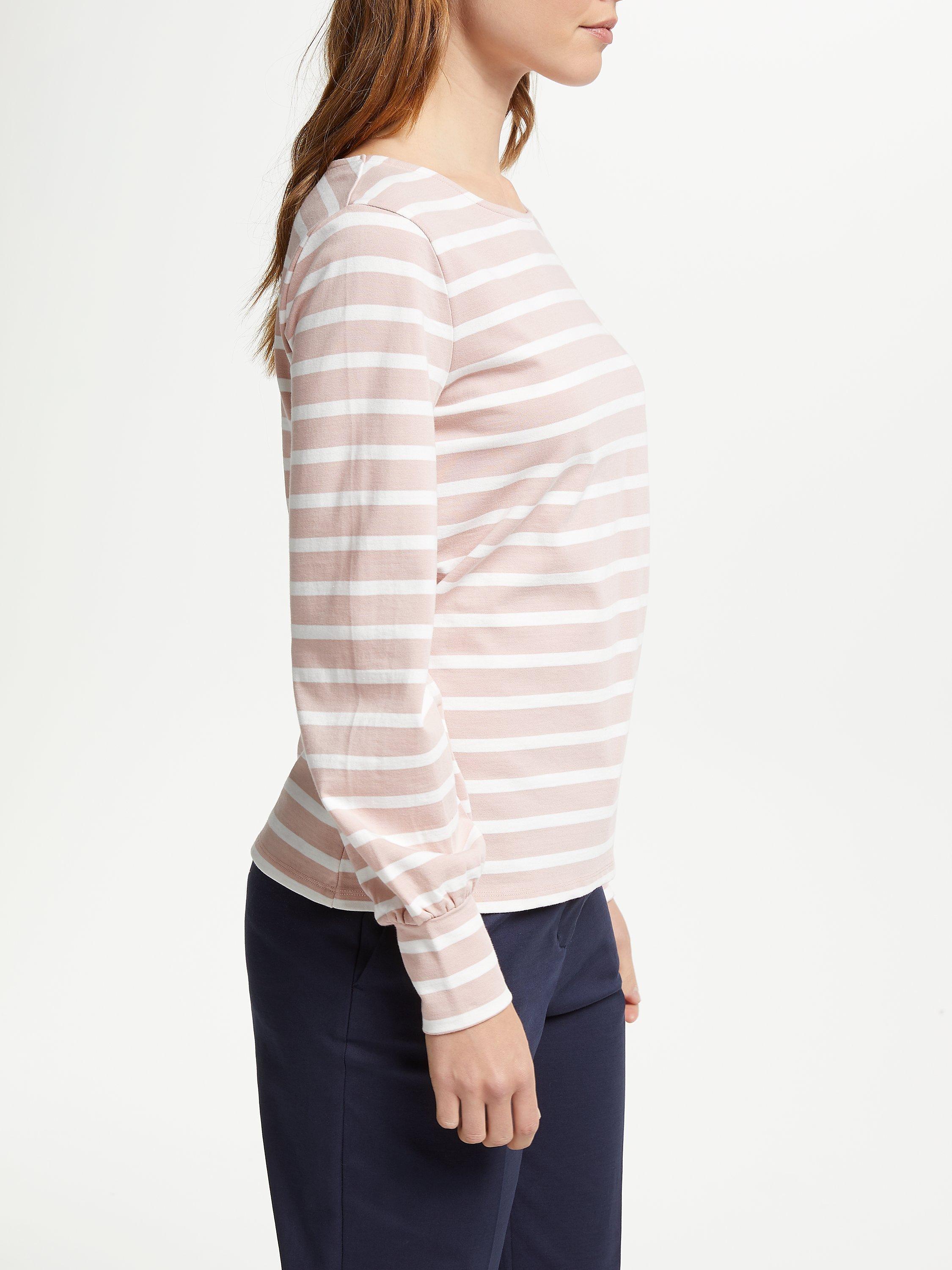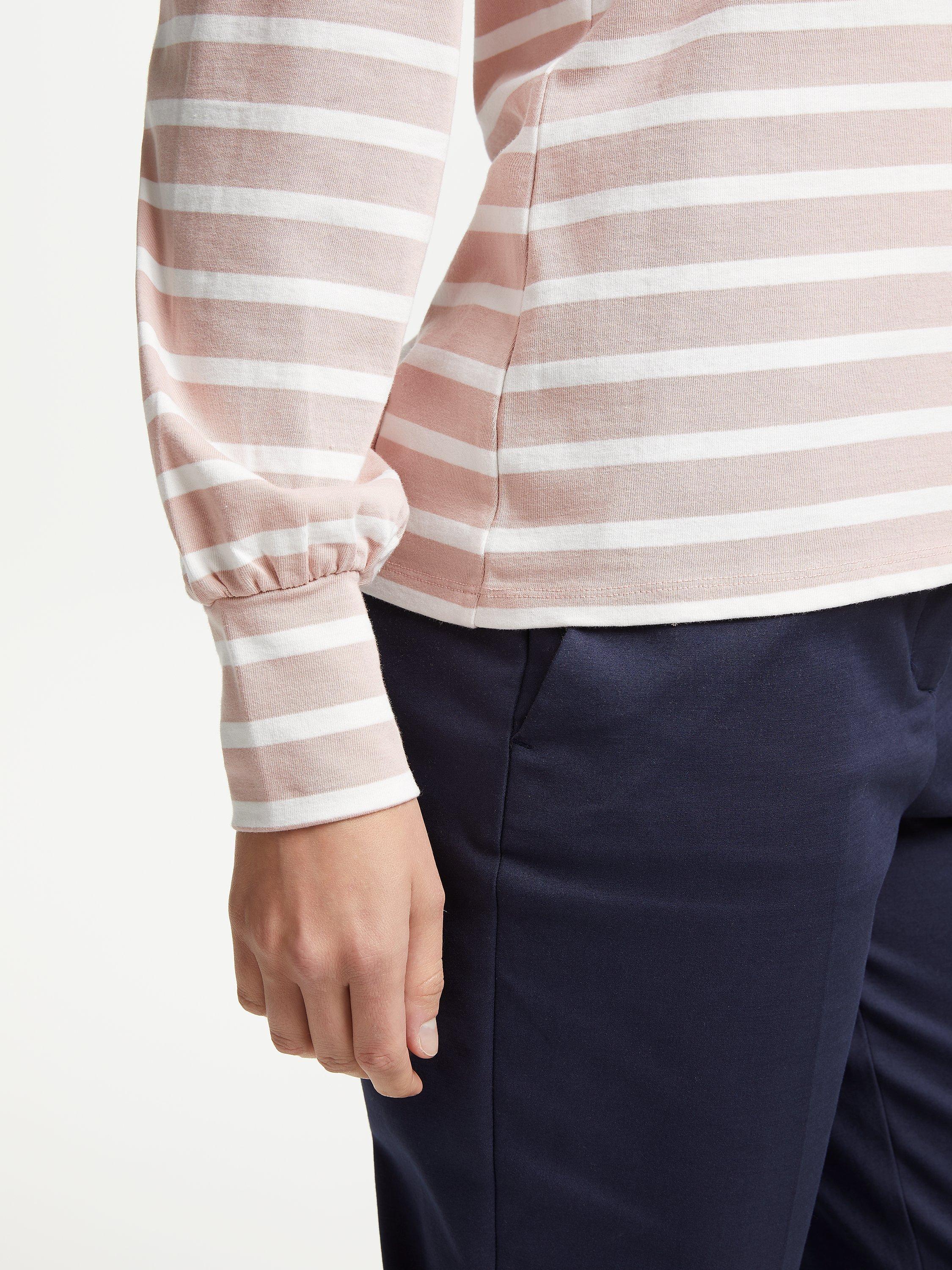 Crafted from pure cotton, the top has a light and breathable feel perfect for all year round. It features a charming twist with pretty bell sleeves, a boat neckline with a contrast stripe design.