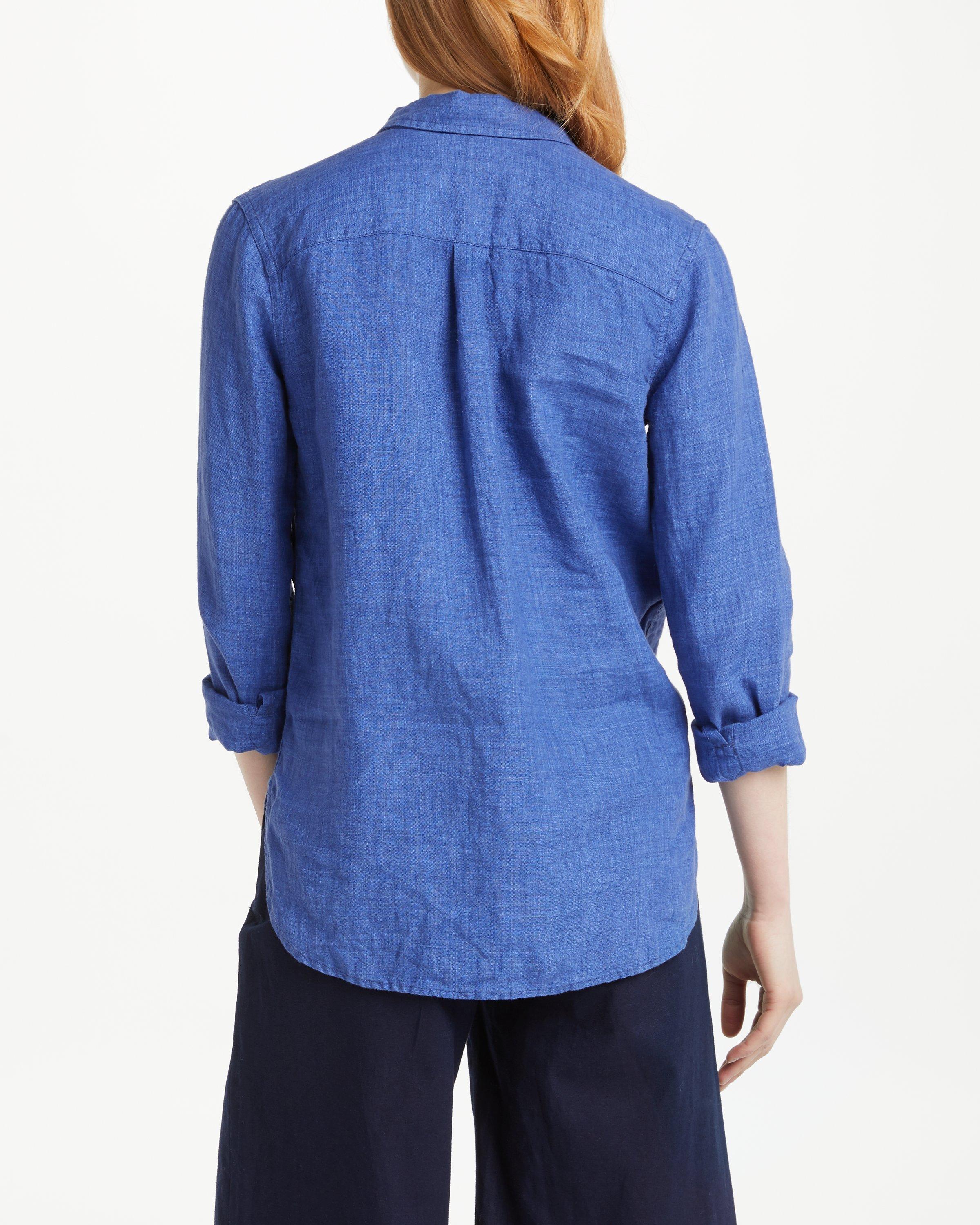 A relaxed wardrobe staple, this shirt is crafted from pure lightweight linen, features double patch pockets and a dipped back hem.
